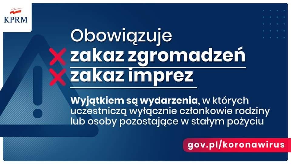 Nowe przepisy zakazują także wszelkich zgromadzeń, spotkań, imprez czy zebrań. Będziesz mógł się jednak spotykać z najbliższymi.