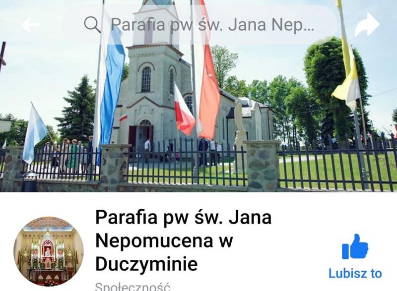 Drodzy Mieszkańcy! Zapraszamy na transmisje video z Parafii Świętego Jana Nepomucena w Duczyminie.