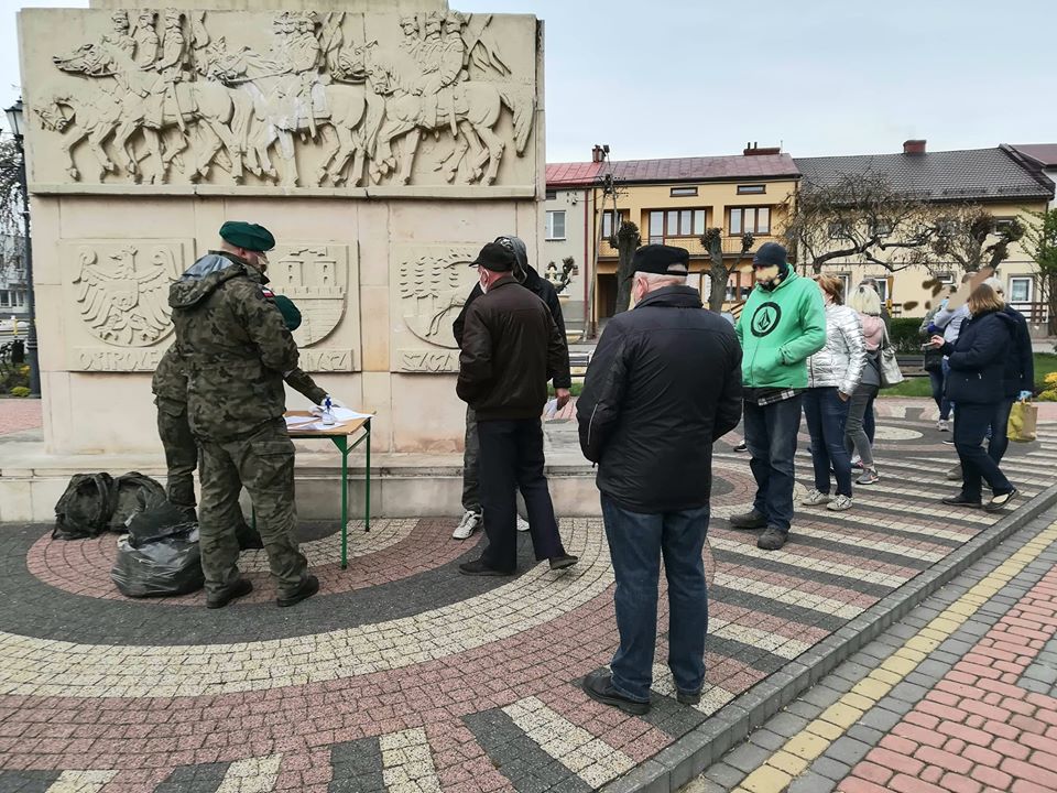 Wczoraj, od godziny 13 do 18 - żołnierze przasnyskiej jednostki wojskowej, rozdawali w 7 punktach na terenie Miasta, zakupione przez Urząd Miejski w Chorzelach bezpłatne, atestowane maseczki ochronne wielorazowego użytku dla gospodarstw domowych i mieszkańców Miasta.