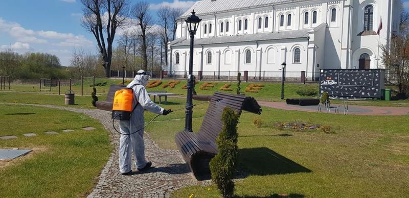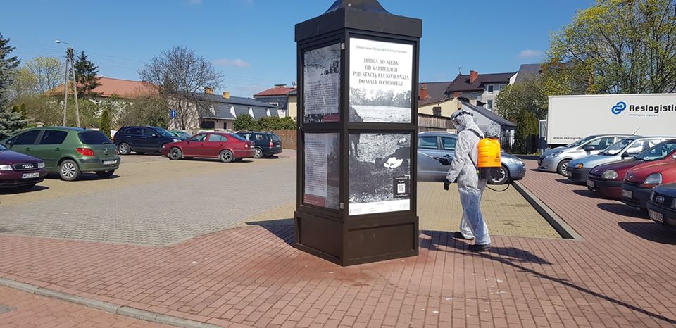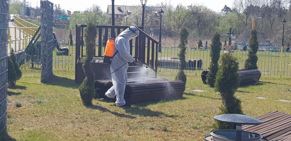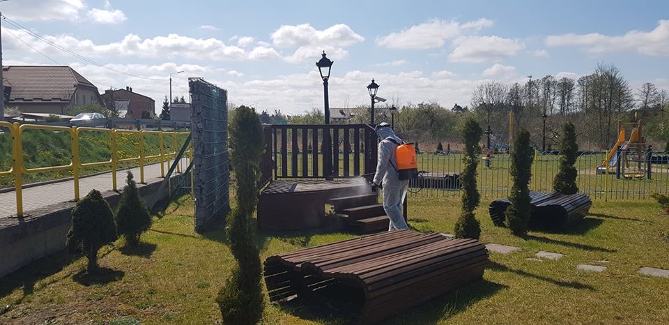 Na zlecenie burmistrz Beaty Szczepankowskiej, w trosce o zdrowie i życie mieszkańców, ZGKiM w Chorzelach rozpoczął dezynfekcję wszystkich ławek w parkach, na skwerach oraz urządzeń na placach zabaw i w miejscach publicznych, jak też przystanków autobusowych na terenie Miasta i Gminy Chorzele.