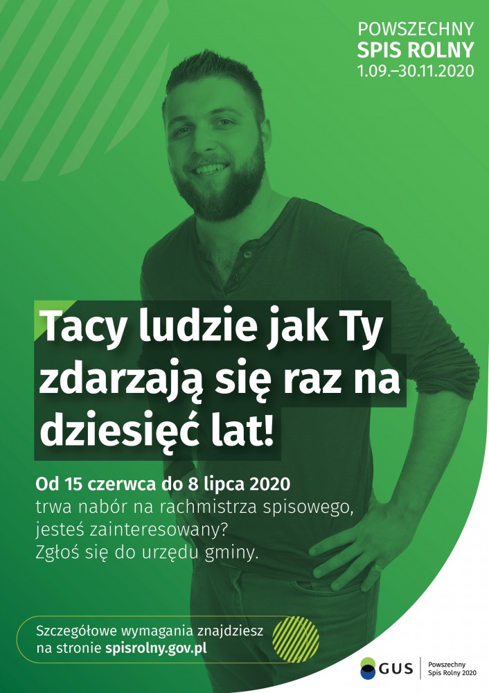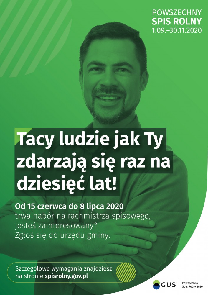 Burmistrz Miasta i Gminy Chorzele jako Gminny Komisarz Spisowy ogłasza na podstawie art. 19.1 pkt 4 ustawy z dnia 31 lipca 2019r. o powszechnym spisie rolnym w 2020 r. nabór kandydatów na rachmistrzów spisowych, którzy będą wykonywać zadania spisowe na terenie Gminy Chorzele.