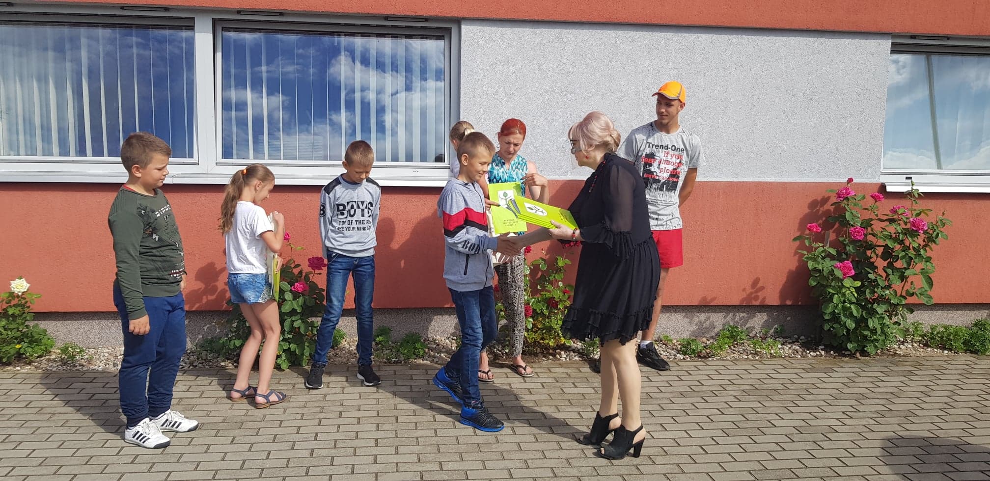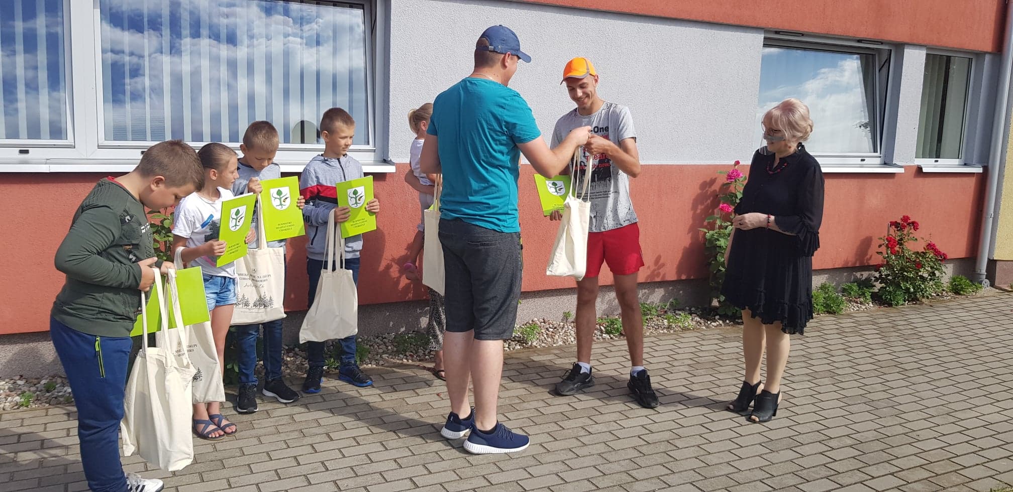 Młodzi ludzie wraz z Panem sołtysem otrzymali specjalne podziękowania od burmistrz Miasta i Gminy Chorzele Beaty Szczepankowskiej oraz upominki, w tym ekologiczne gadżety.