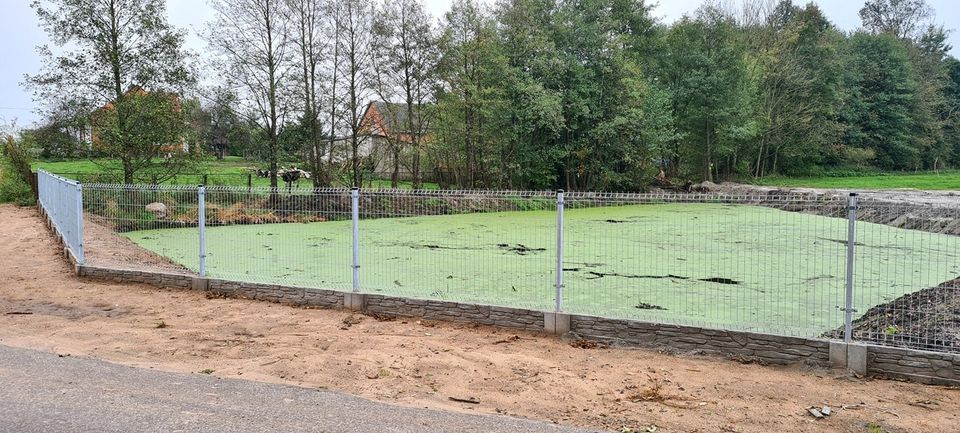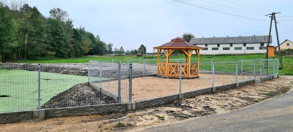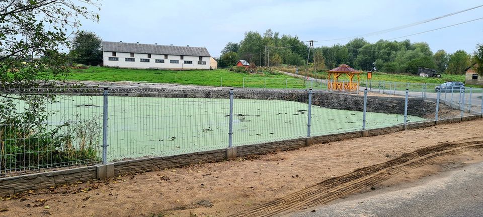 Zakres prac: pogłębianie i odmulanie stawu, wycinka zakrzaczeń, altana oraz ogrodzenie i mini parking.