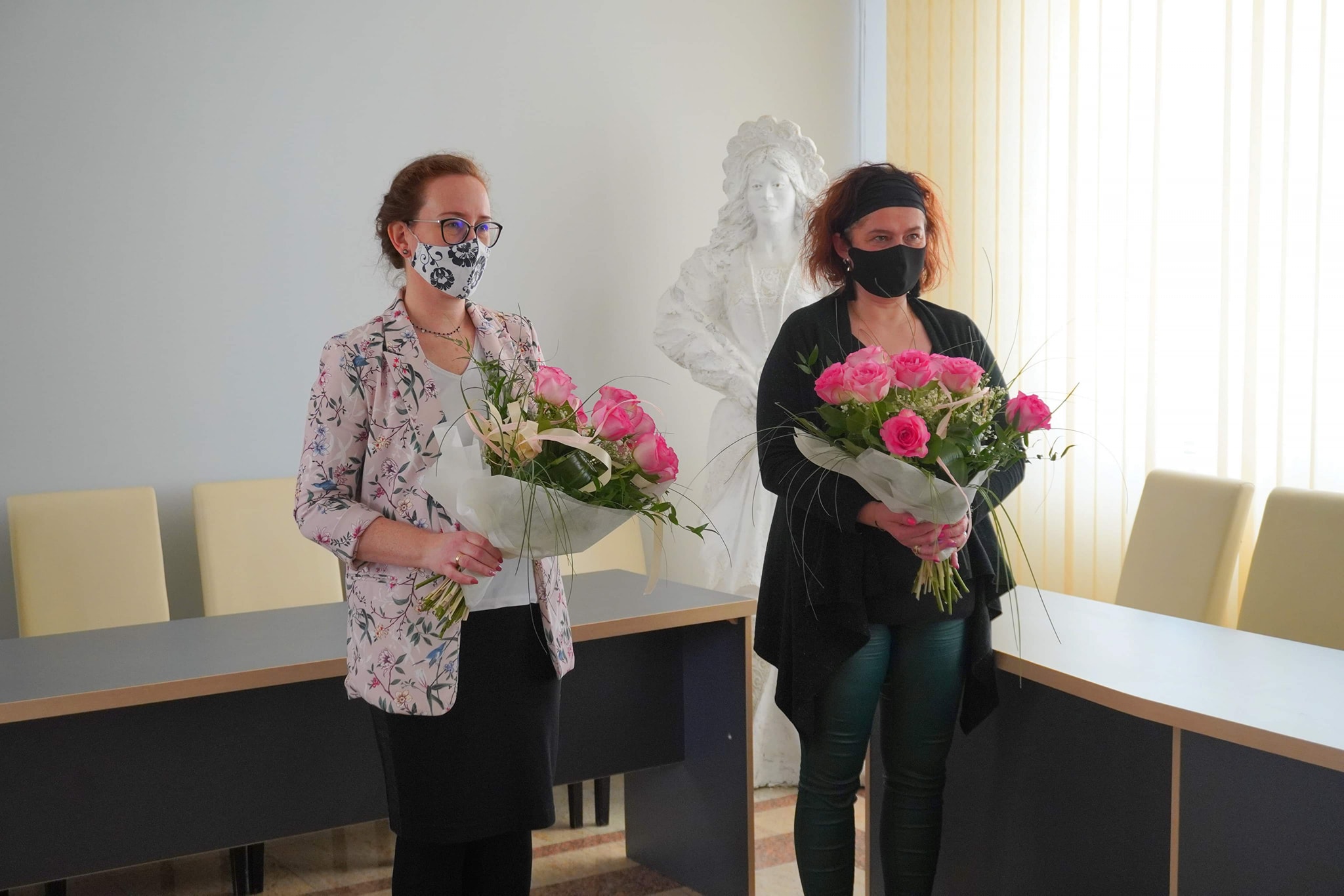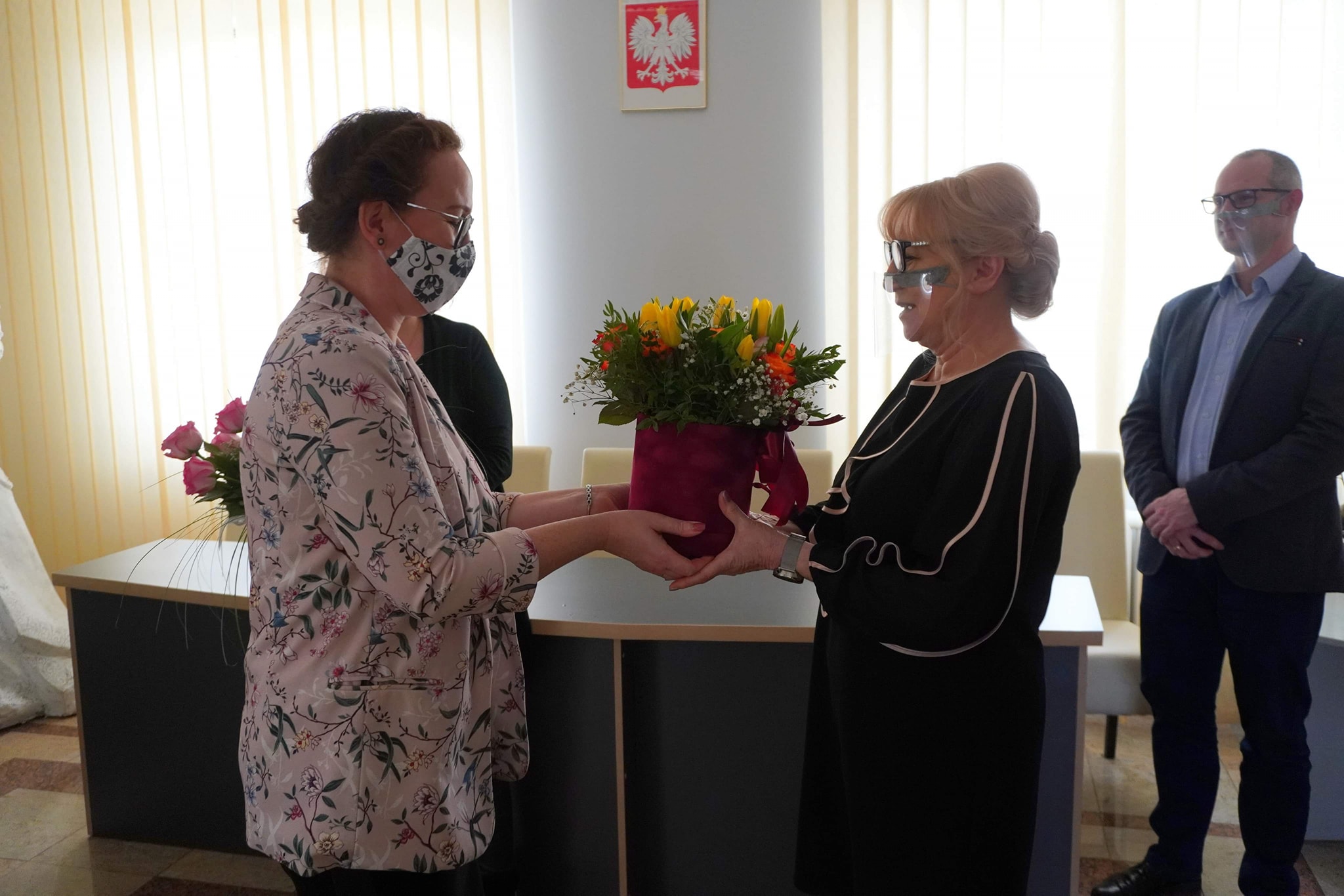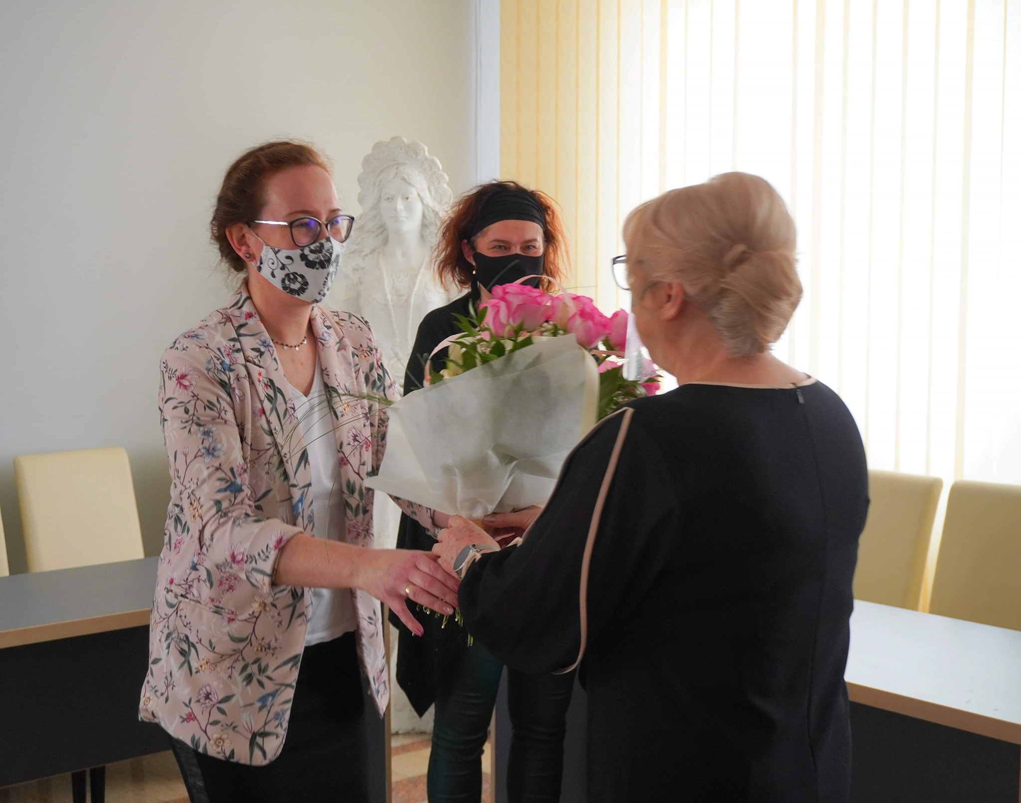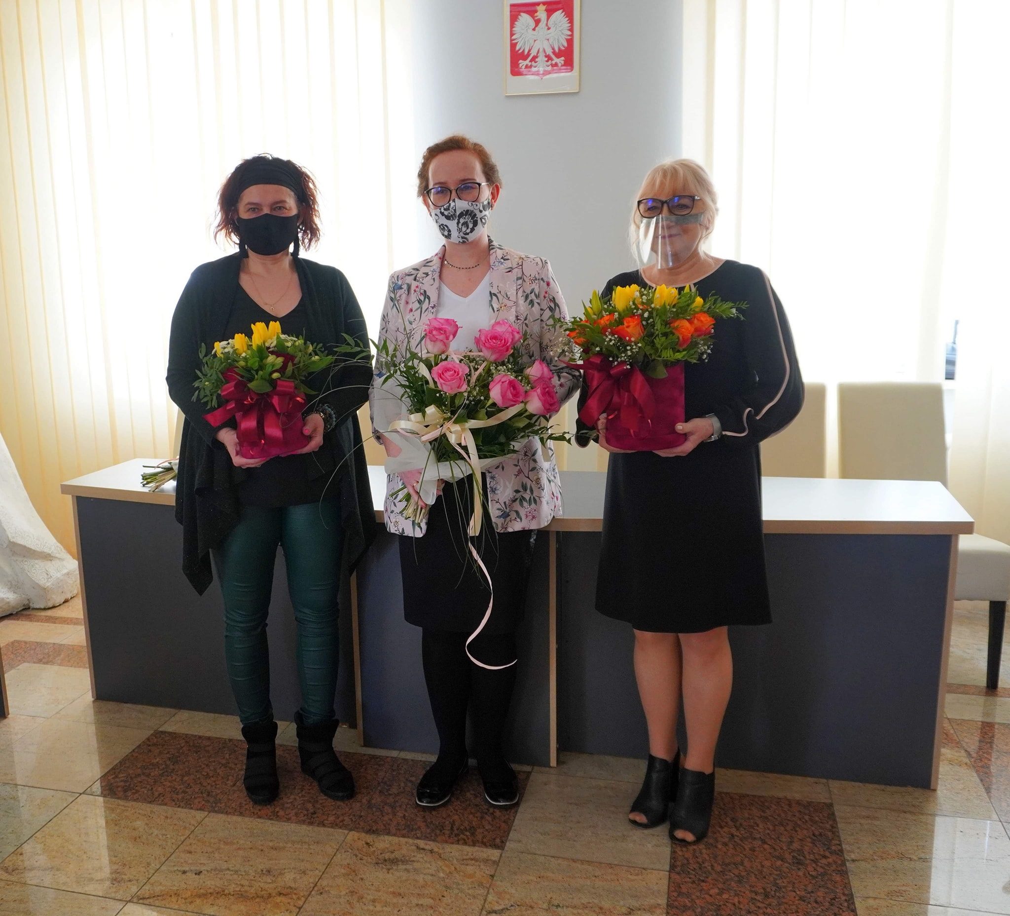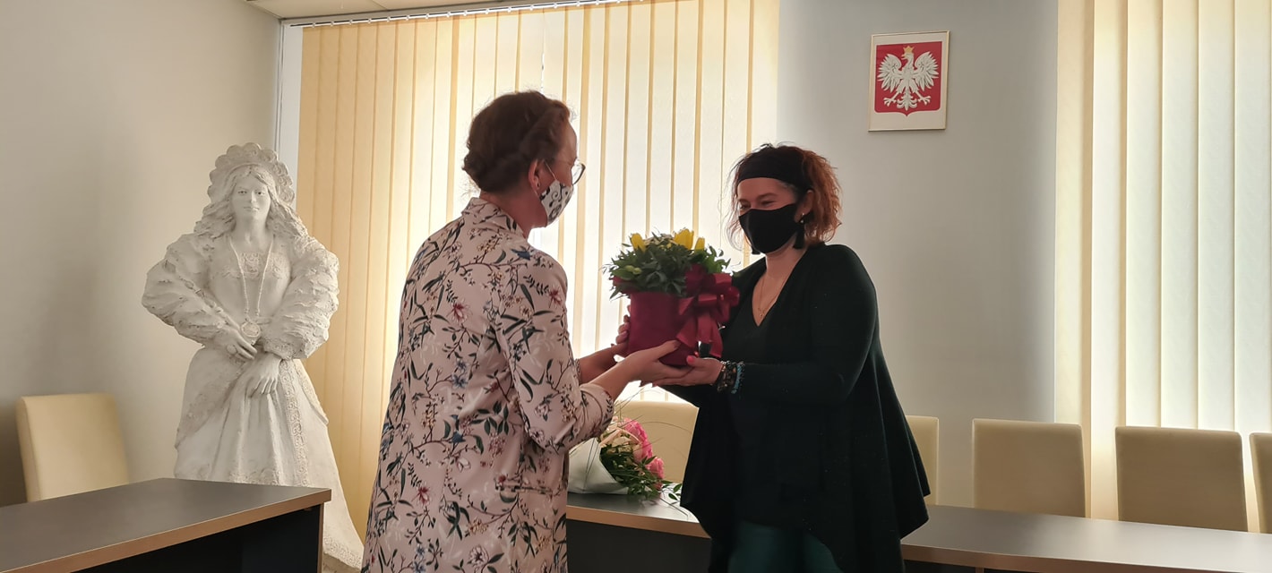 Burmistrz Beata Szczepankowska kwiatami i bardzo ciepłymi słowami serdecznie podziękowała obu Paniom za dotychczasową, bardzo dobrą współpracę i zapewniła o jej kontynuacji. Serdeczne słowa podziękowania i kwiaty trafiły również na ręce burmistrz Miasta i Gminy.