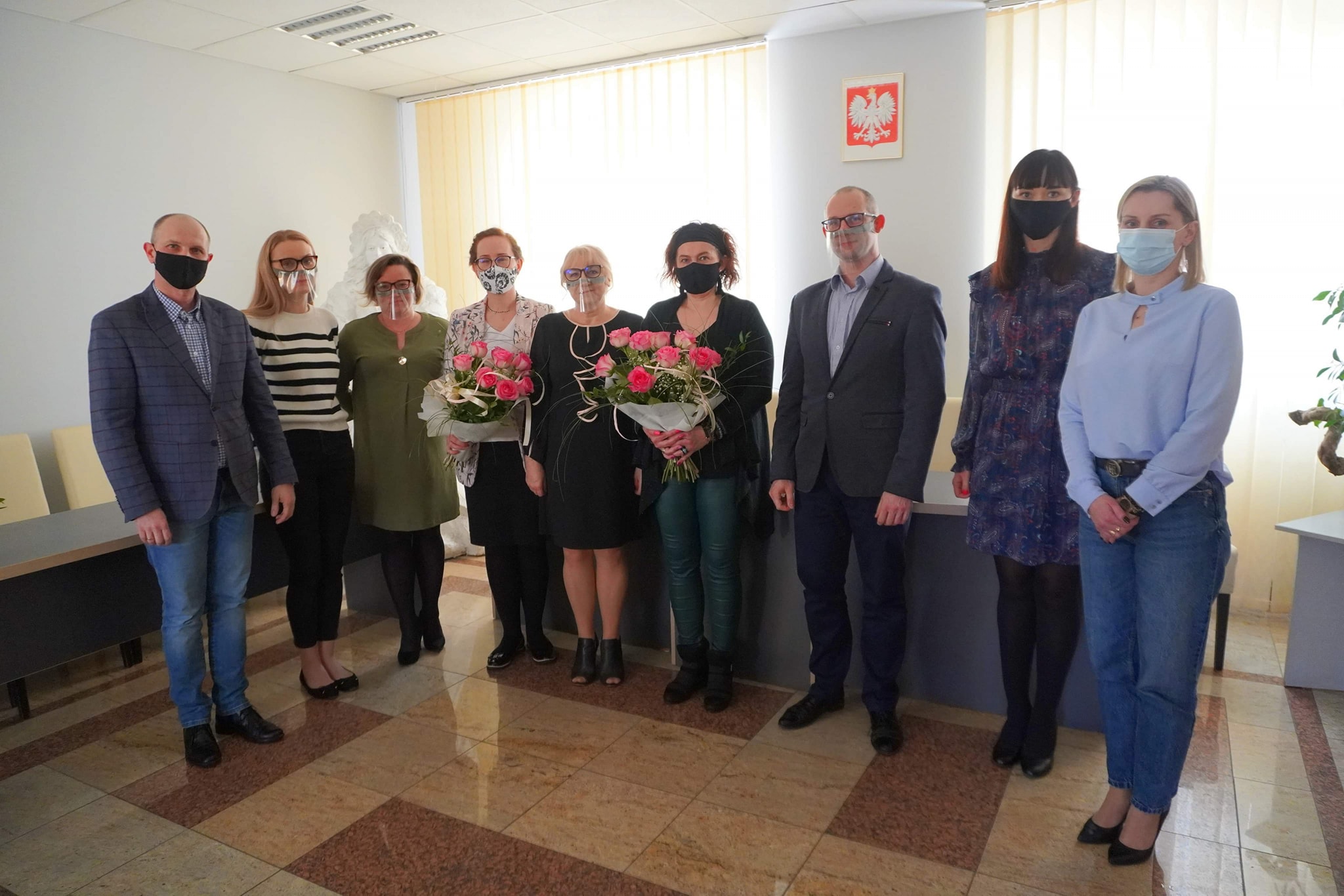 Na powyższym zdjęciu znajduje się burmistrz Beata Szczepankowska wraz z dyrektorami i kierownikami Urzędu Miasta i Gminy w Chorzelach.