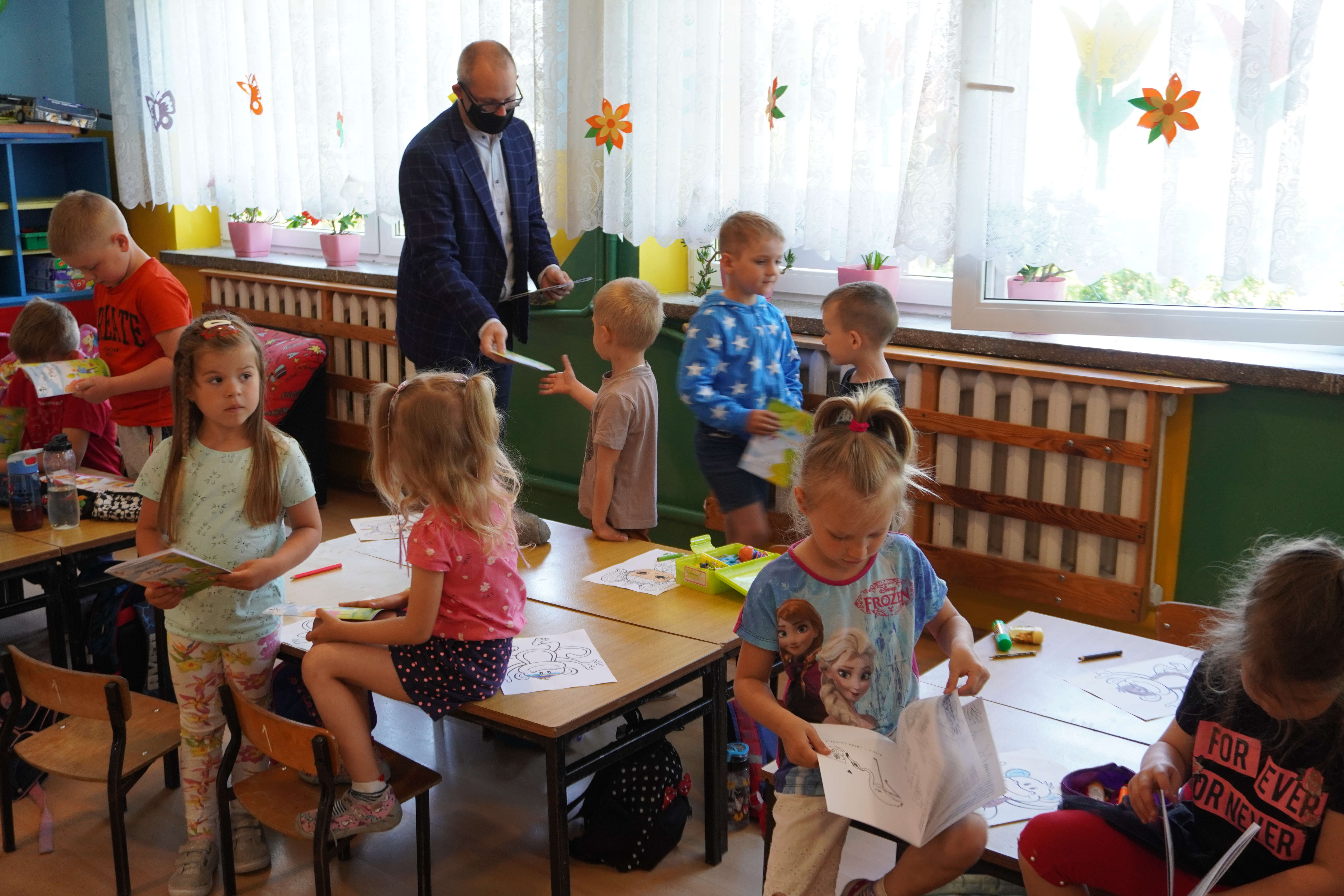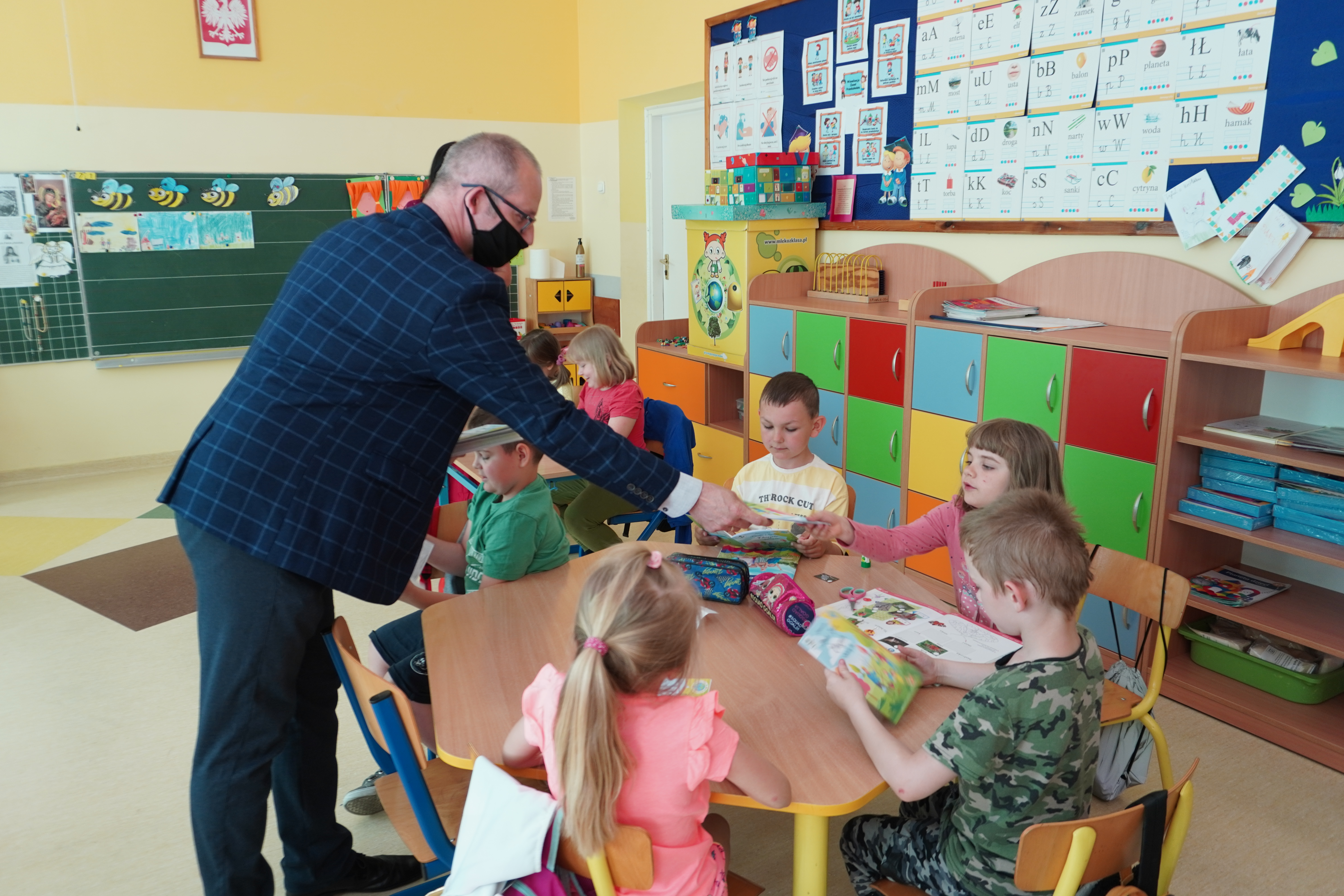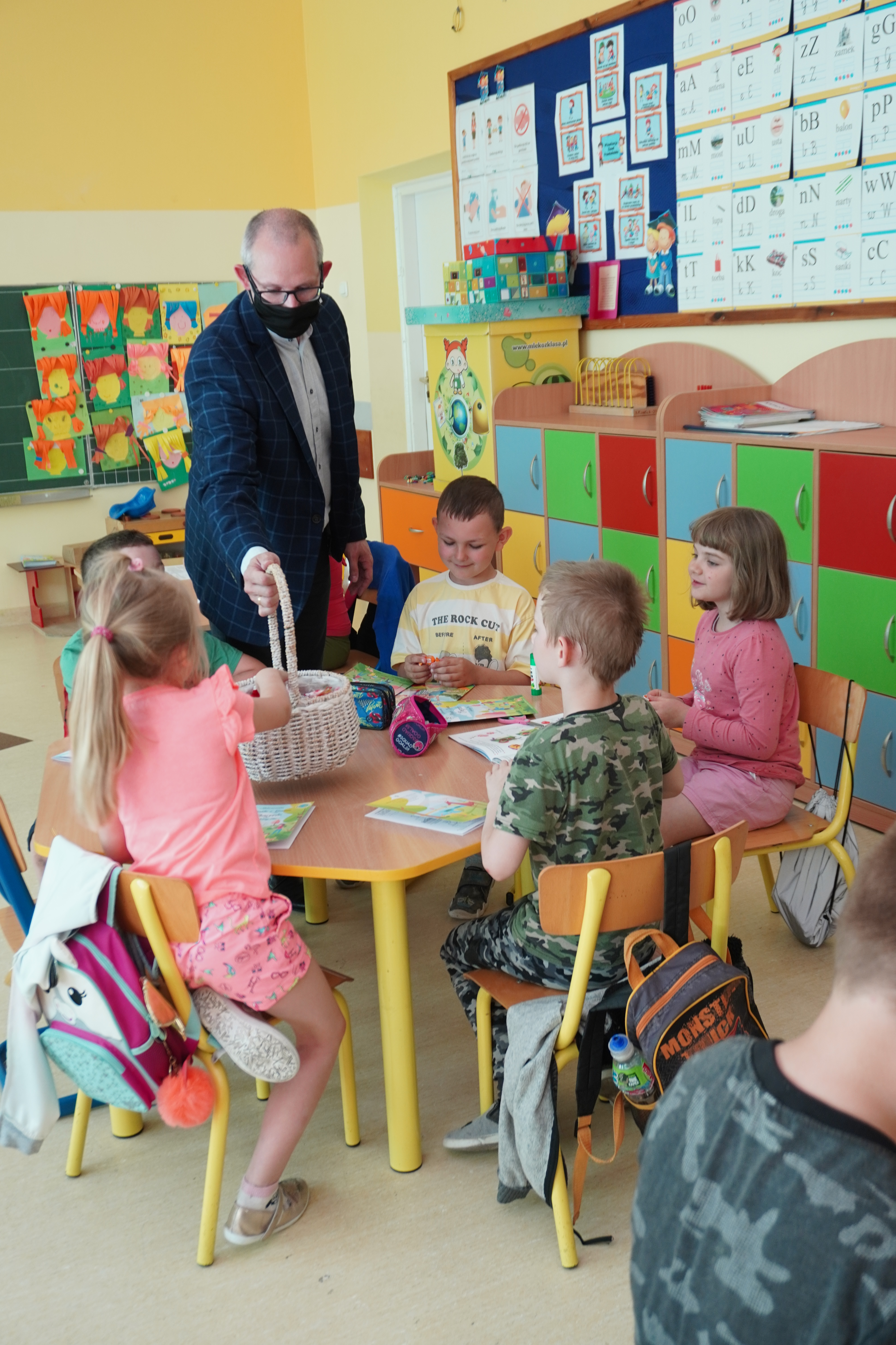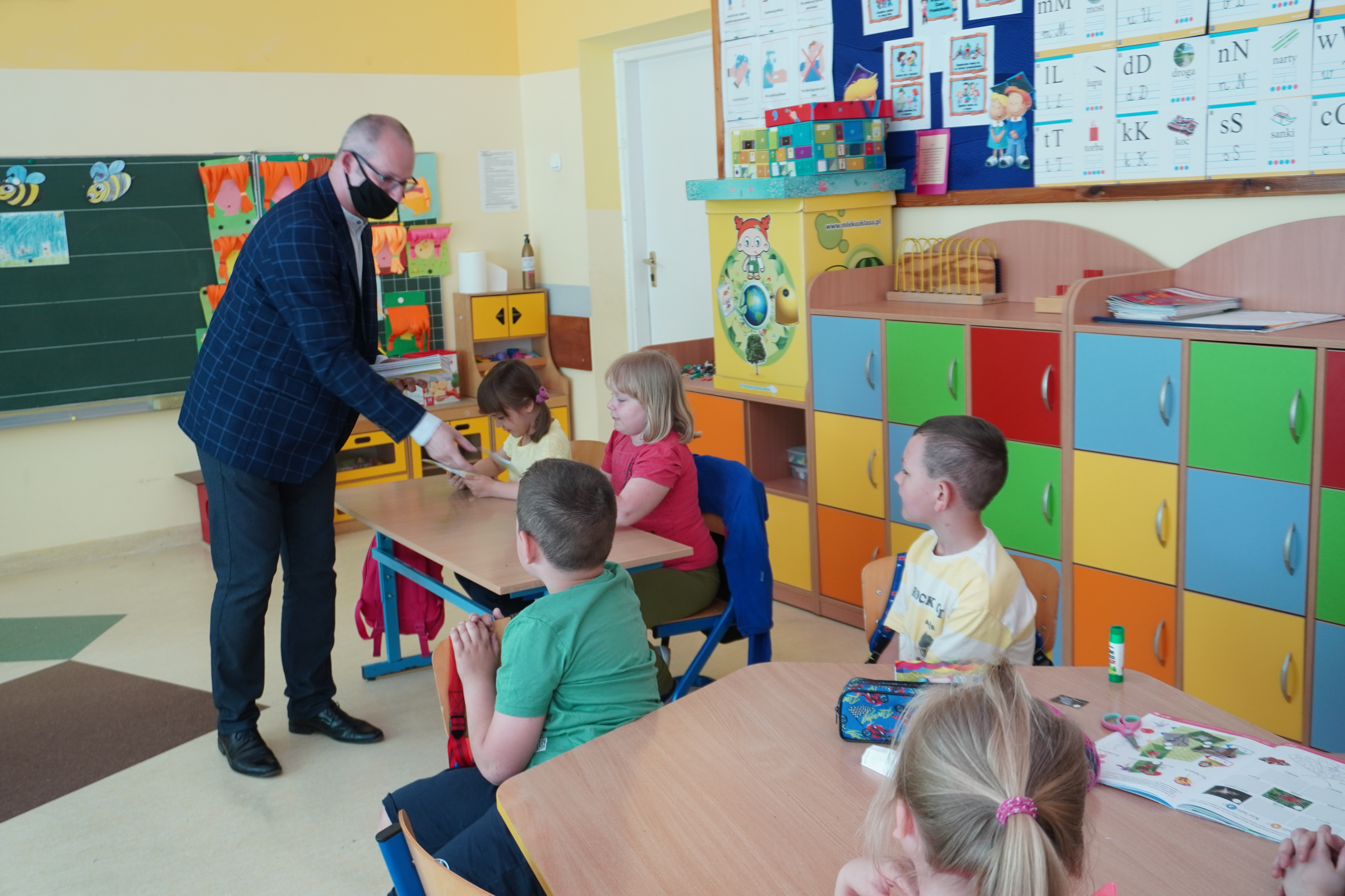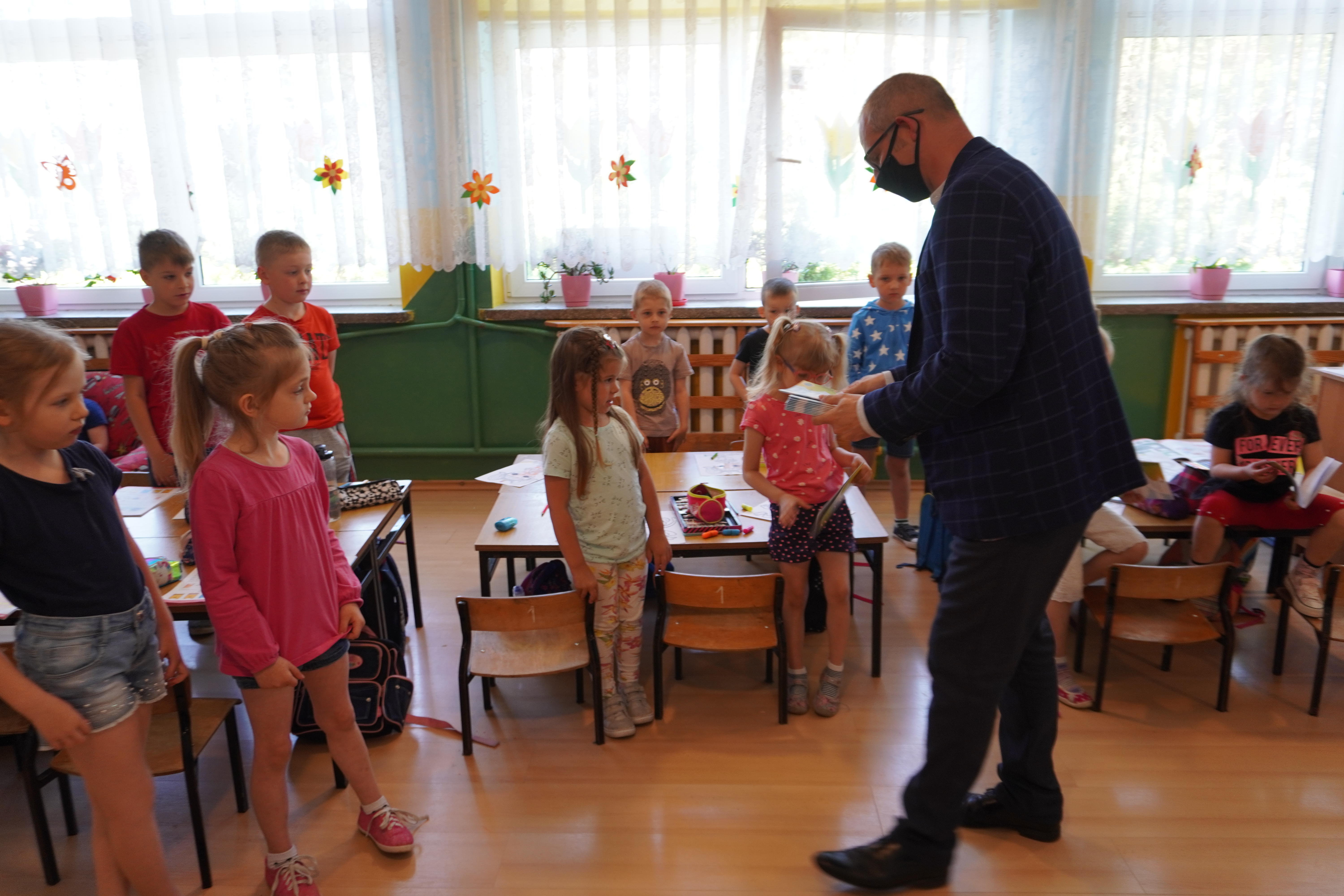 Z okazji Dnia Dziecka sekretarz Rafał Gotowiec w imieniu burmistrz Beaty Szczepankowskiej udał się do naszych najmłodszych z przyszkolnych Oddziałów Przedszkolnych w Pościeniu Wsi i Zarębach.