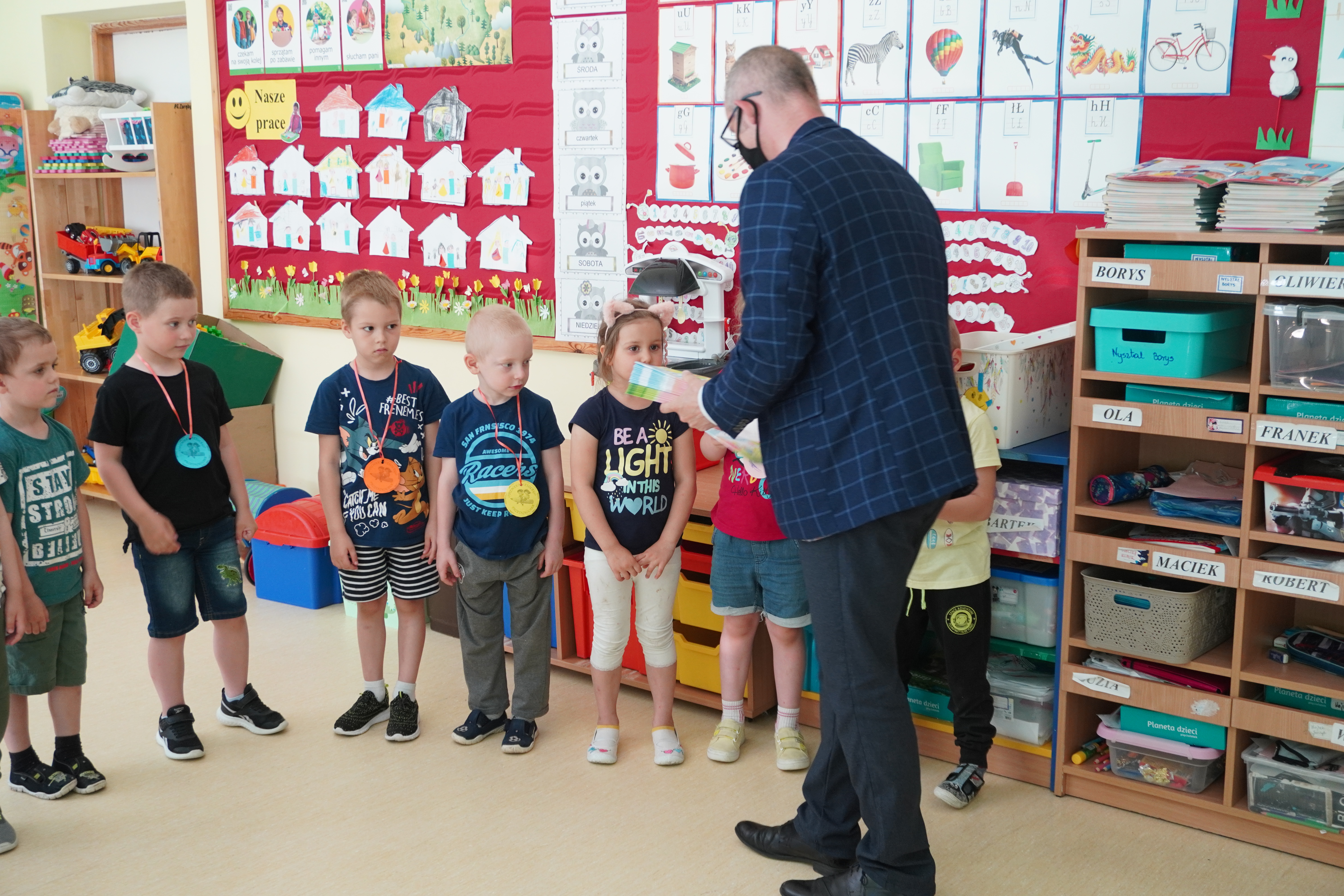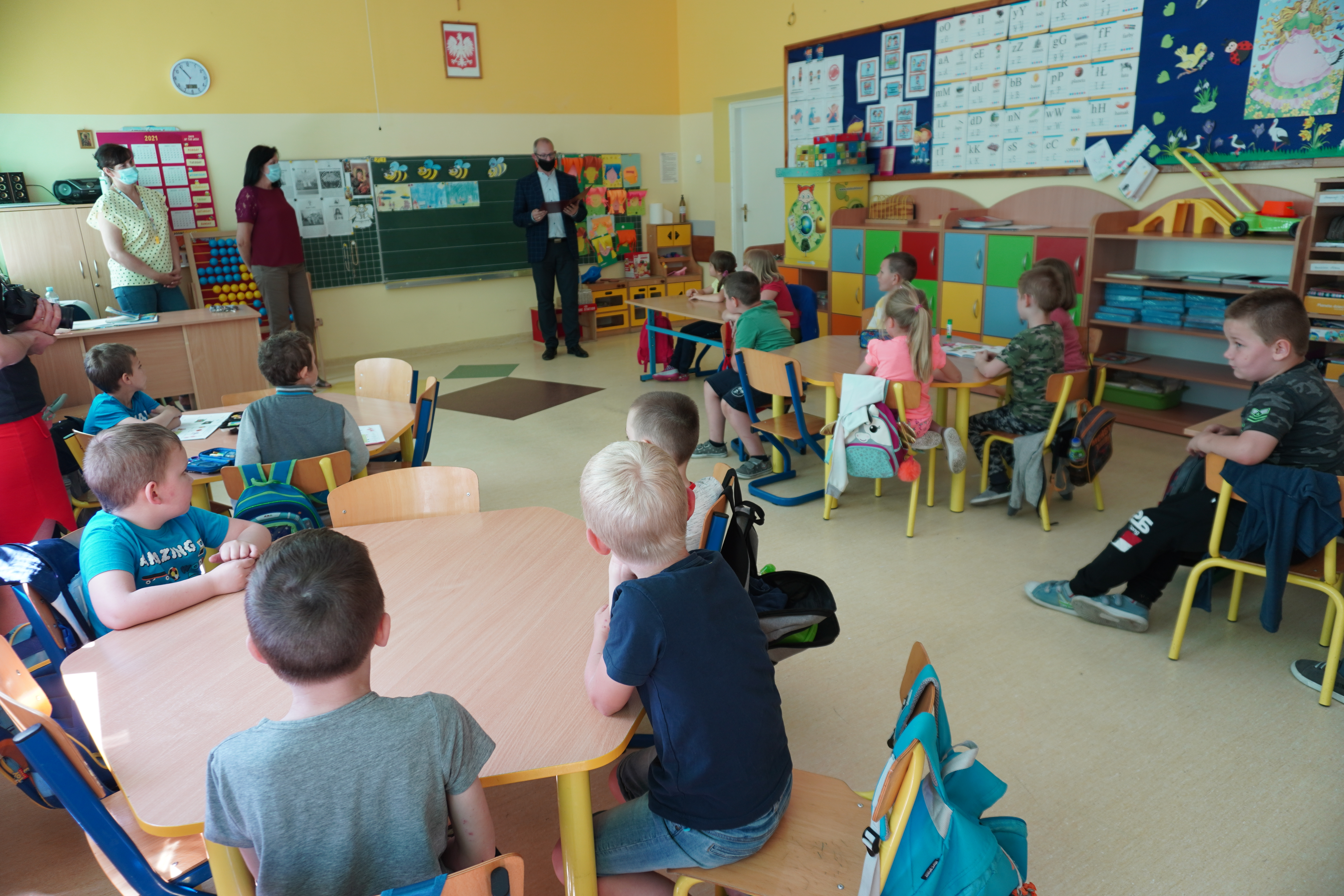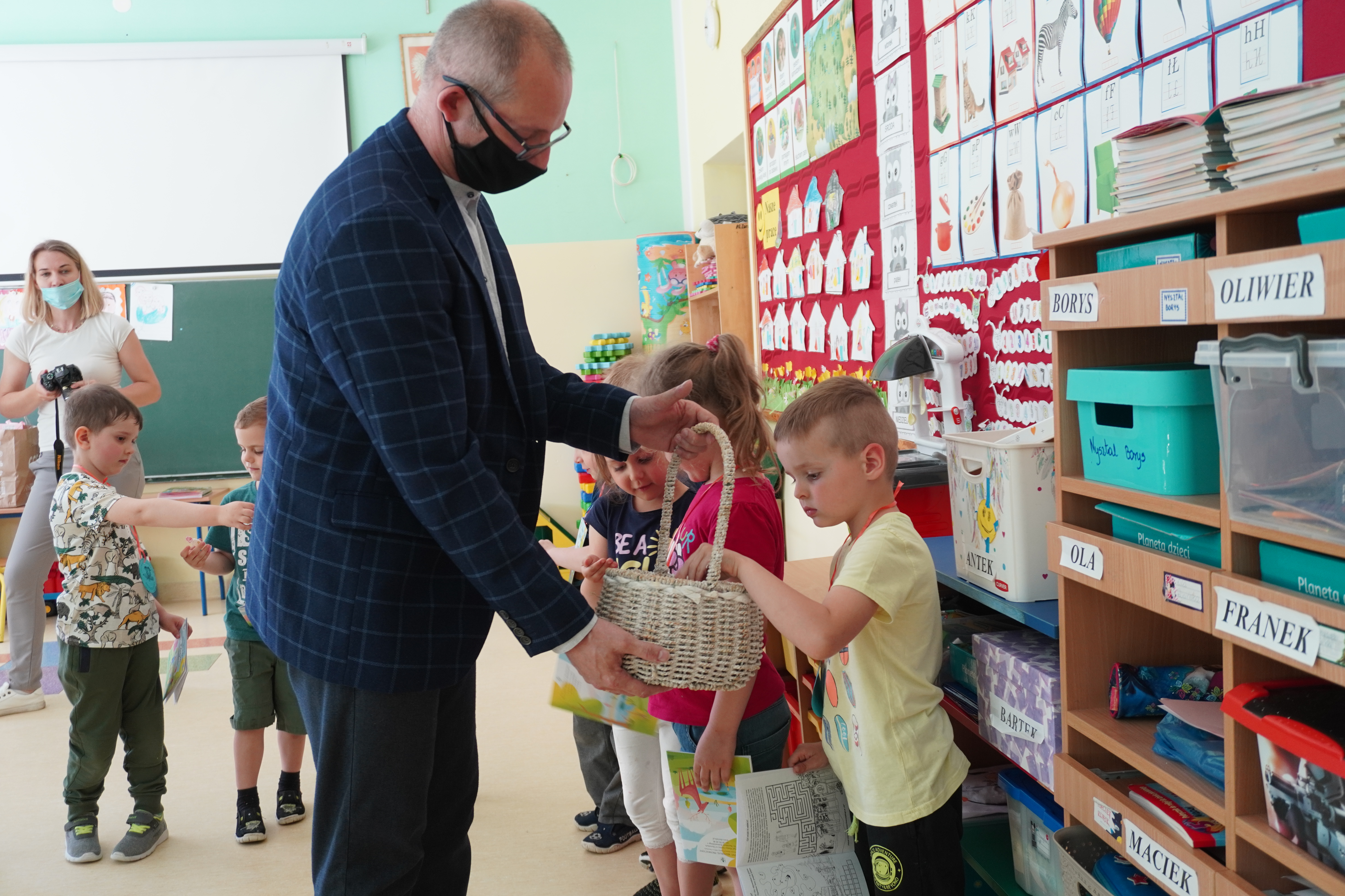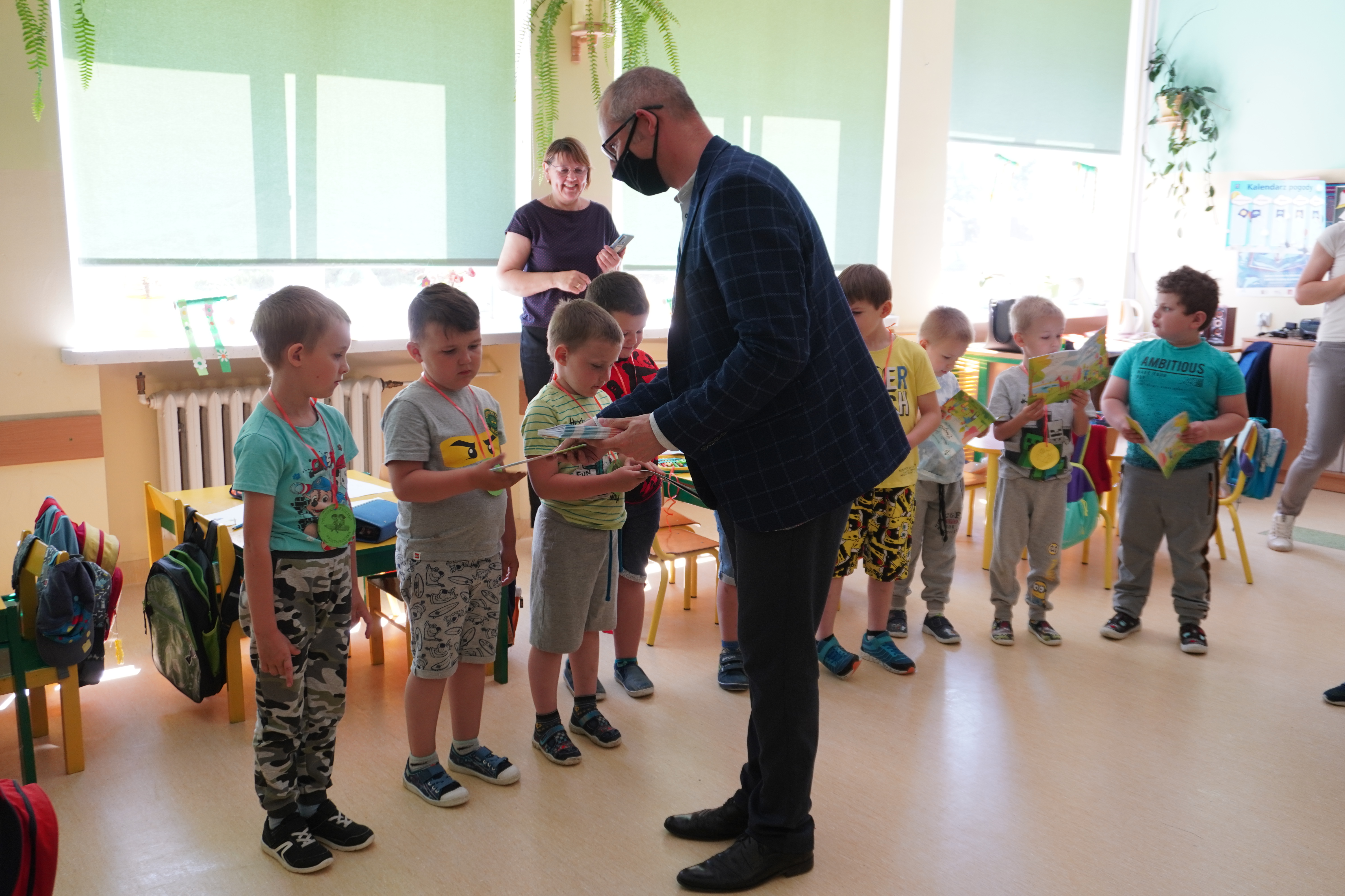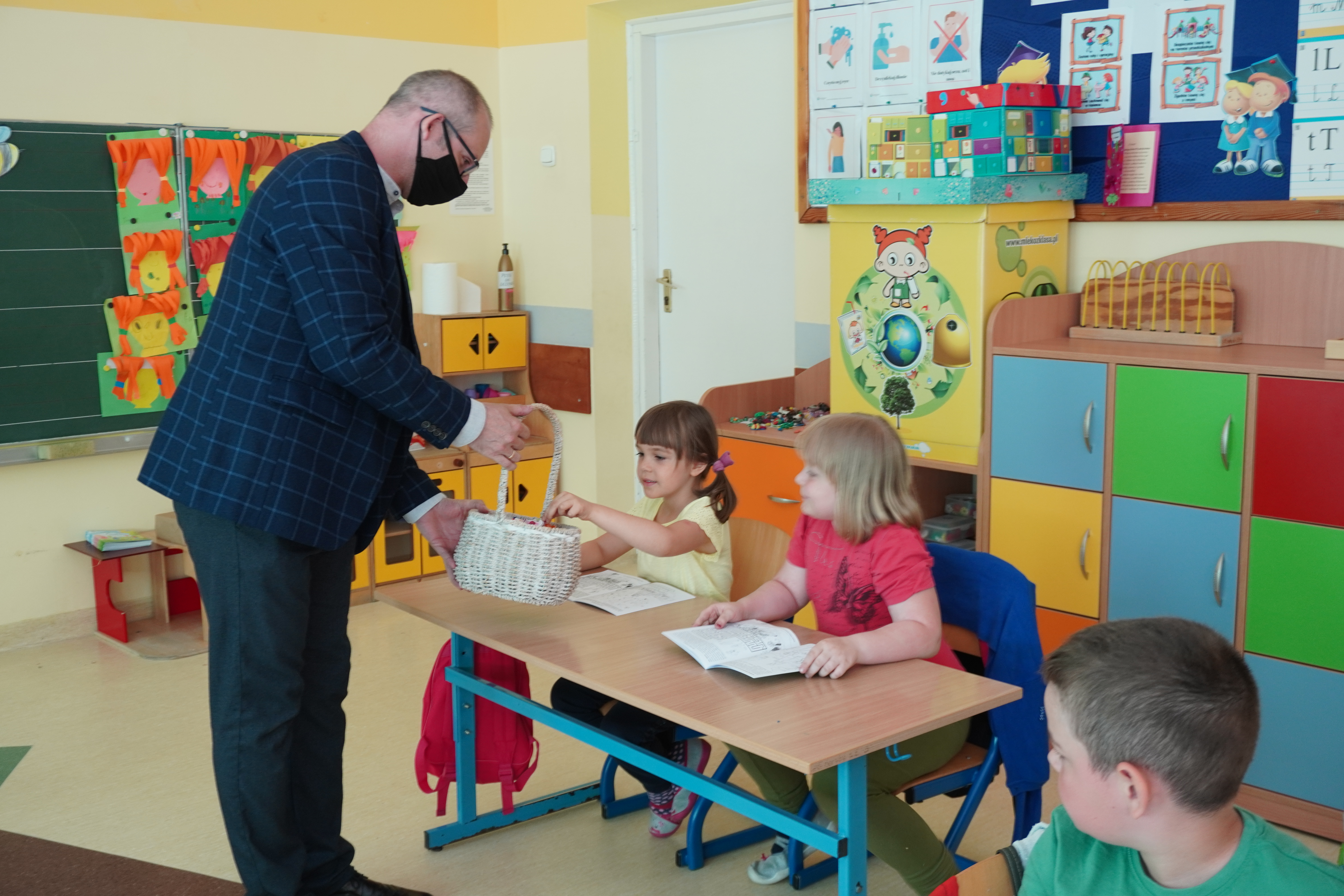 Z okazji Dnia Dziecka sekretarz Rafał Gotowiec w imieniu burmistrz Beaty Szczepankowskiej udał się do naszych najmłodszych z przyszkolnych Oddziałów Przedszkolnych w Pościeniu Wsi i Zarębach.