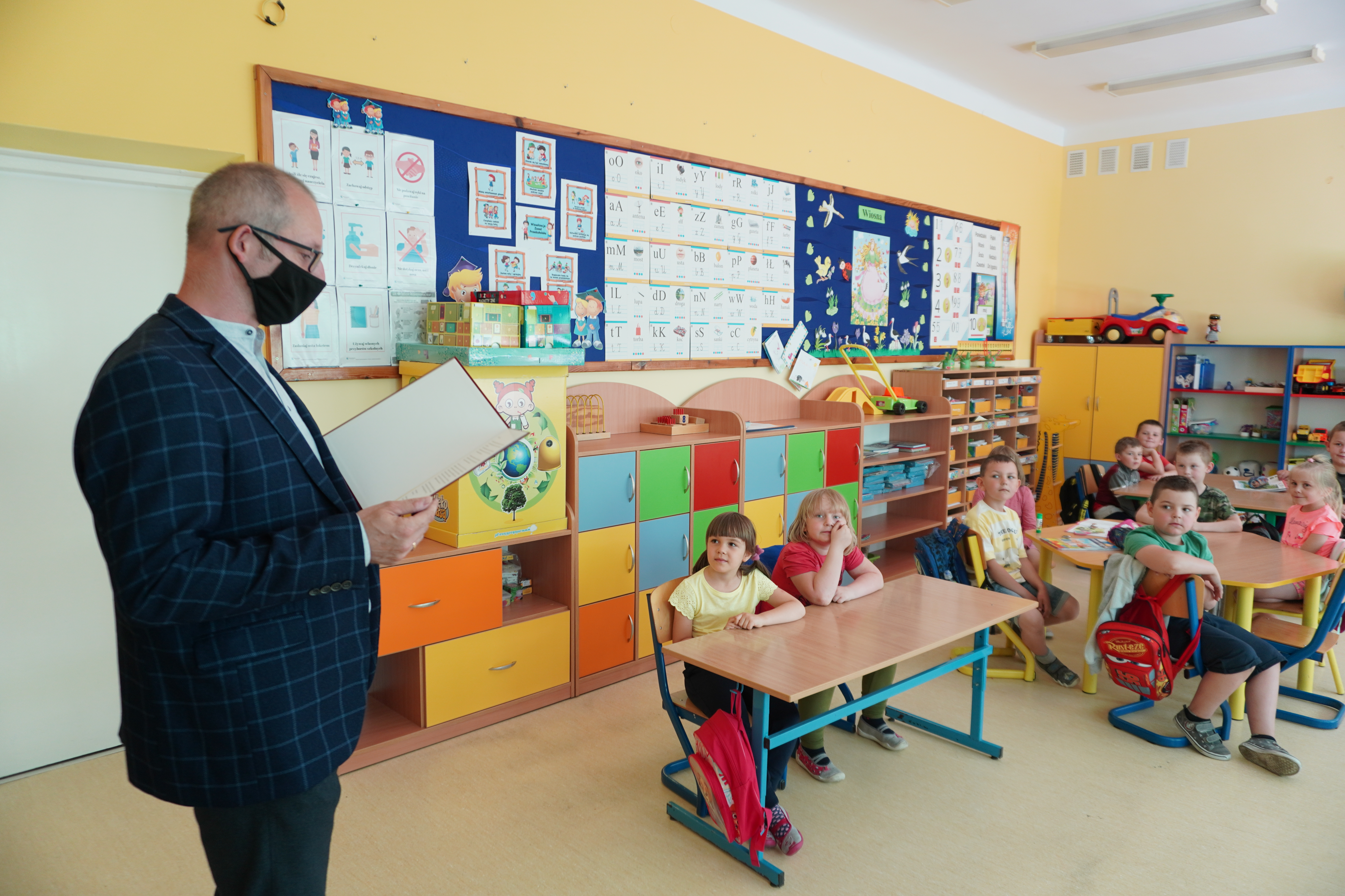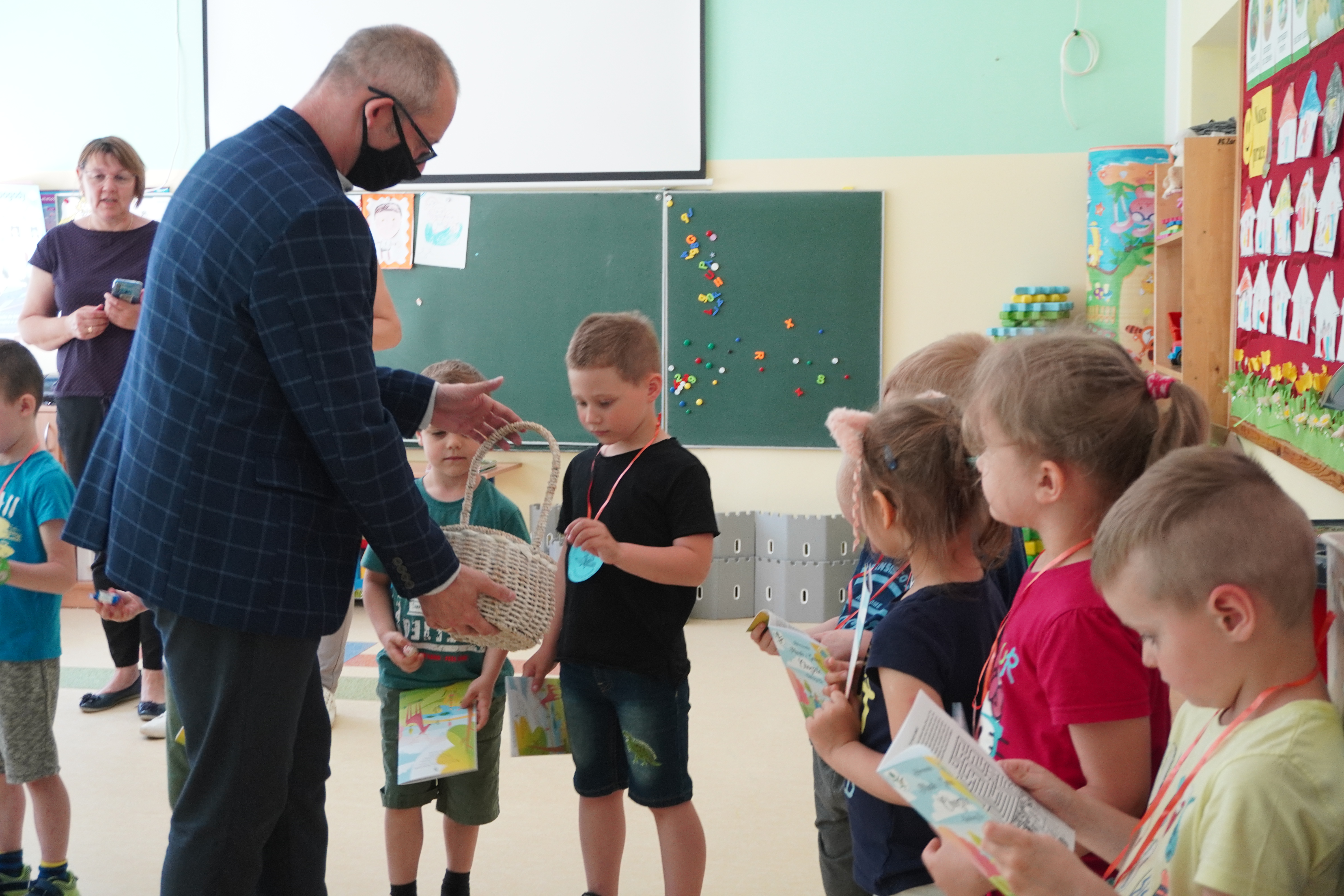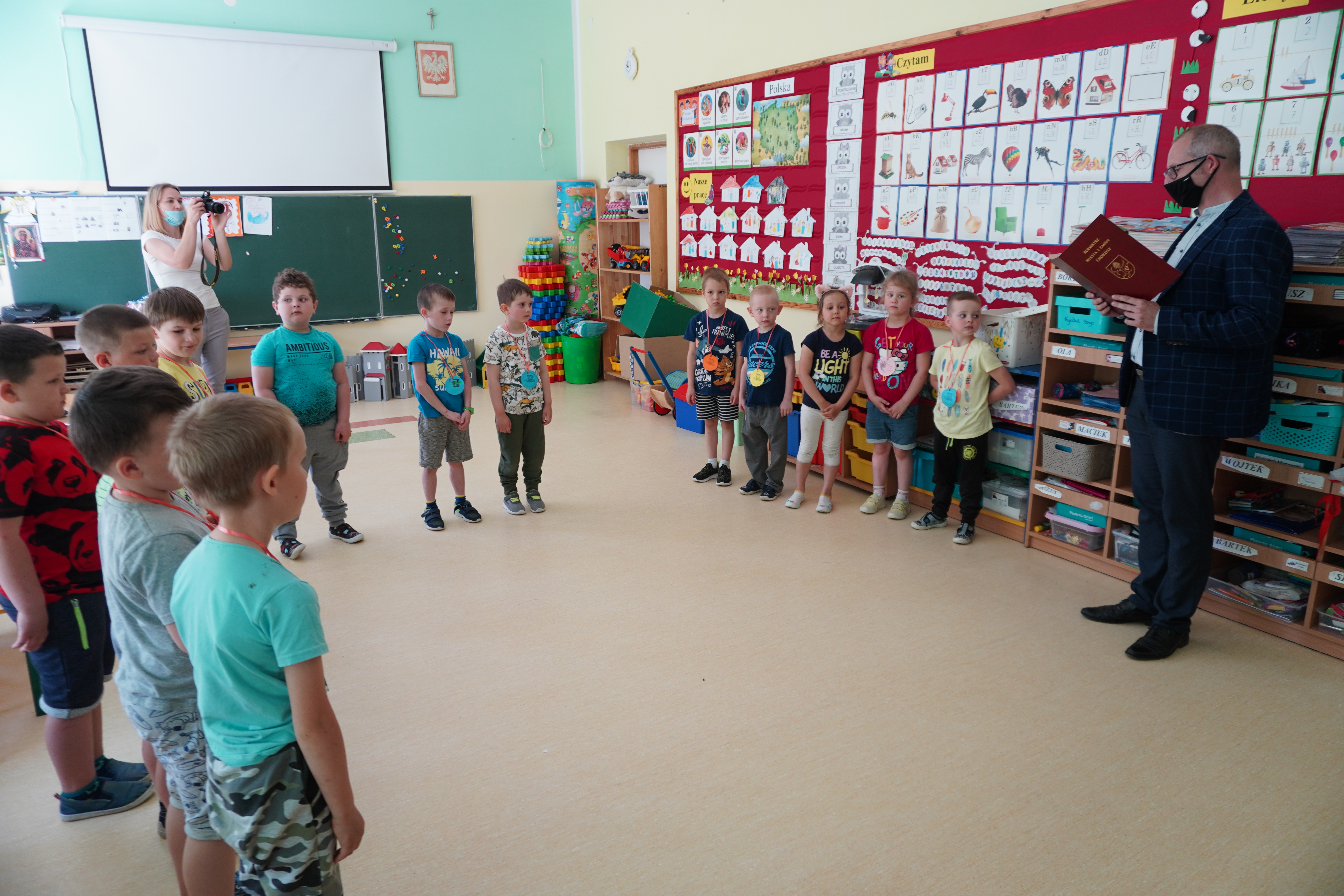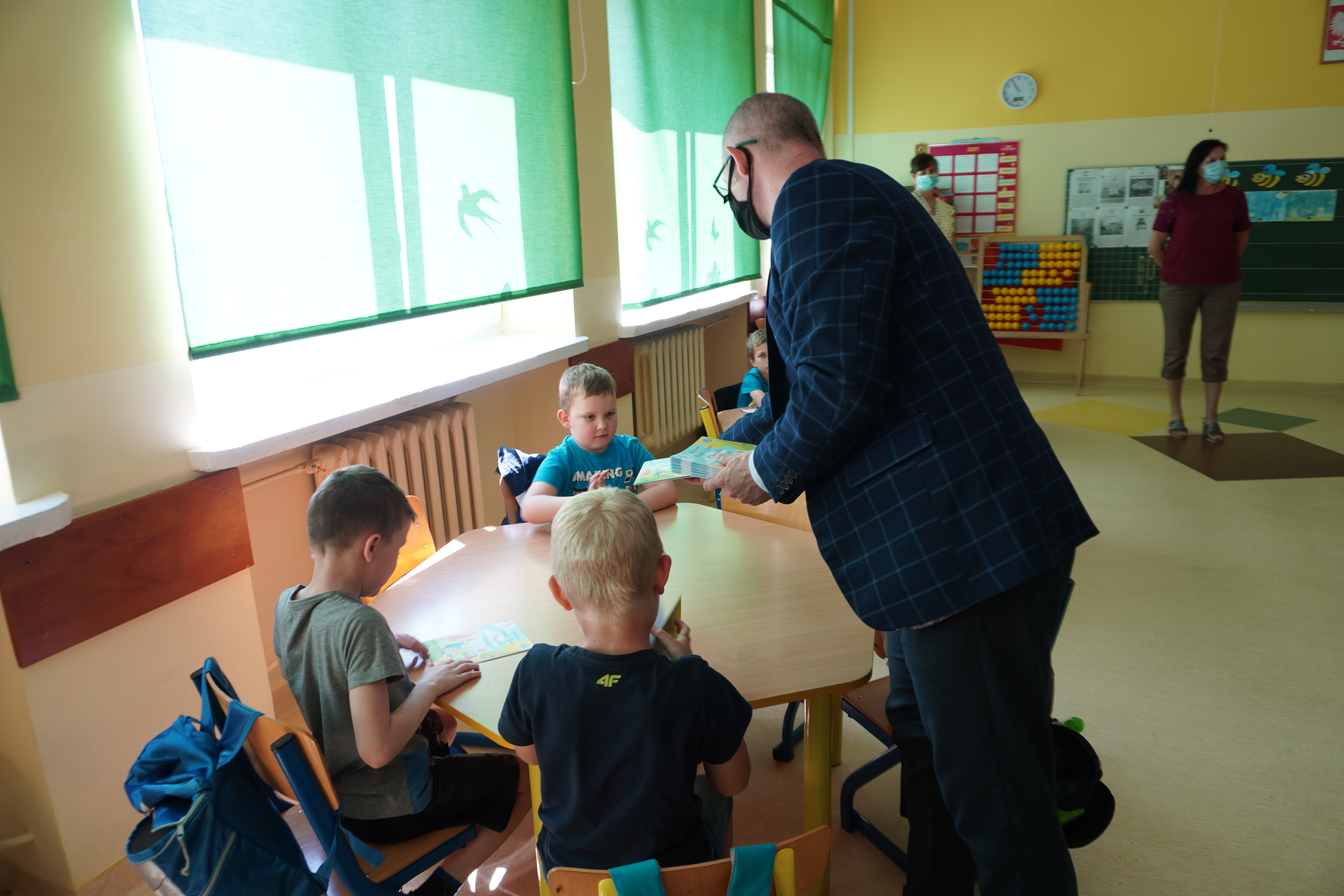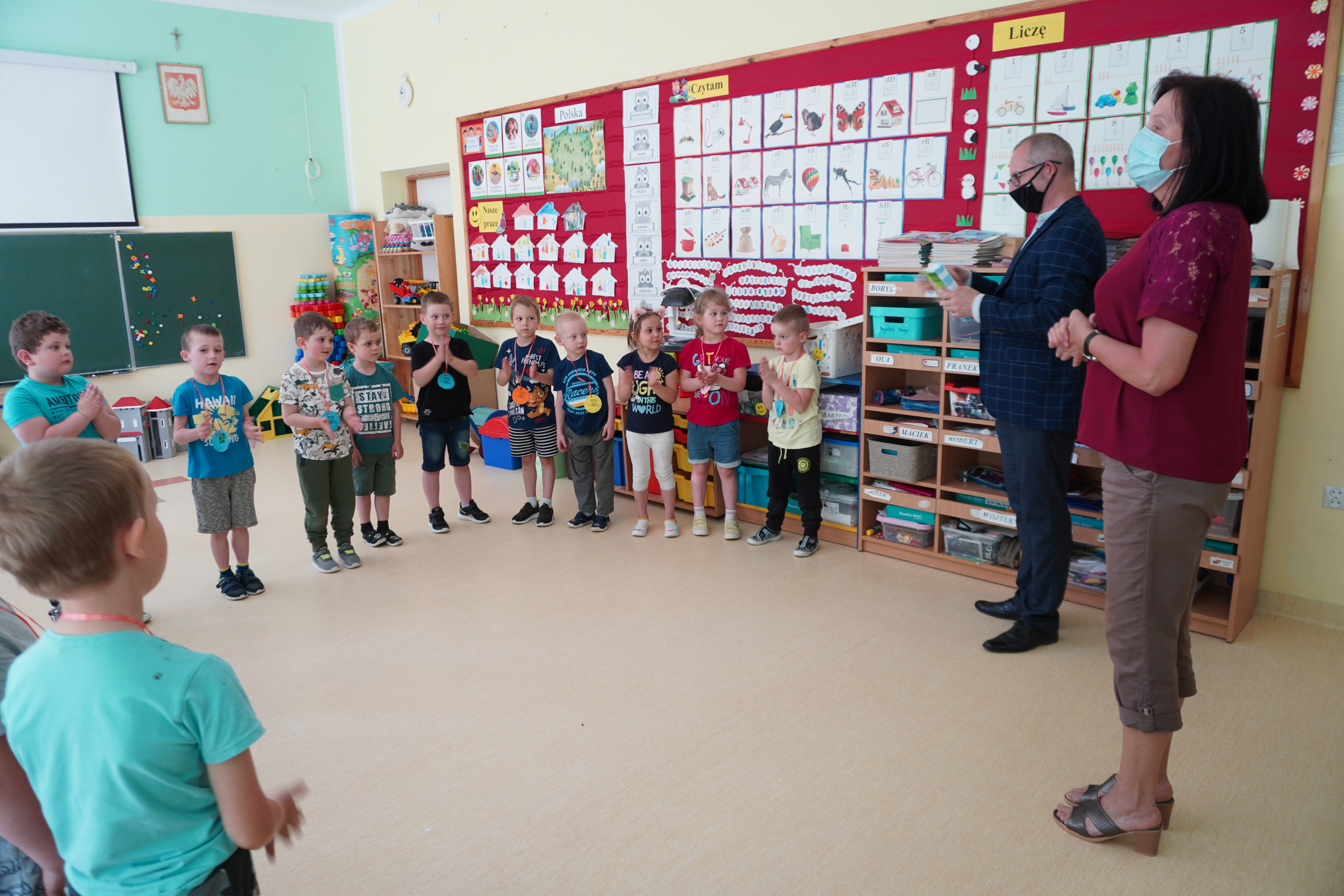 Z okazji Dnia Dziecka sekretarz Rafał Gotowiec w imieniu burmistrz Beaty Szczepankowskiej udał się do naszych najmłodszych z przyszkolnych Oddziałów Przedszkolnych w Pościeniu Wsi i Zarębach.