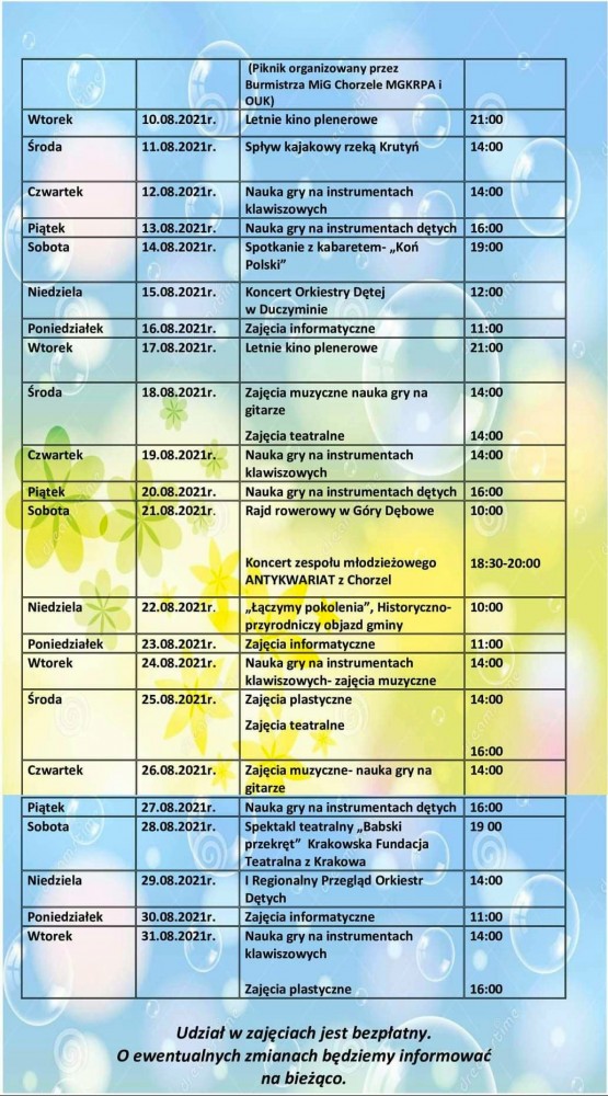 Trwa moc wakacyjnych imprez i atrakcji dla mieszkańców w Mieście i Gminie Chorzele! Plany na siepień