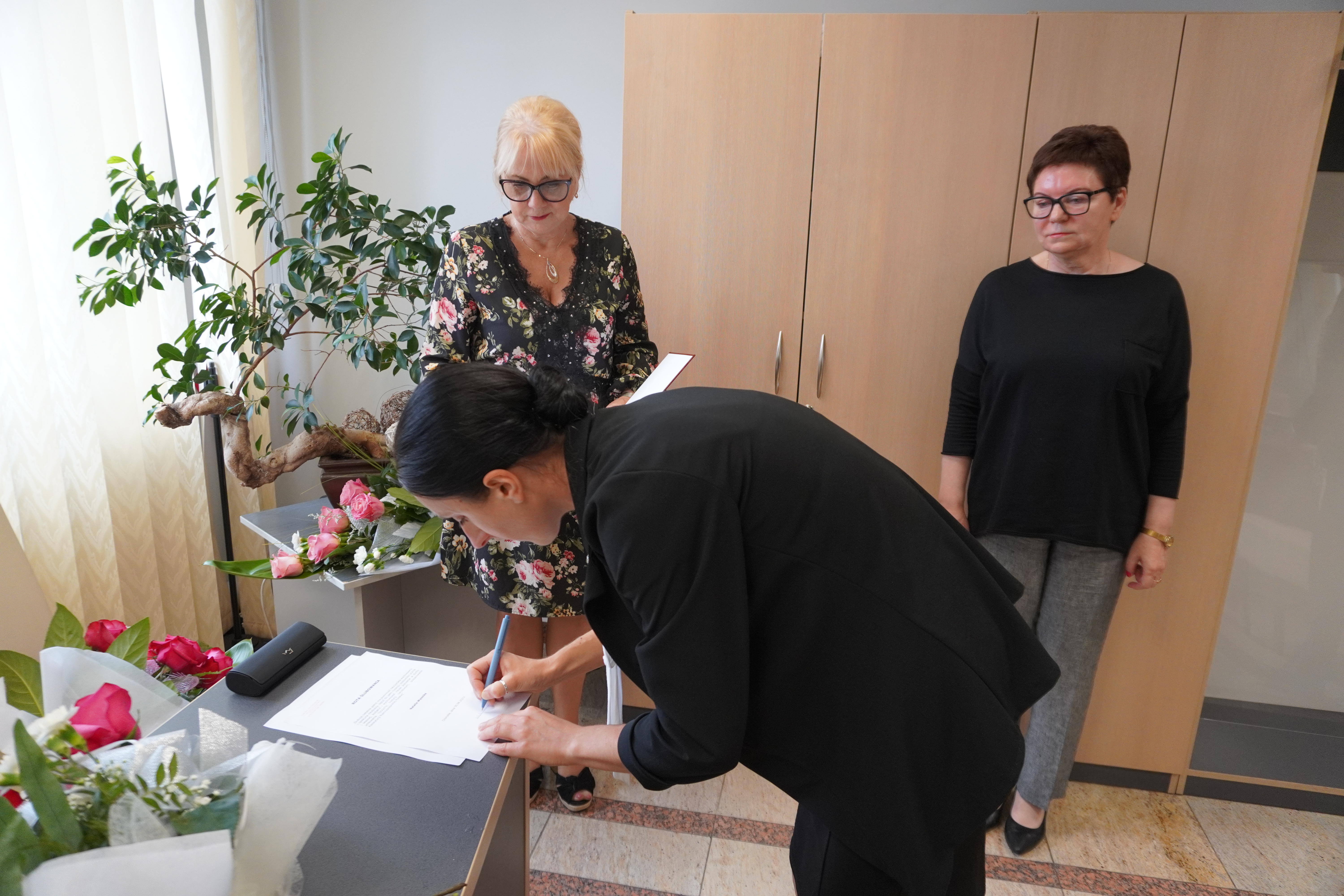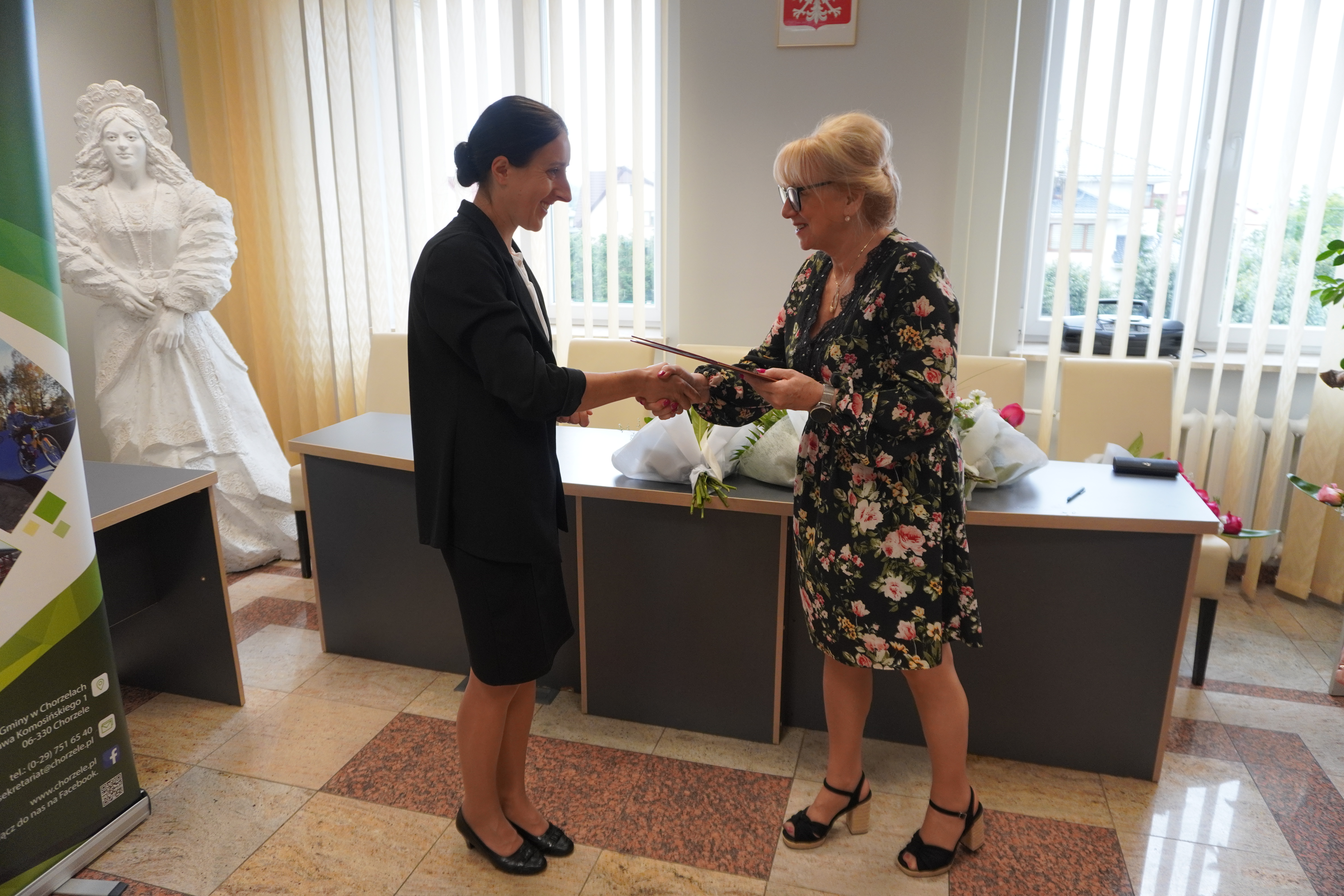 Burmistrz Beata Szczepankowska wręczyła akty nadania stopnia nauczyciela mianowanego.