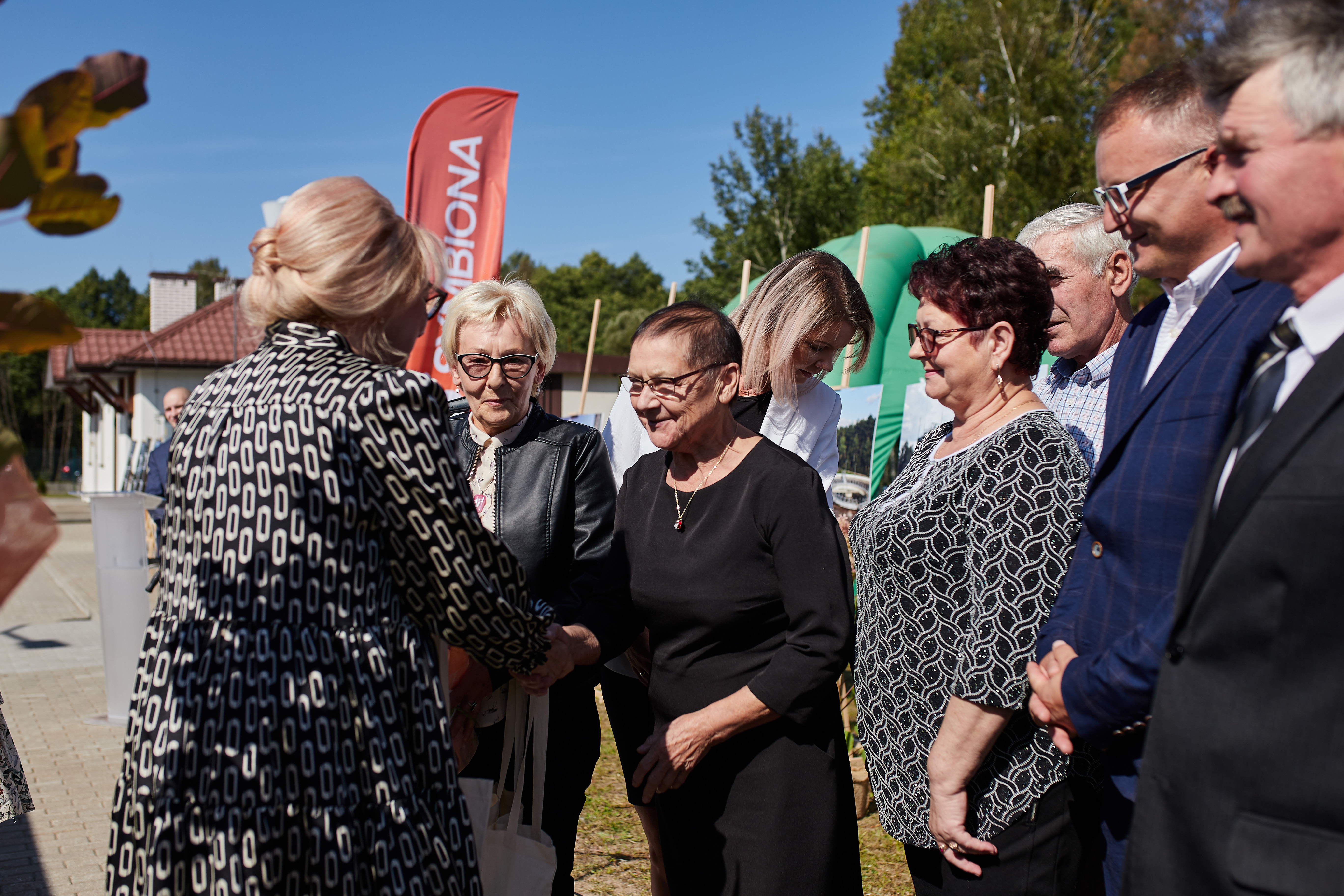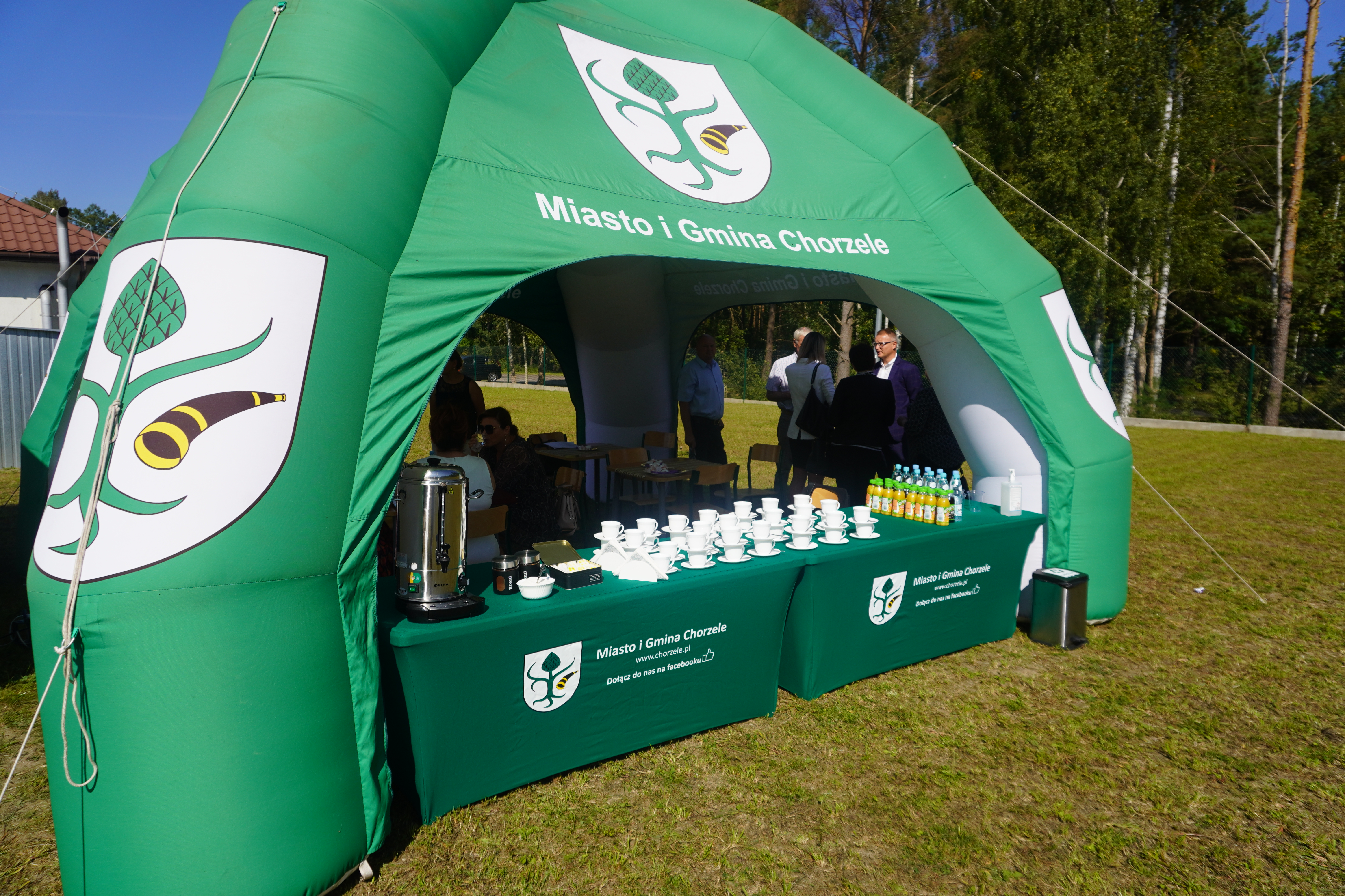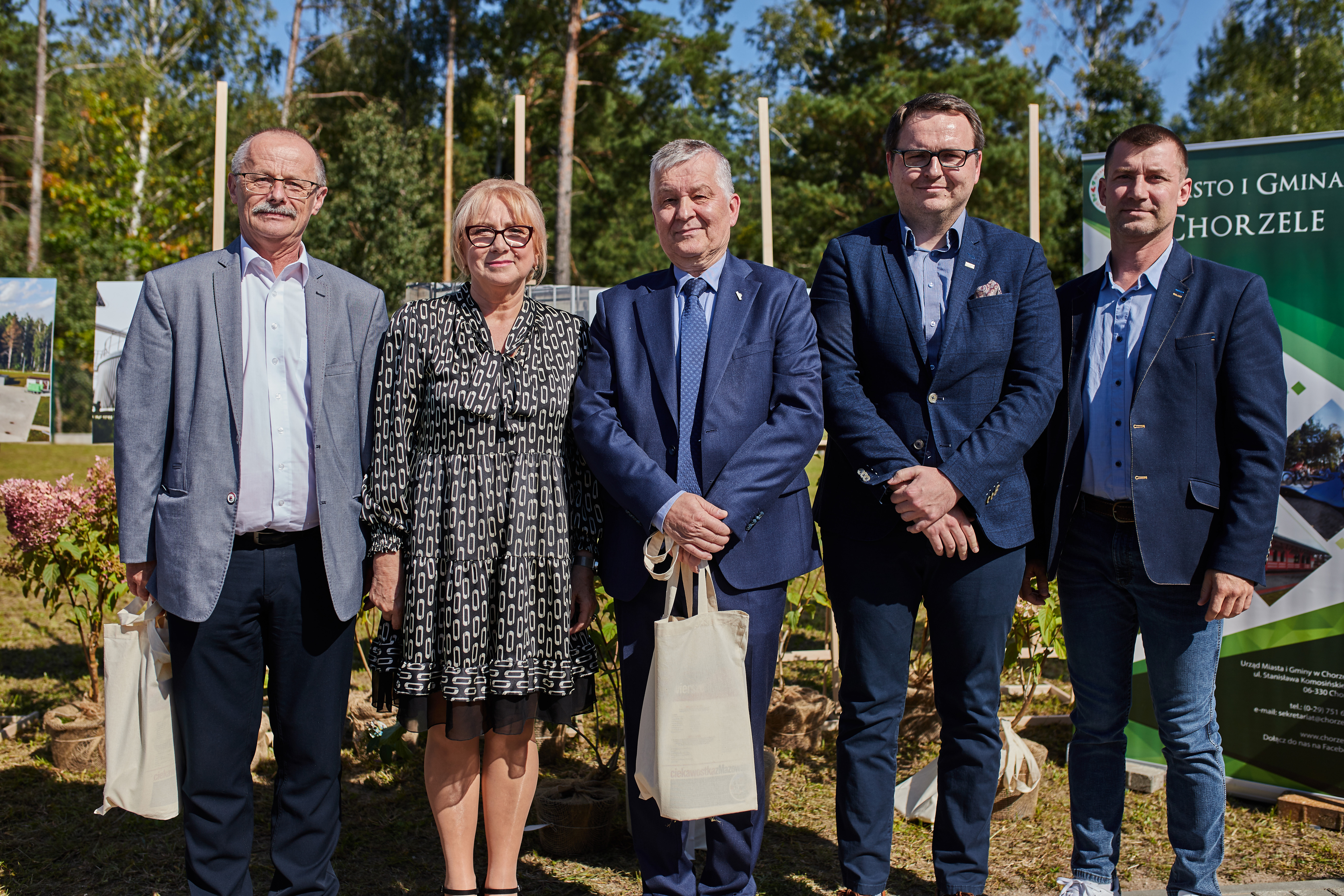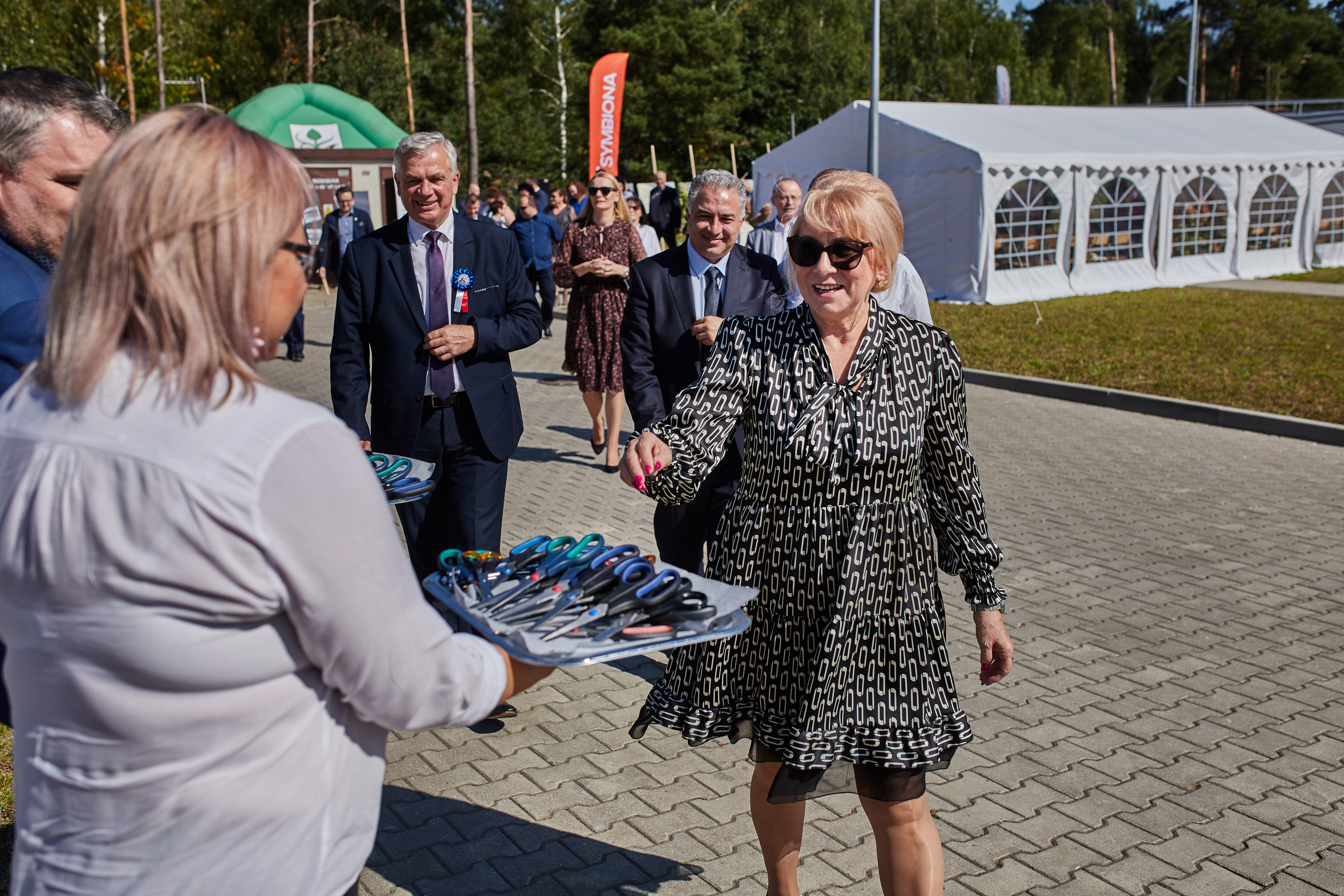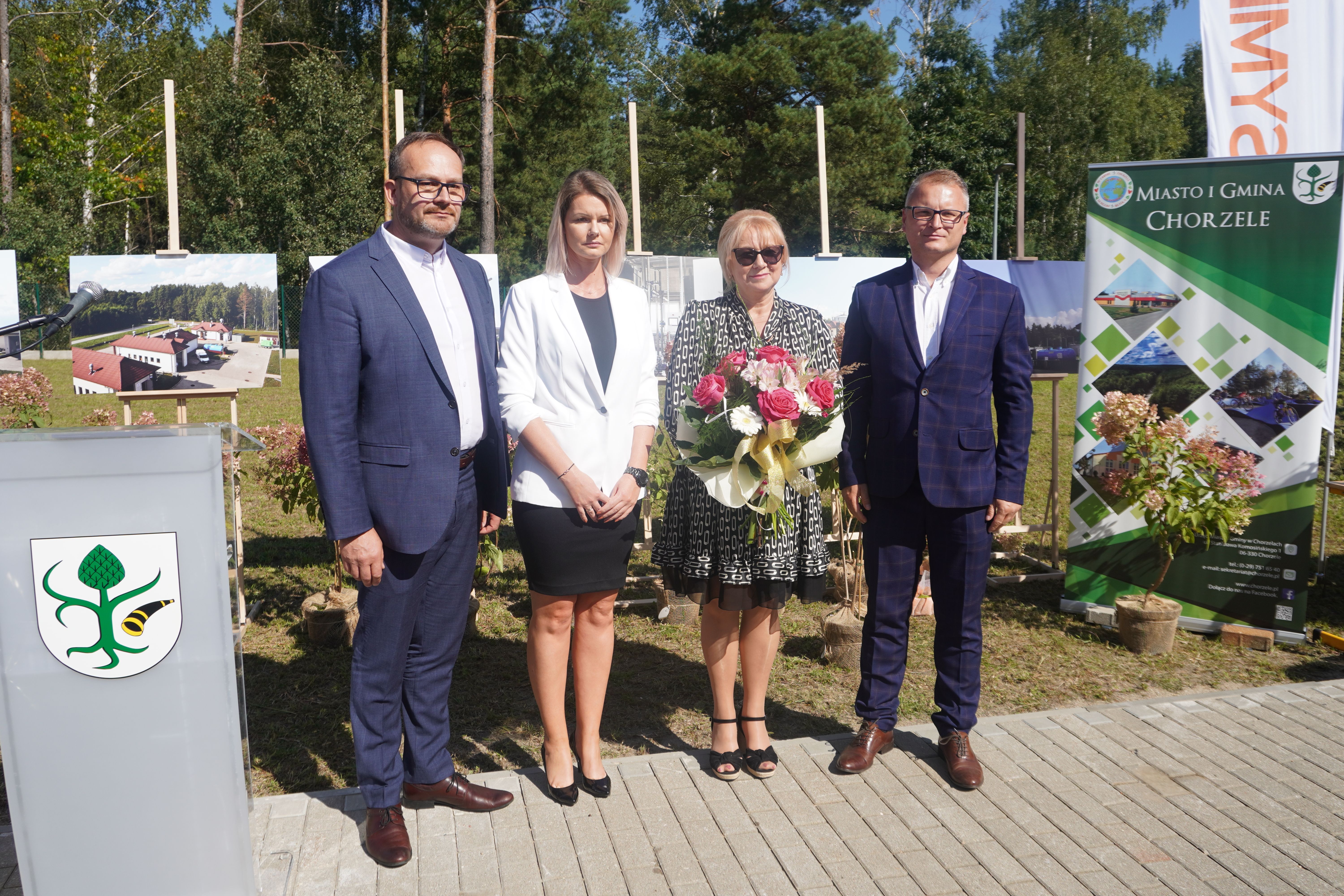 Następnie zaproszono zgromadzonych gości do symbolicznego przecięcia rekordowo długiej wstęgi i wspólnego zdjęcia. Na zakończenie wszyscy uczestnicy spotkania mieli wyjątkową okazję zwiedzić teren inwestycji, po której oprowadzał Pan Maciej Pietraszek – Kierownik Projektu. To był niezwykle doniosły i wyjątkowy dzień, który upłynął w radosnej atmosferze. Gmina Chorzele na czele z burmistrz Beatą Szczepankowską zrealizowała kolejną bardzo ważną inwestycję, która wpłynie pozytywnie na dynamiczny i przyjazny dla mieszkańców oraz środowiska rozwój.