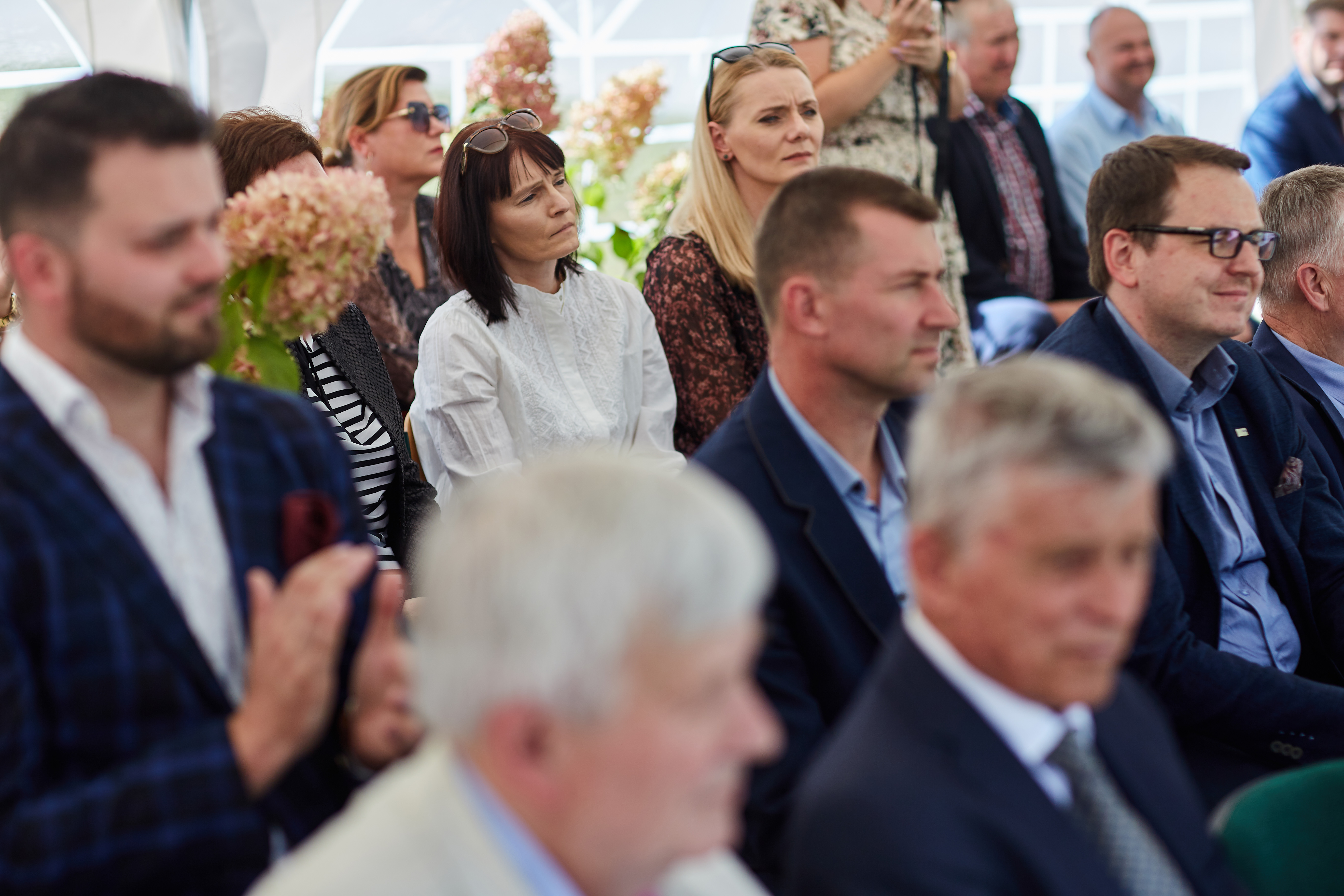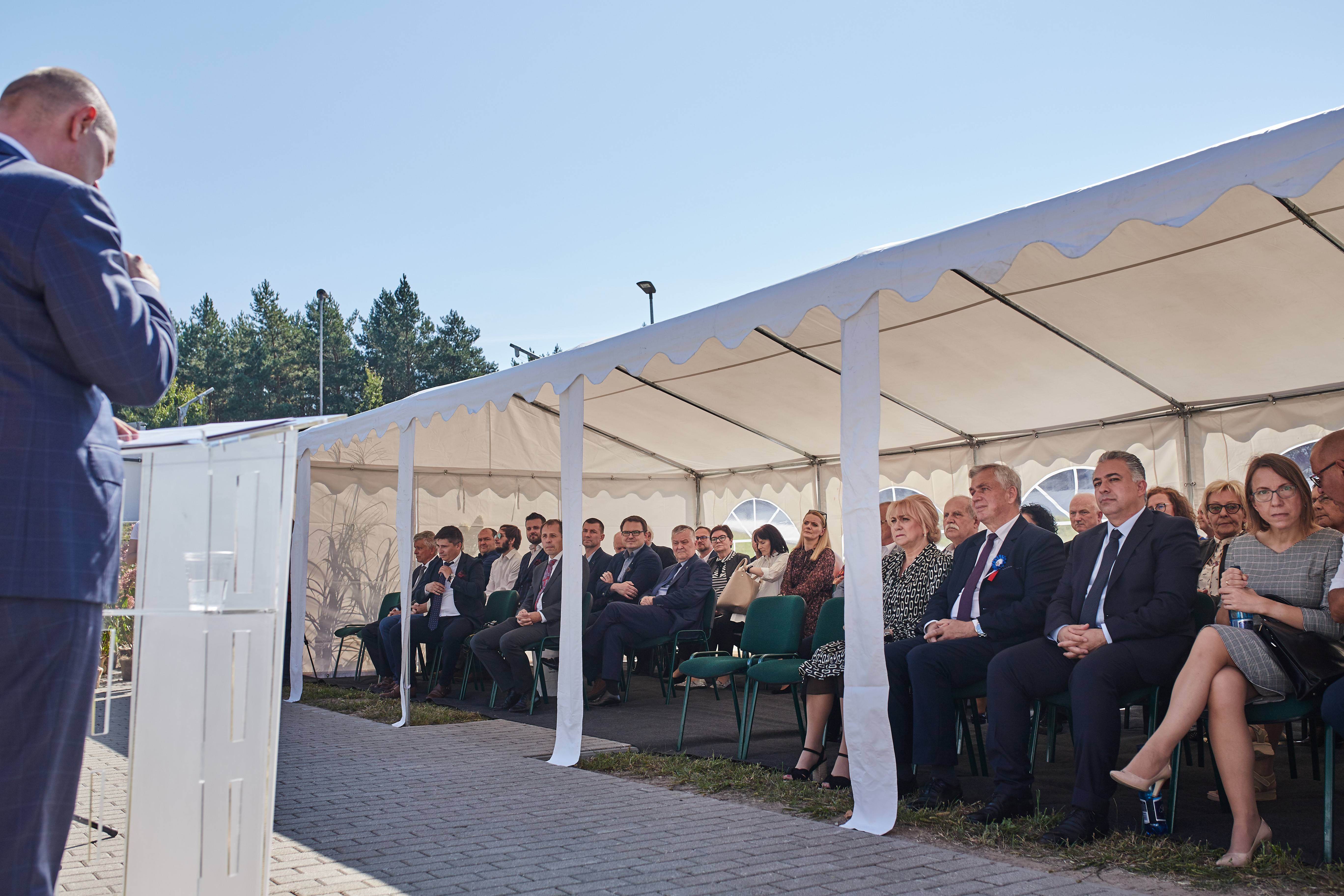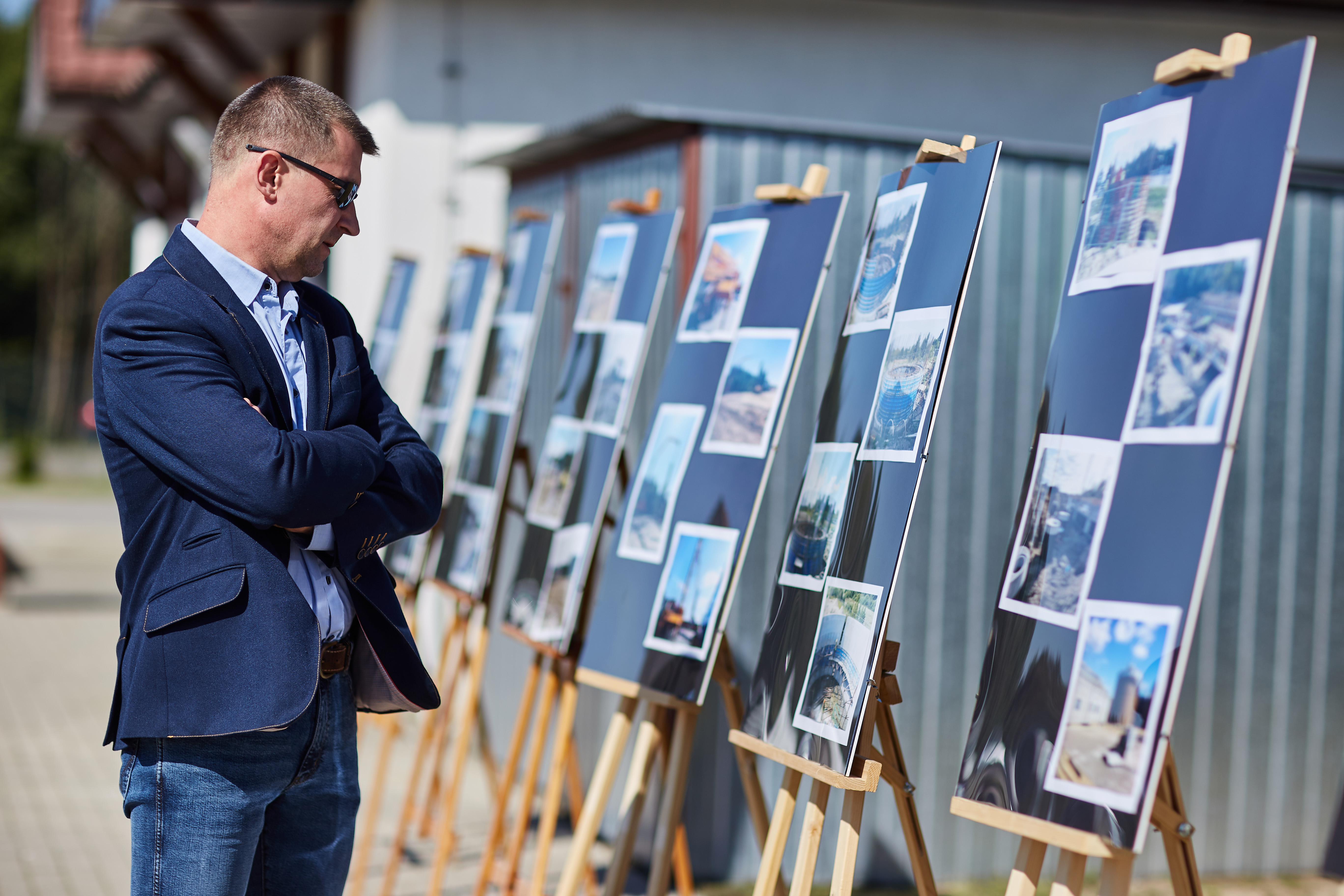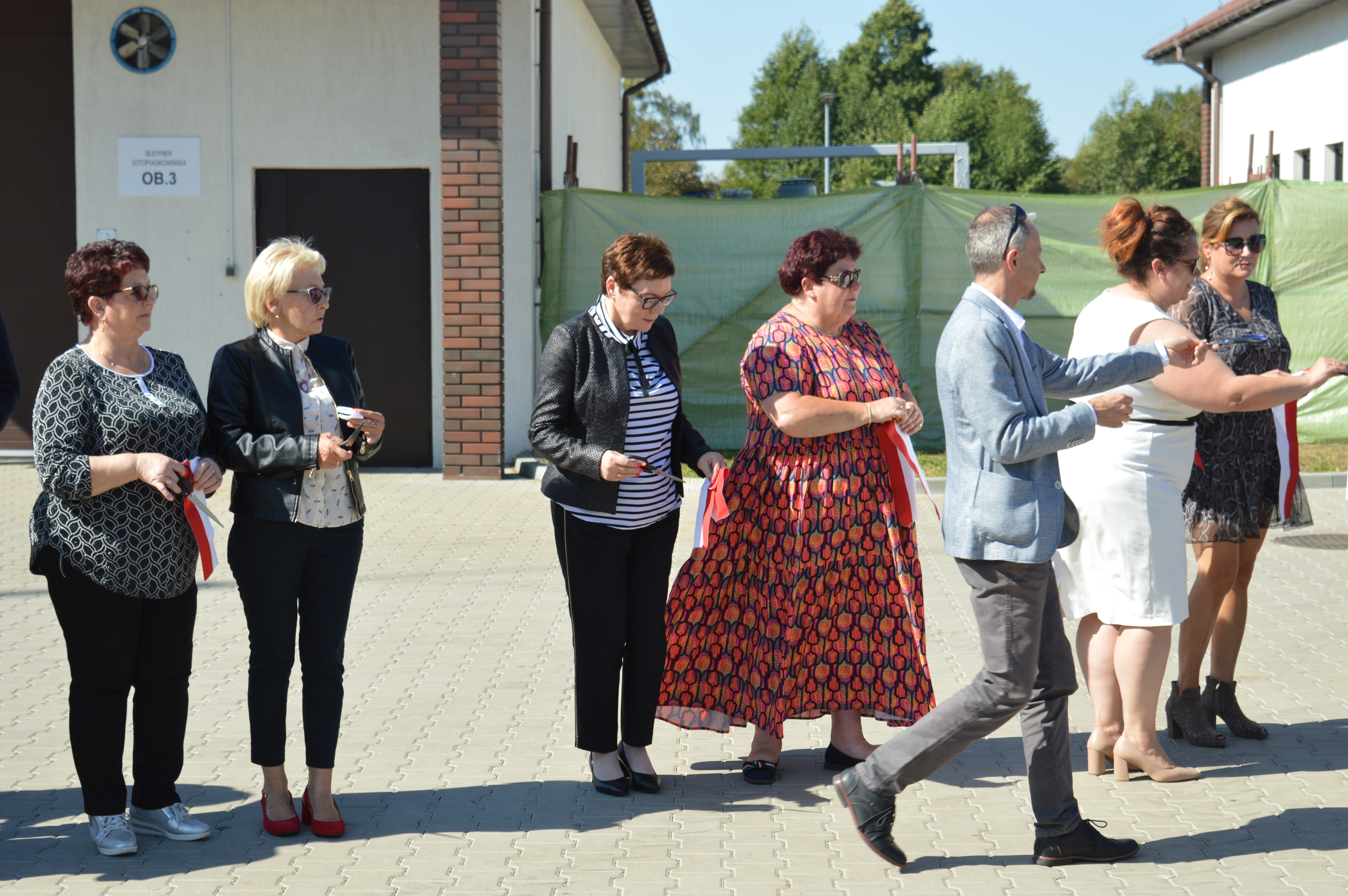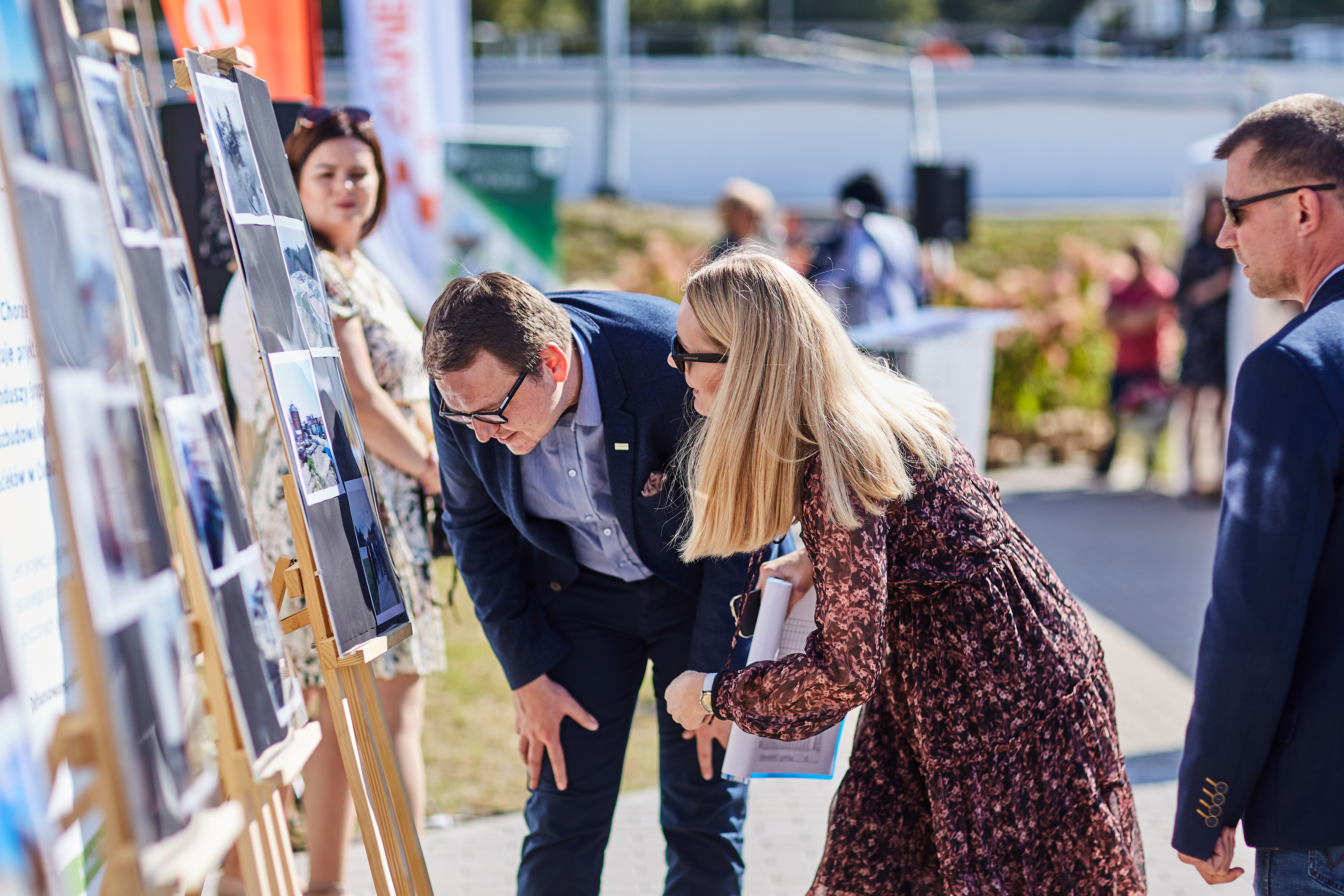 Następnie zaproszono zgromadzonych gości do symbolicznego przecięcia rekordowo długiej wstęgi i wspólnego zdjęcia. Na zakończenie wszyscy uczestnicy spotkania mieli wyjątkową okazję zwiedzić teren inwestycji, po której oprowadzał Pan Maciej Pietraszek – Kierownik Projektu. To był niezwykle doniosły i wyjątkowy dzień, który upłynął w radosnej atmosferze. Gmina Chorzele na czele z burmistrz Beatą Szczepankowską zrealizowała kolejną bardzo ważną inwestycję, która wpłynie pozytywnie na dynamiczny i przyjazny dla mieszkańców oraz środowiska rozwój.