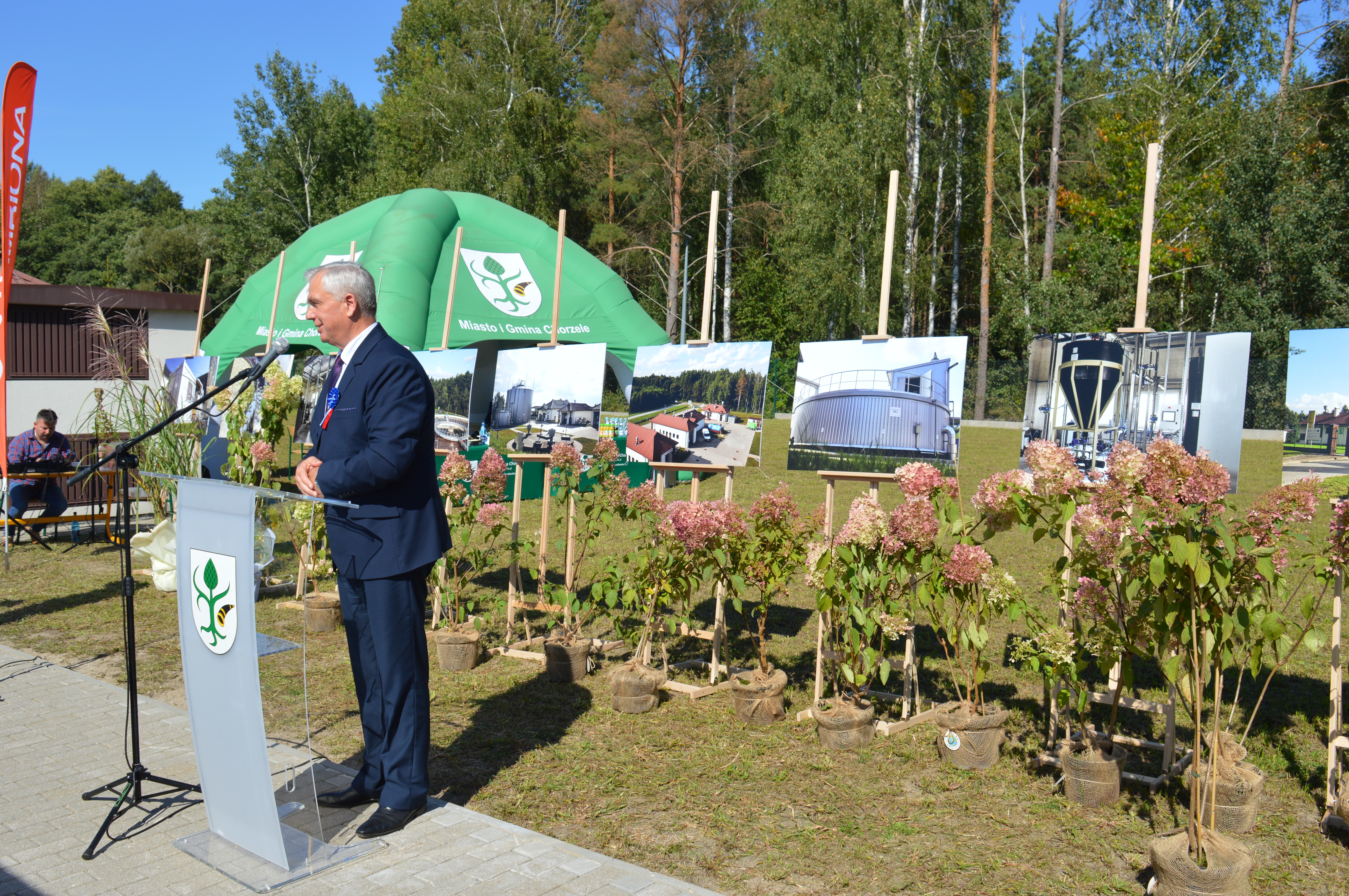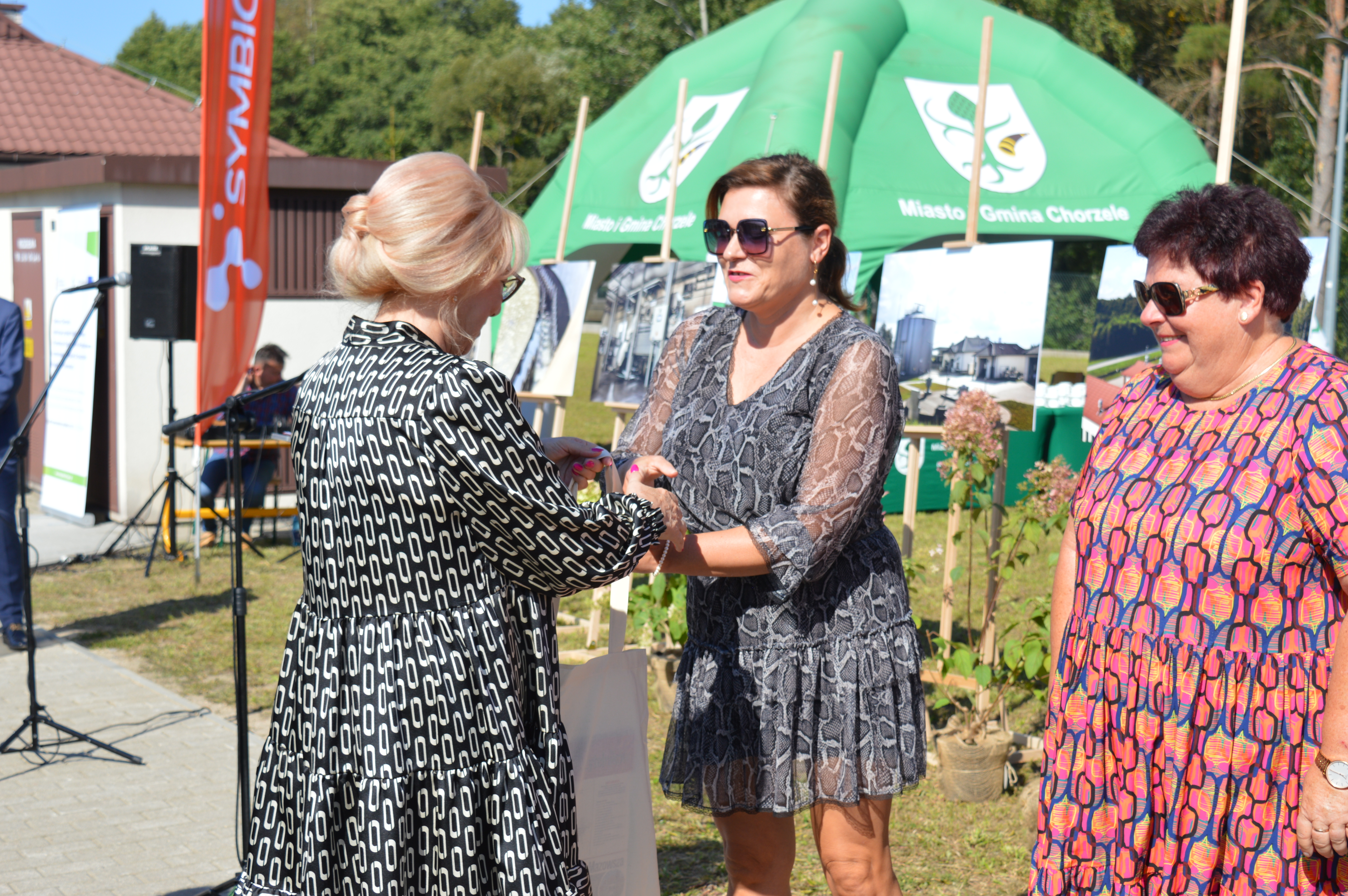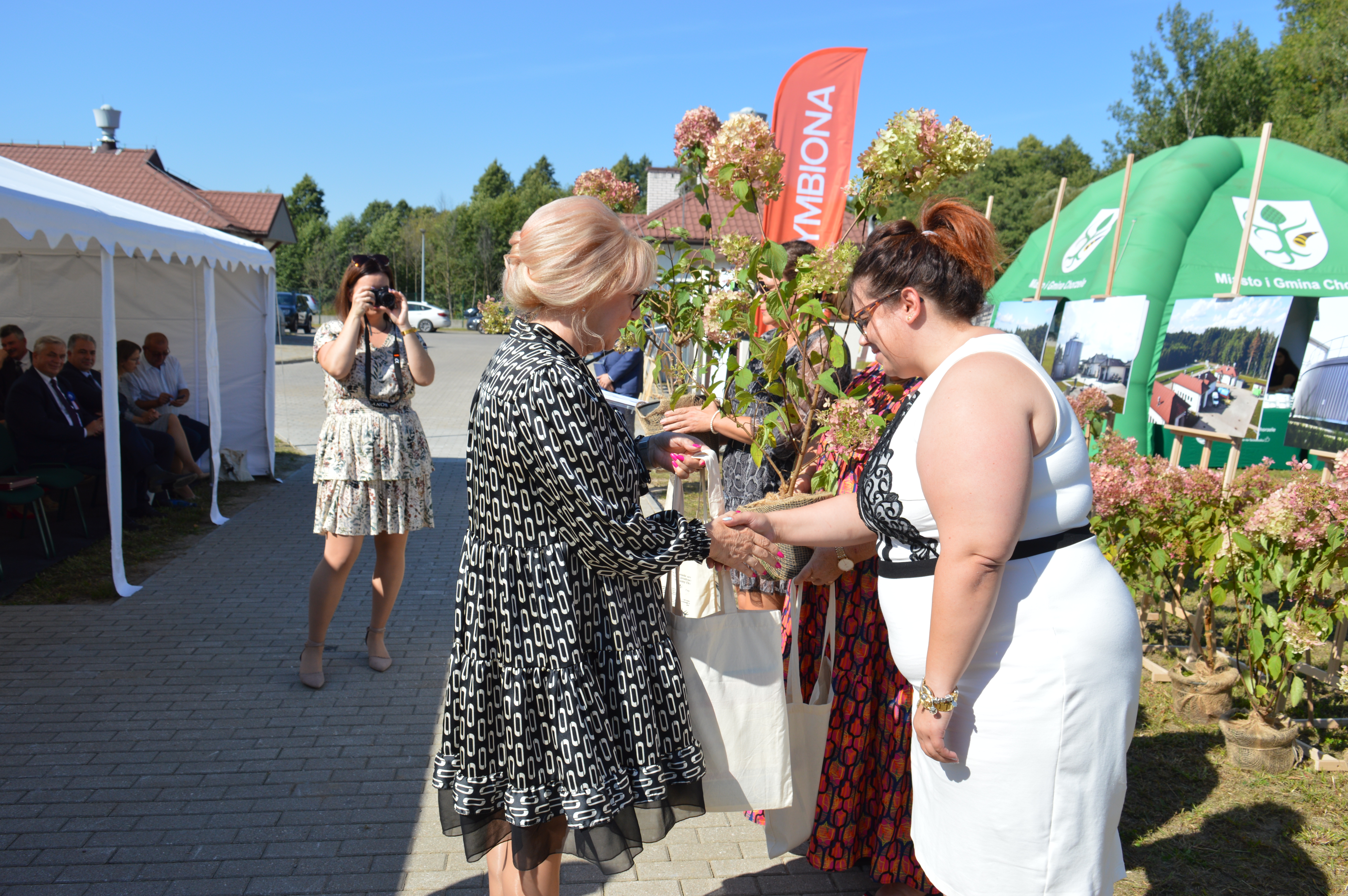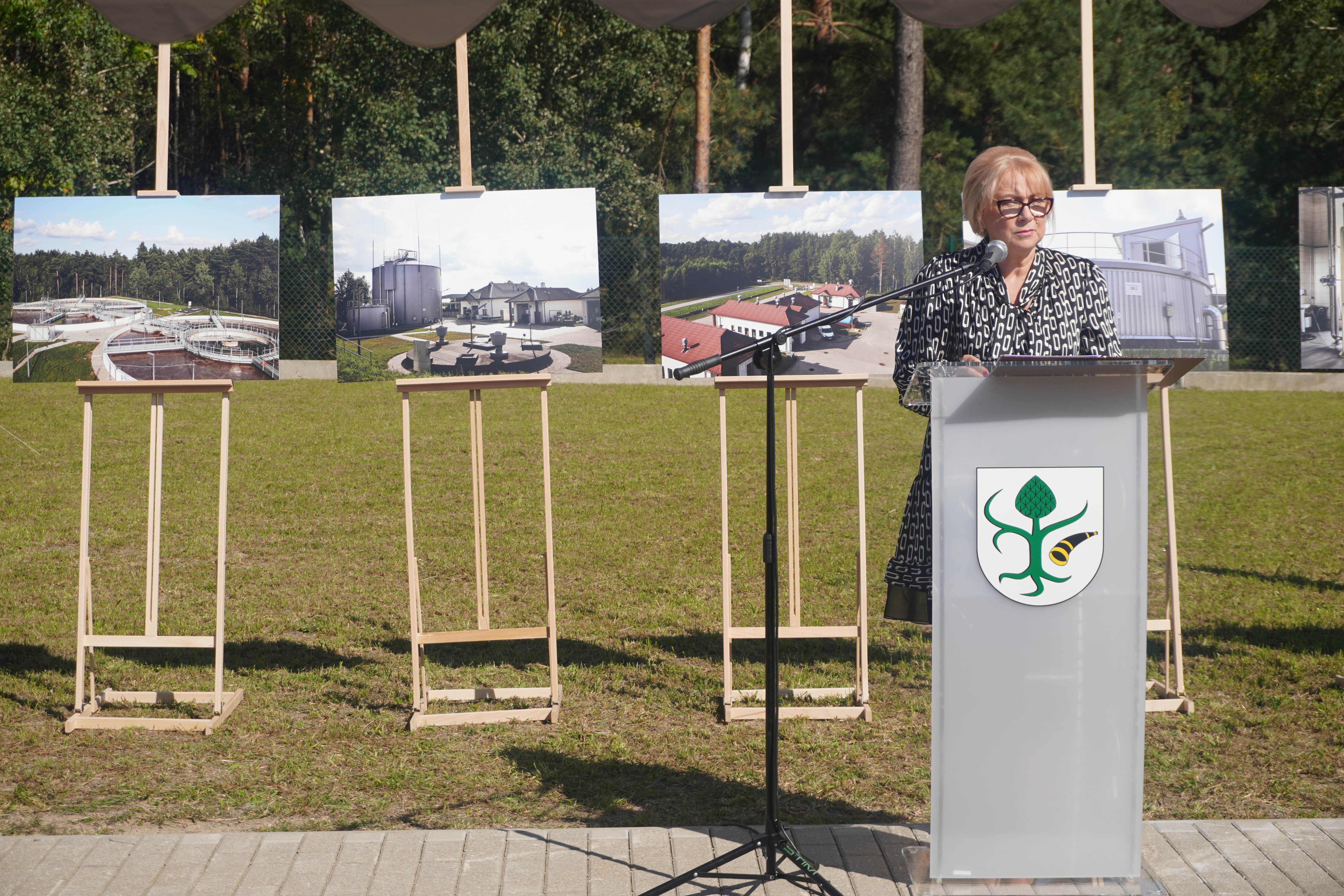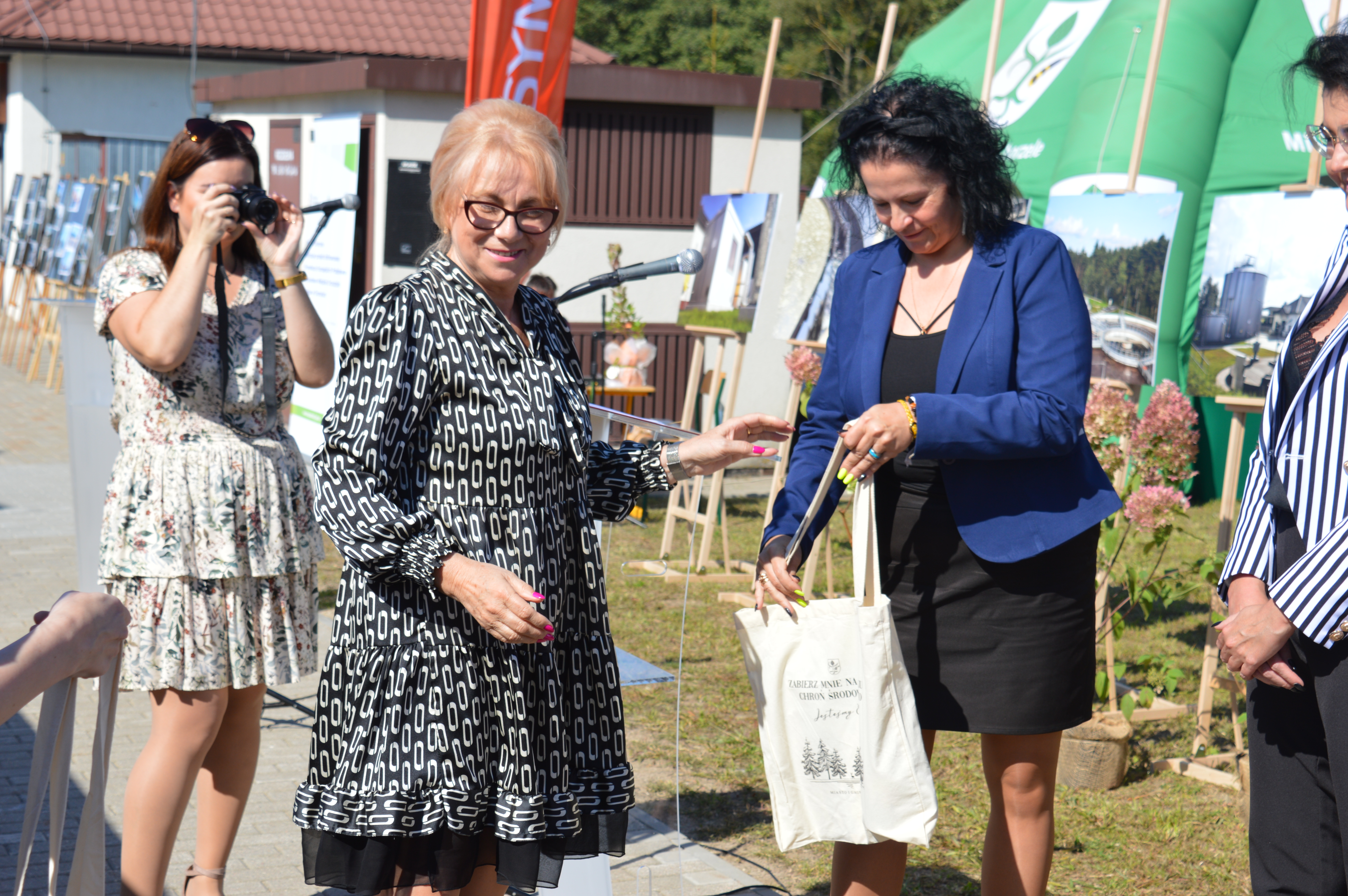 - Witam Państwa w imieniu własnym i Wykonawcy bardzo serdecznie, w tym uroczystym i bardzo ważnym dla naszej całej społeczności dniu - na terenie Przebudowanej i Rozbudowanej Miejskiej Oczyszczalni Ścieków w Chorzelach, w dniu, w którym nasz trud i wysiłek włożony w realizację tego niezwykle istotnego przedsięwzięcia zakończył się sukcesem. Obiekt ma pozwolenie na użytkowanie, pozwolenie wodnoprawne, spełnia wszelkie wymagania stawiane przez ochronę środowiska w Polsce, jak i Unię Europejską. Sukces ten nie byłby możliwy, gdyby nie pomoc i zaangażowanie wszystkich Państwa, których pragnę z całego serca powitać i podziękować – rozpoczęła swoje wystąpienie burmistrz Beata Szczepankowska, która w ciekawej konwencji, witając gości, przybliżała ich wkład w inwestycję i dziękowała wręczając wyjątkowe, ekologiczne upominki w postaci pięknych drzewek.