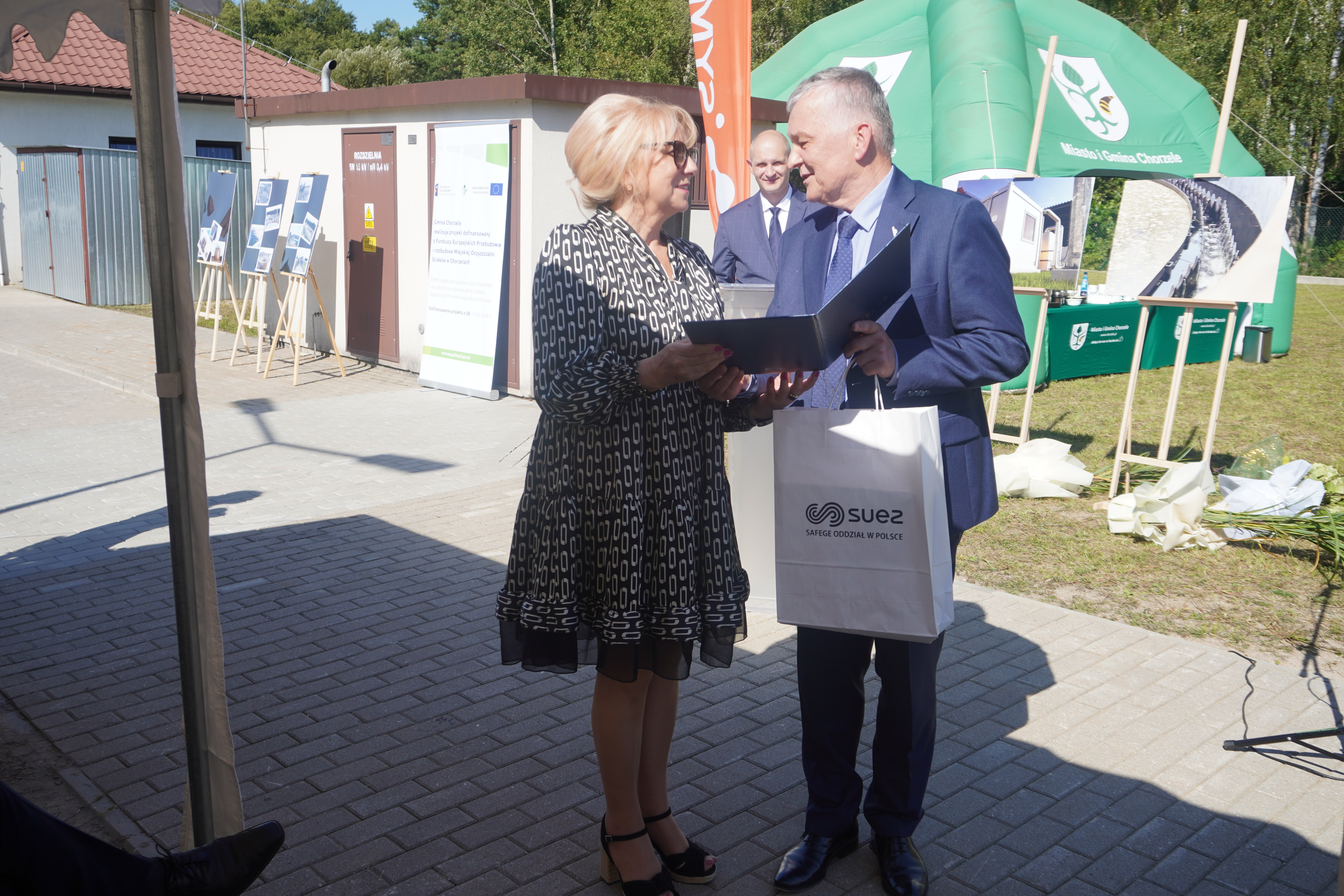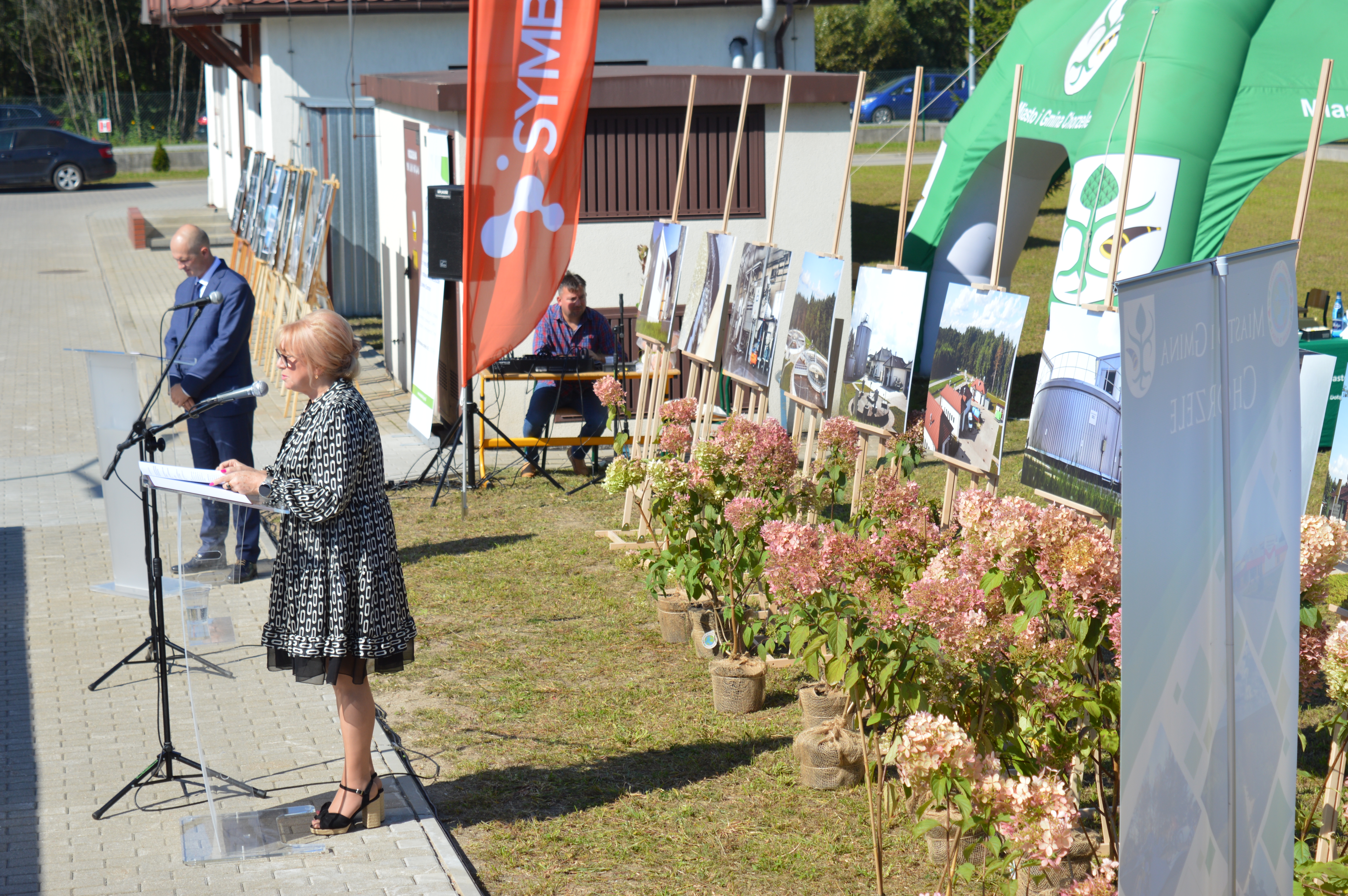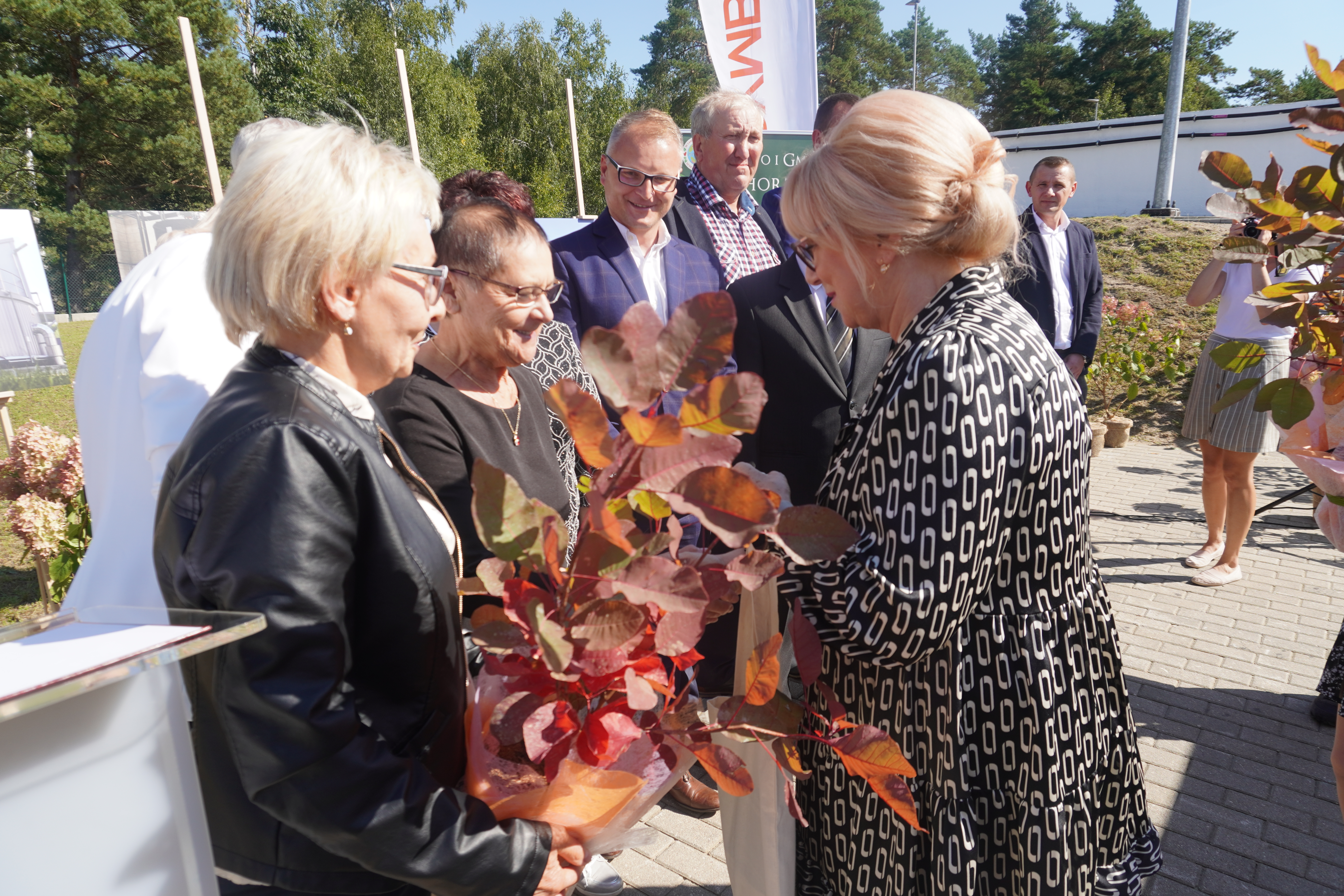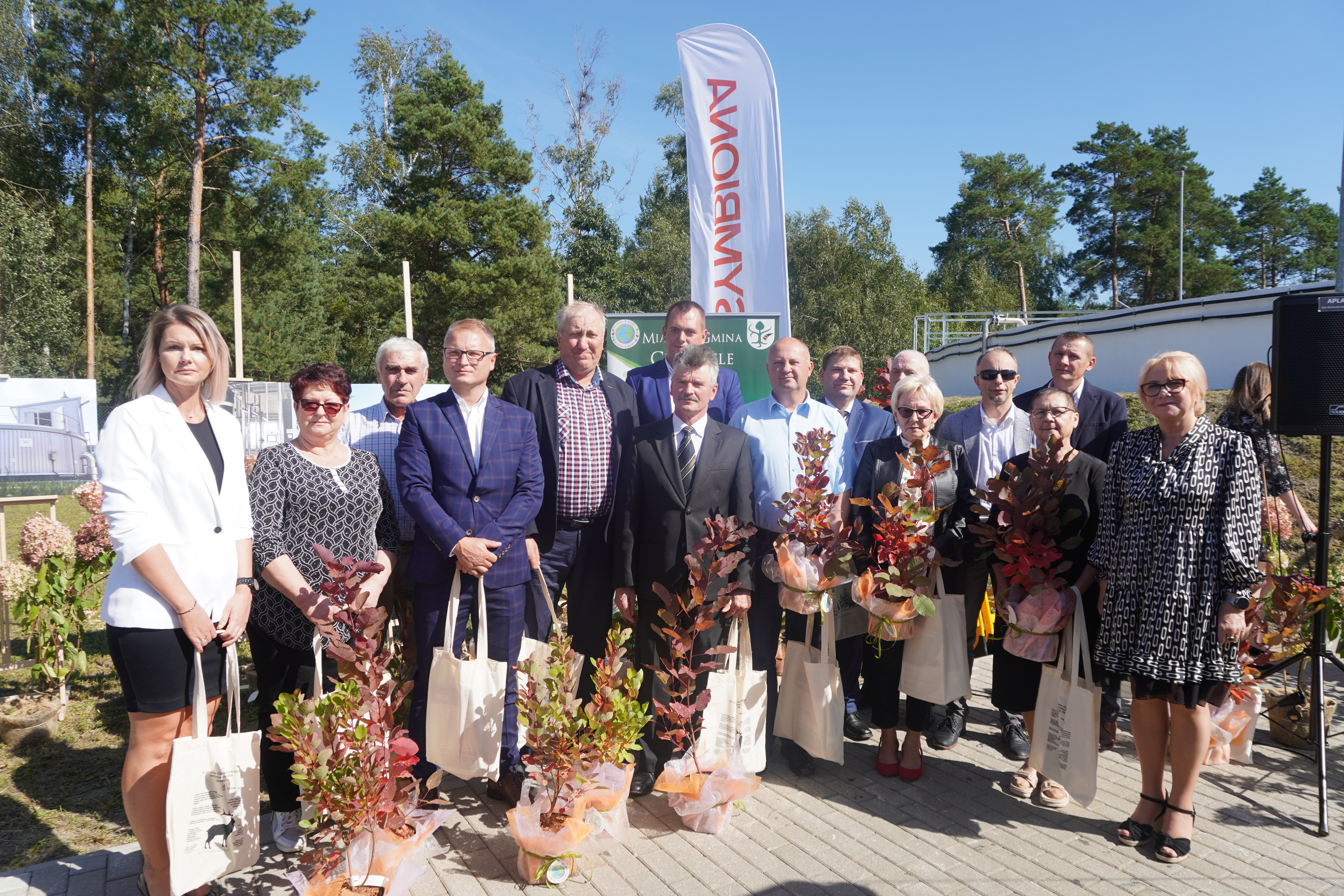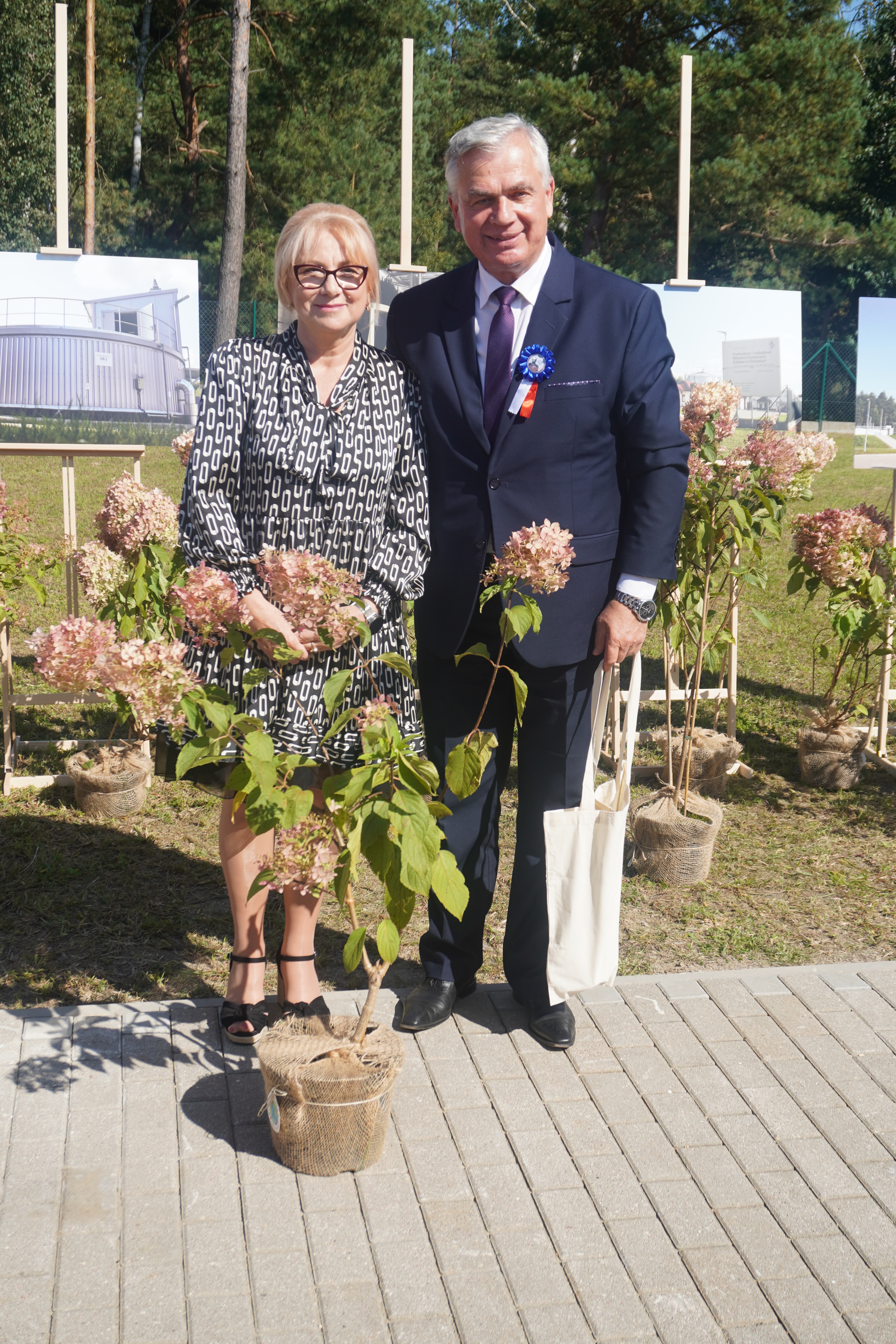 - Witam Państwa w imieniu własnym i Wykonawcy bardzo serdecznie, w tym uroczystym i bardzo ważnym dla naszej całej społeczności dniu - na terenie Przebudowanej i Rozbudowanej Miejskiej Oczyszczalni Ścieków w Chorzelach, w dniu, w którym nasz trud i wysiłek włożony w realizację tego niezwykle istotnego przedsięwzięcia zakończył się sukcesem. Obiekt ma pozwolenie na użytkowanie, pozwolenie wodnoprawne, spełnia wszelkie wymagania stawiane przez ochronę środowiska w Polsce, jak i Unię Europejską. Sukces ten nie byłby możliwy, gdyby nie pomoc i zaangażowanie wszystkich Państwa, których pragnę z całego serca powitać i podziękować – rozpoczęła swoje wystąpienie burmistrz Beata Szczepankowska, która w ciekawej konwencji, witając gości, przybliżała ich wkład w inwestycję i dziękowała wręczając wyjątkowe, ekologiczne upominki w postaci pięknych drzewek.