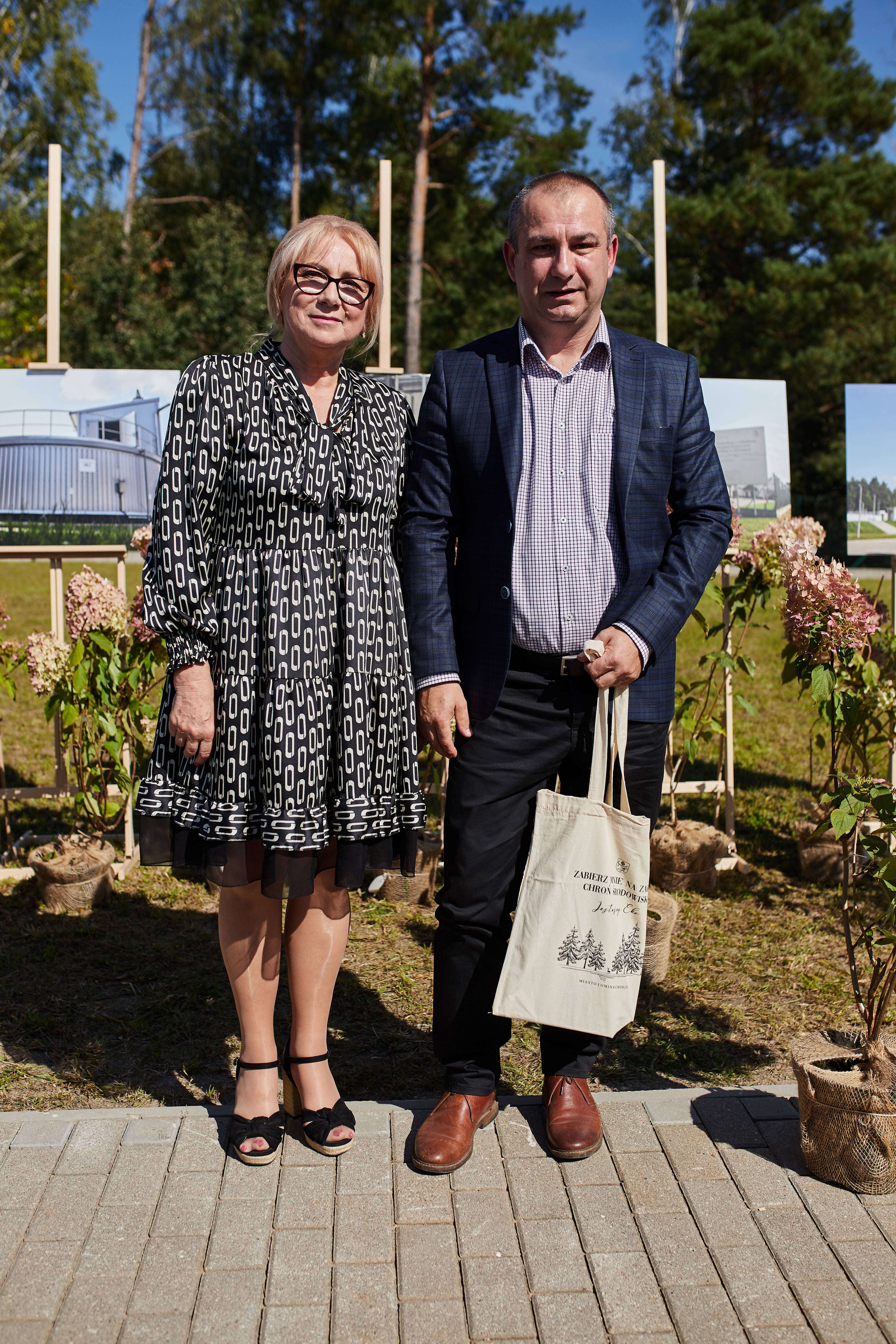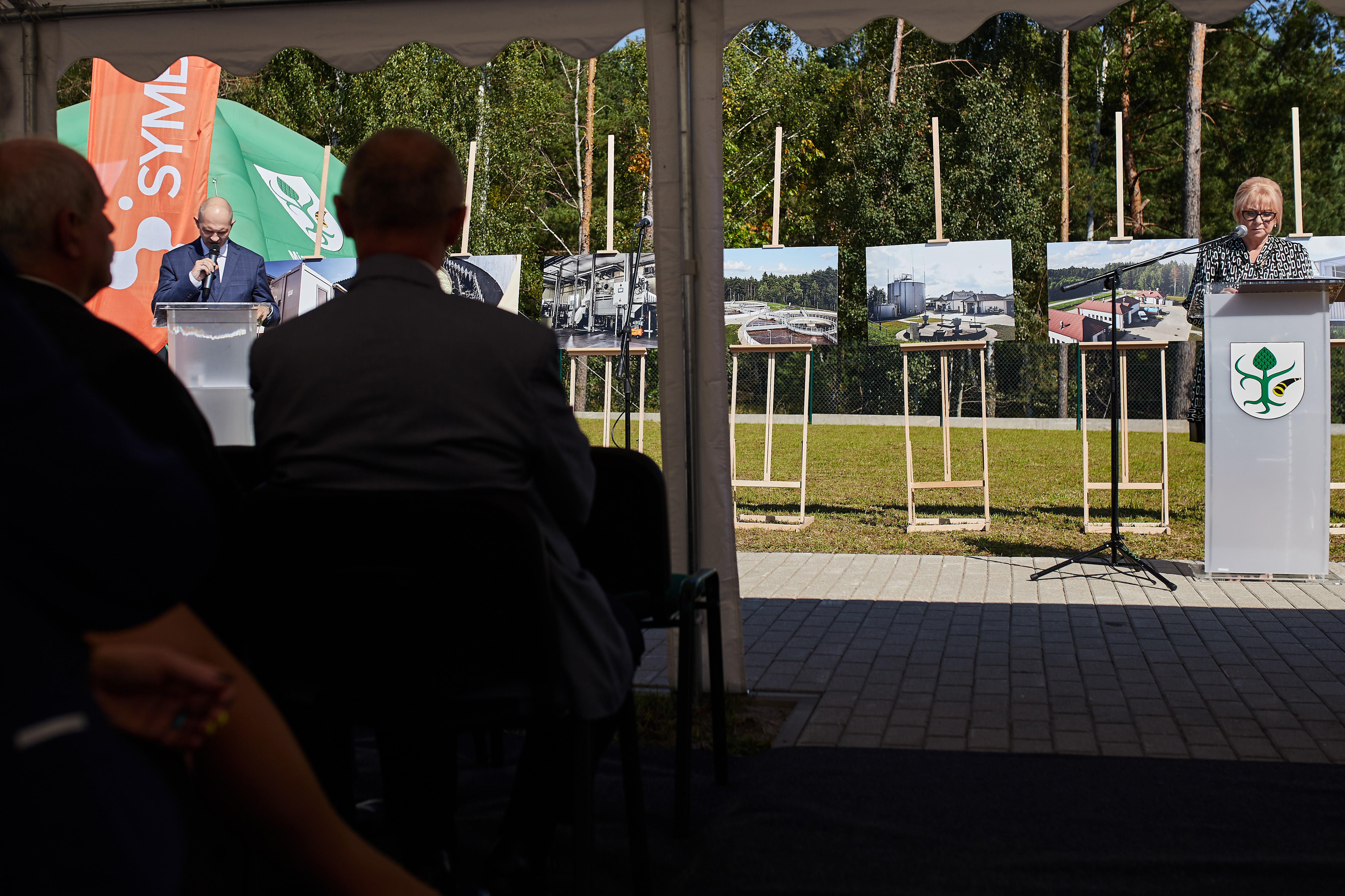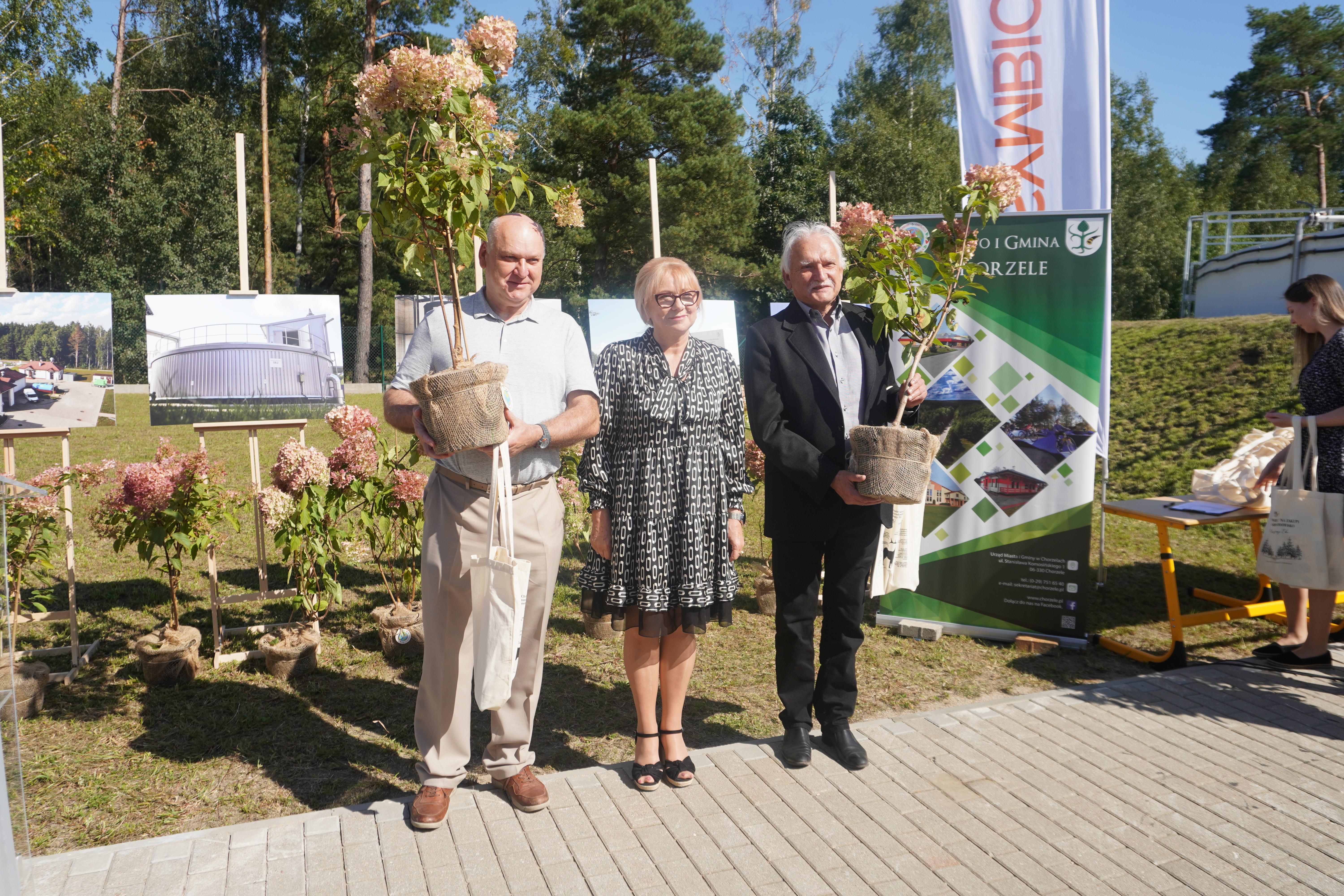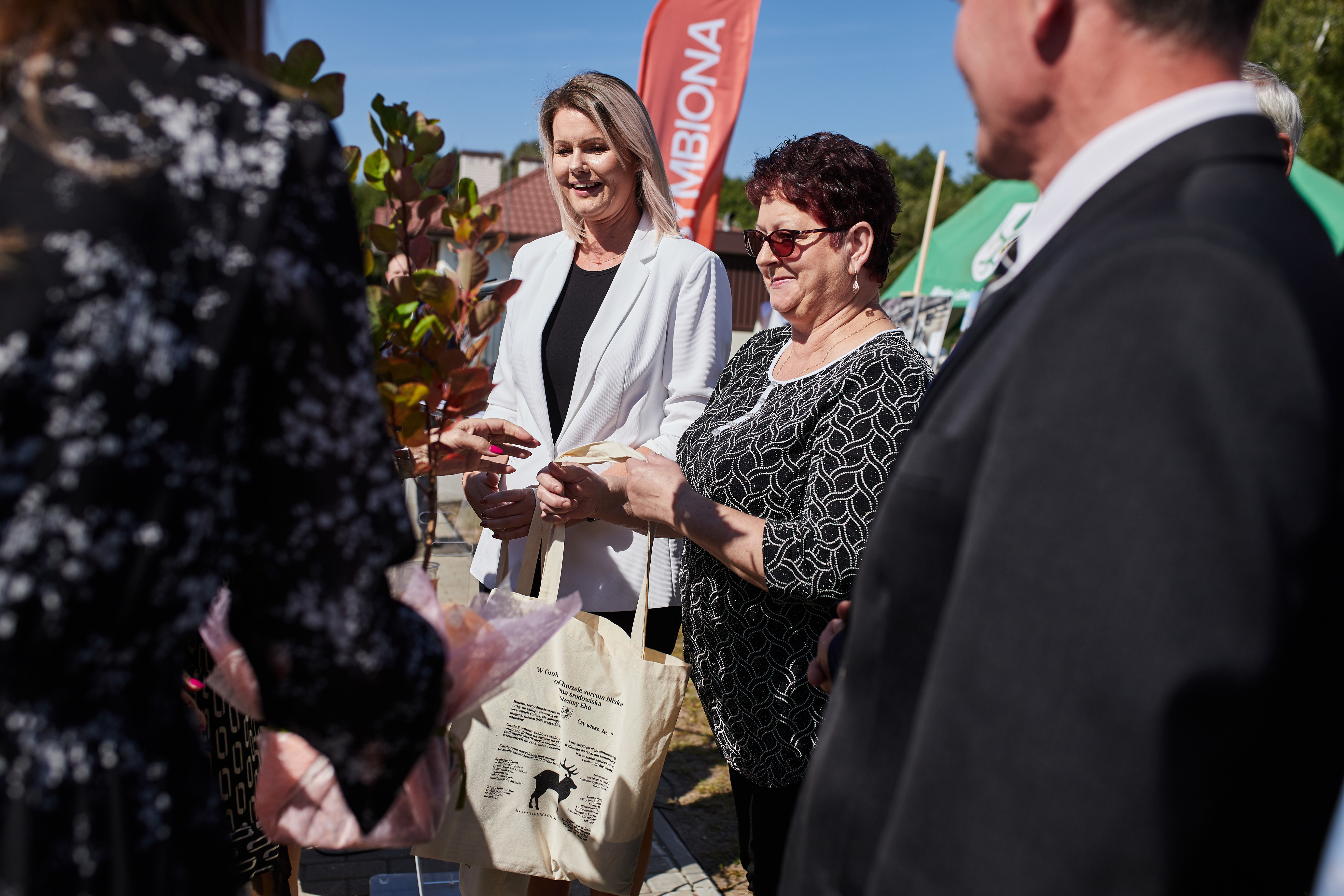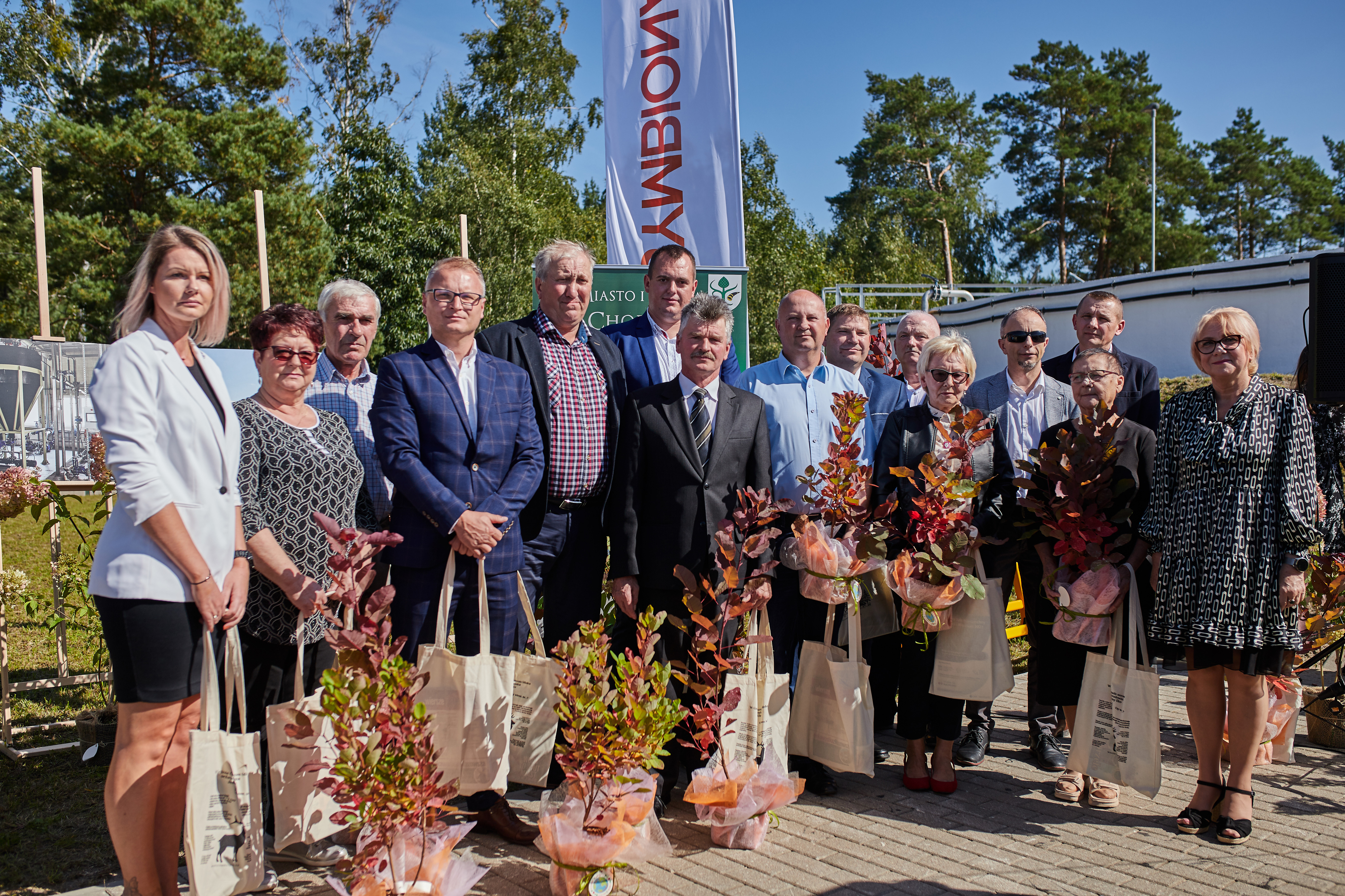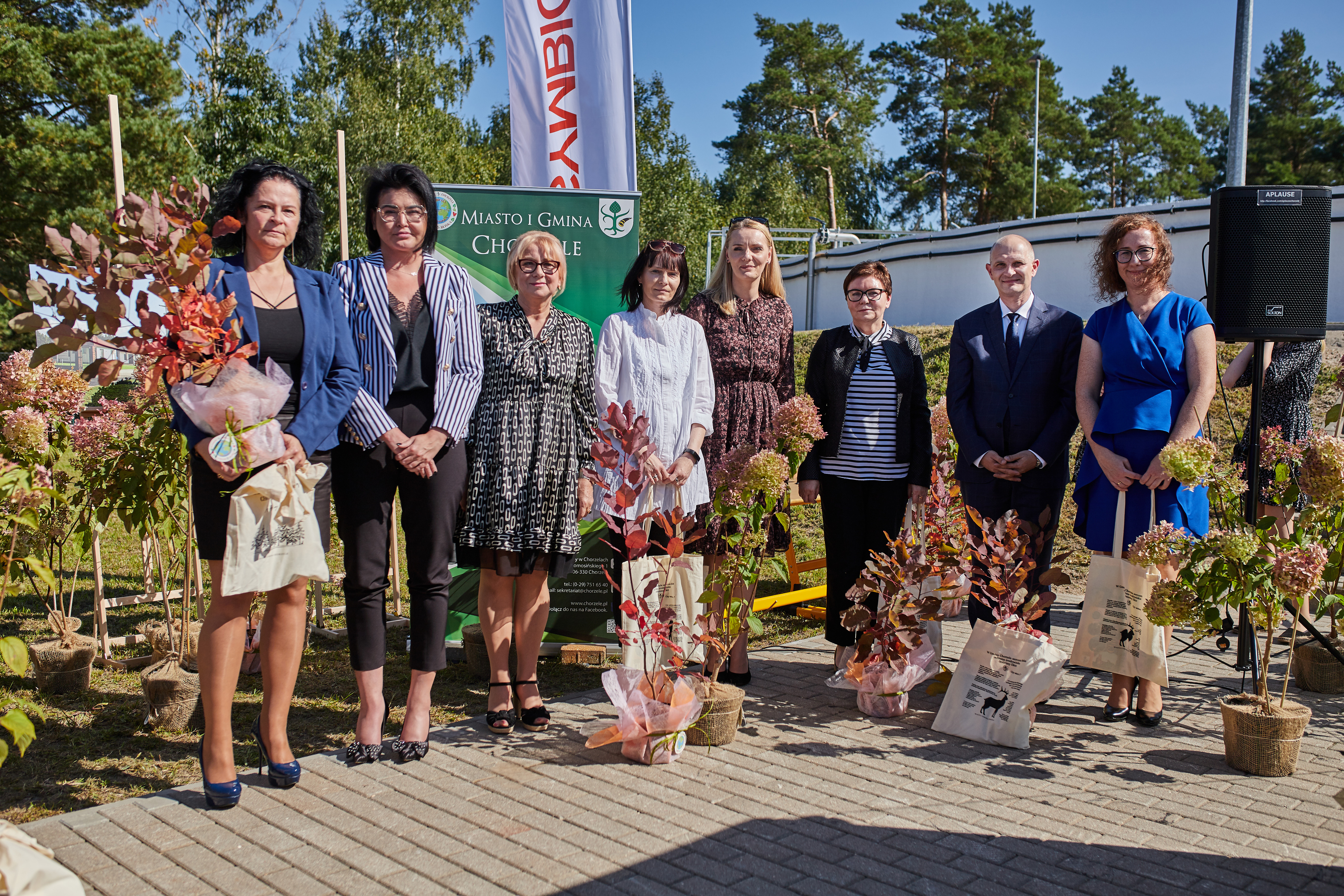 - Witam Państwa w imieniu własnym i Wykonawcy bardzo serdecznie, w tym uroczystym i bardzo ważnym dla naszej całej społeczności dniu - na terenie Przebudowanej i Rozbudowanej Miejskiej Oczyszczalni Ścieków w Chorzelach, w dniu, w którym nasz trud i wysiłek włożony w realizację tego niezwykle istotnego przedsięwzięcia zakończył się sukcesem. Obiekt ma pozwolenie na użytkowanie, pozwolenie wodnoprawne, spełnia wszelkie wymagania stawiane przez ochronę środowiska w Polsce, jak i Unię Europejską. Sukces ten nie byłby możliwy, gdyby nie pomoc i zaangażowanie wszystkich Państwa, których pragnę z całego serca powitać i podziękować – rozpoczęła swoje wystąpienie burmistrz Beata Szczepankowska, która w ciekawej konwencji, witając gości, przybliżała ich wkład w inwestycję i dziękowała wręczając wyjątkowe, ekologiczne upominki w postaci pięknych drzewek.