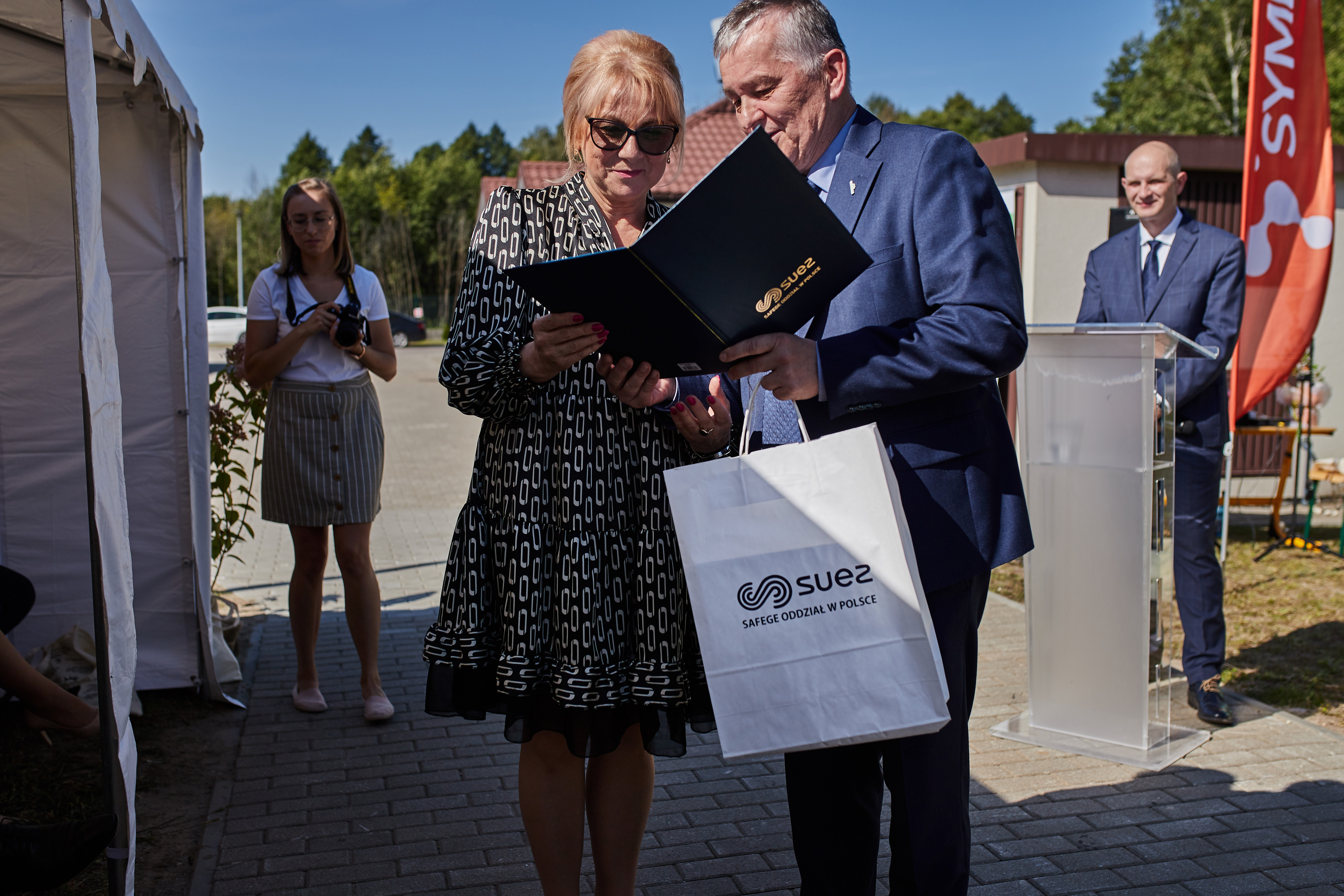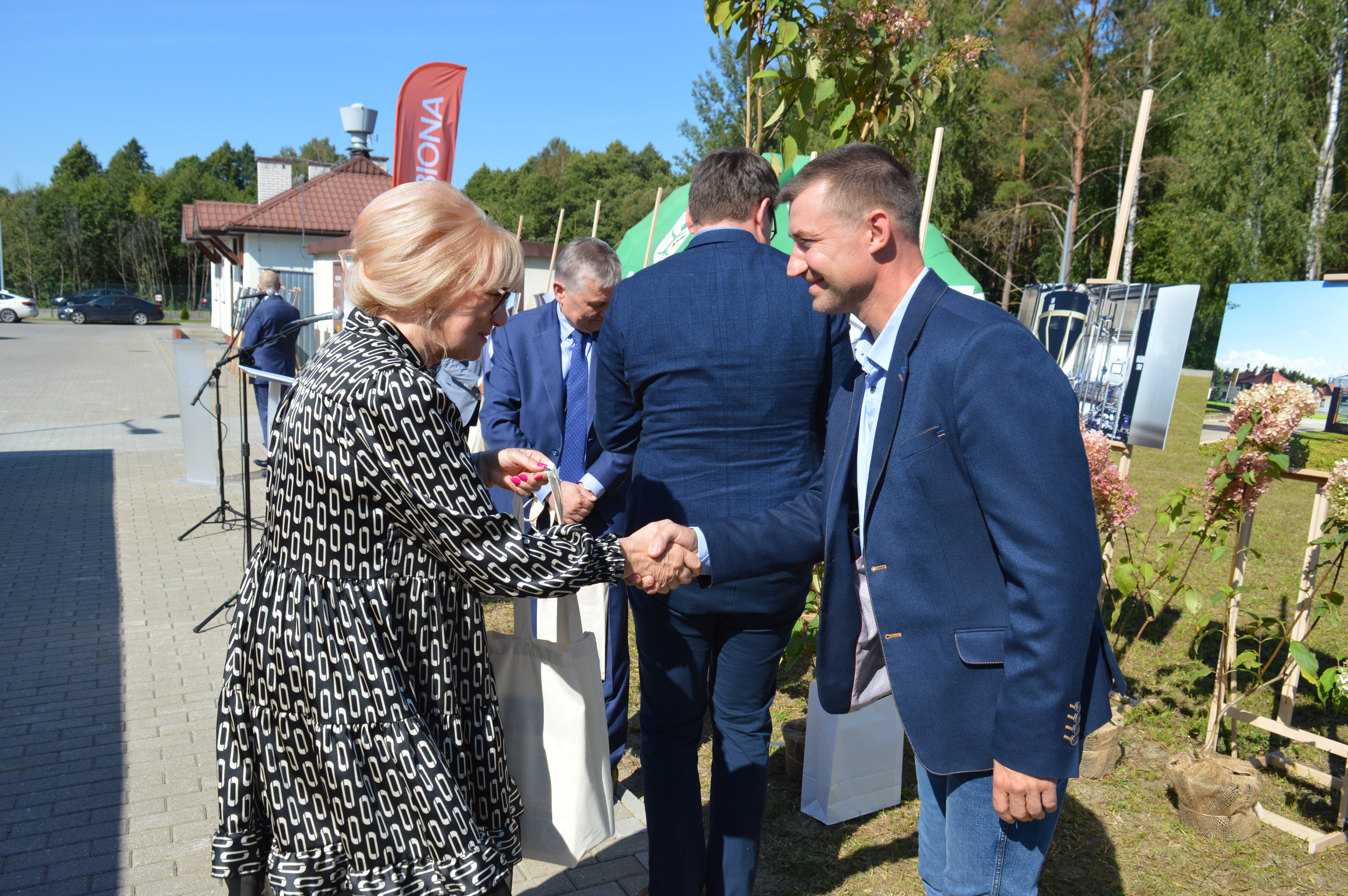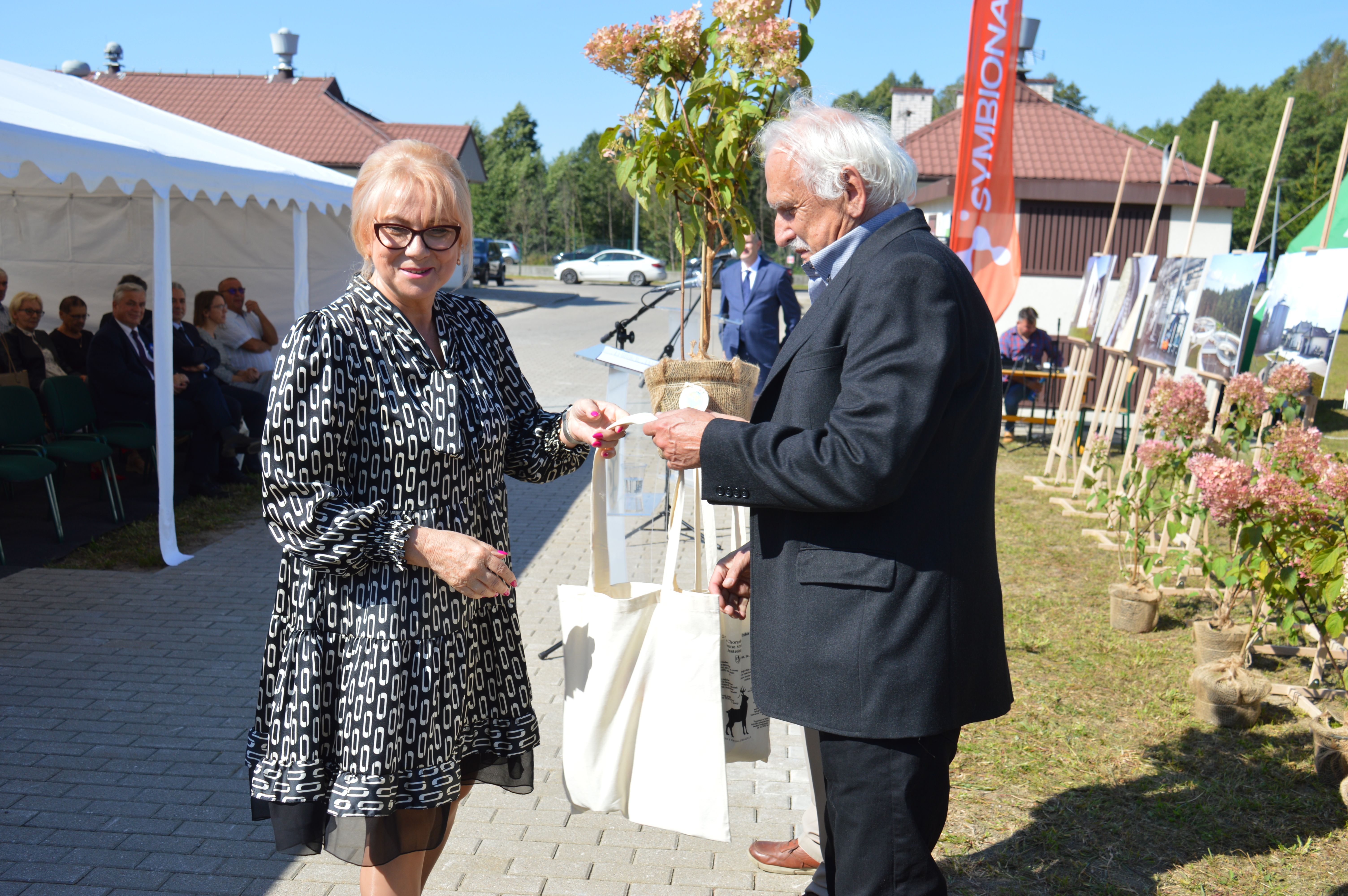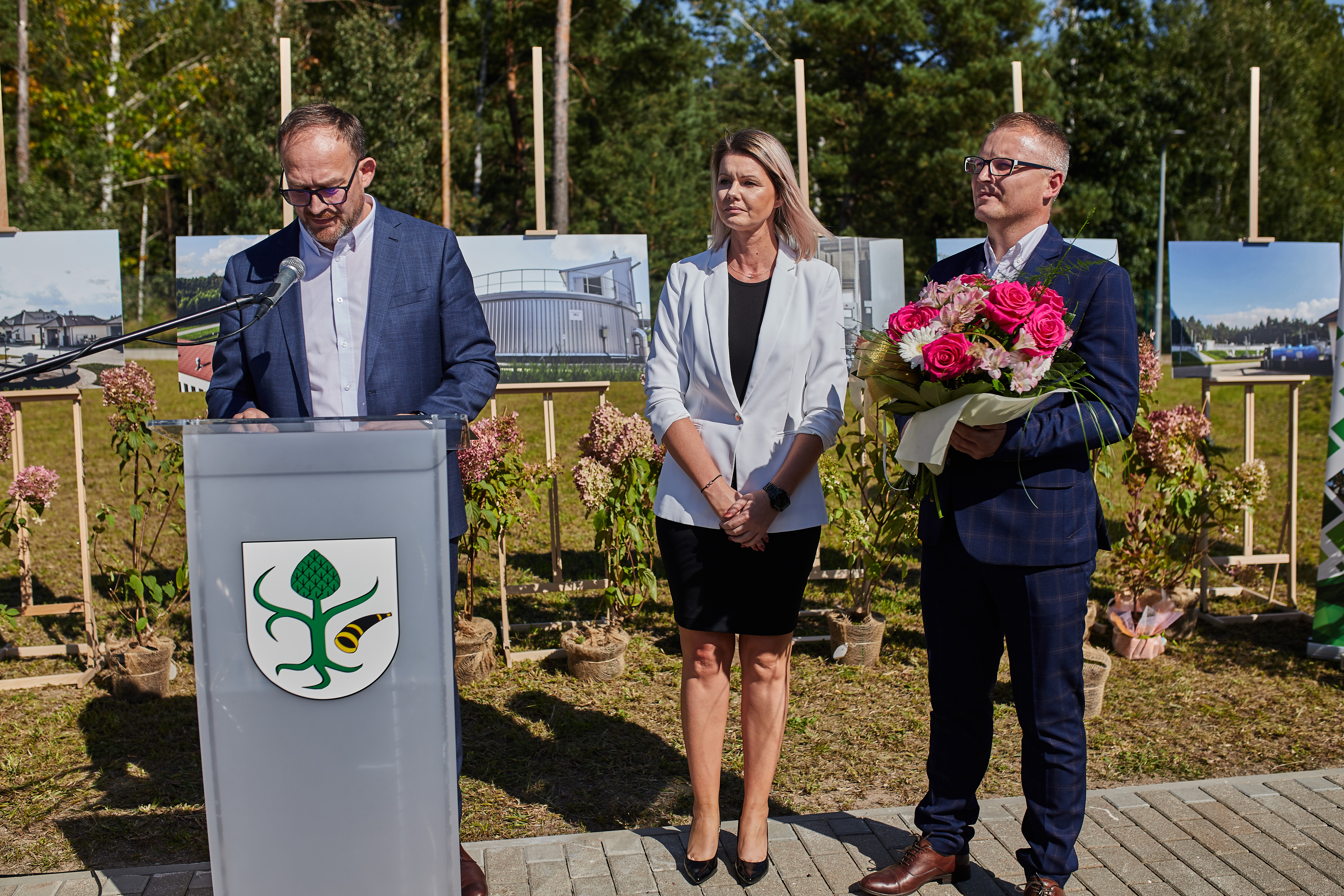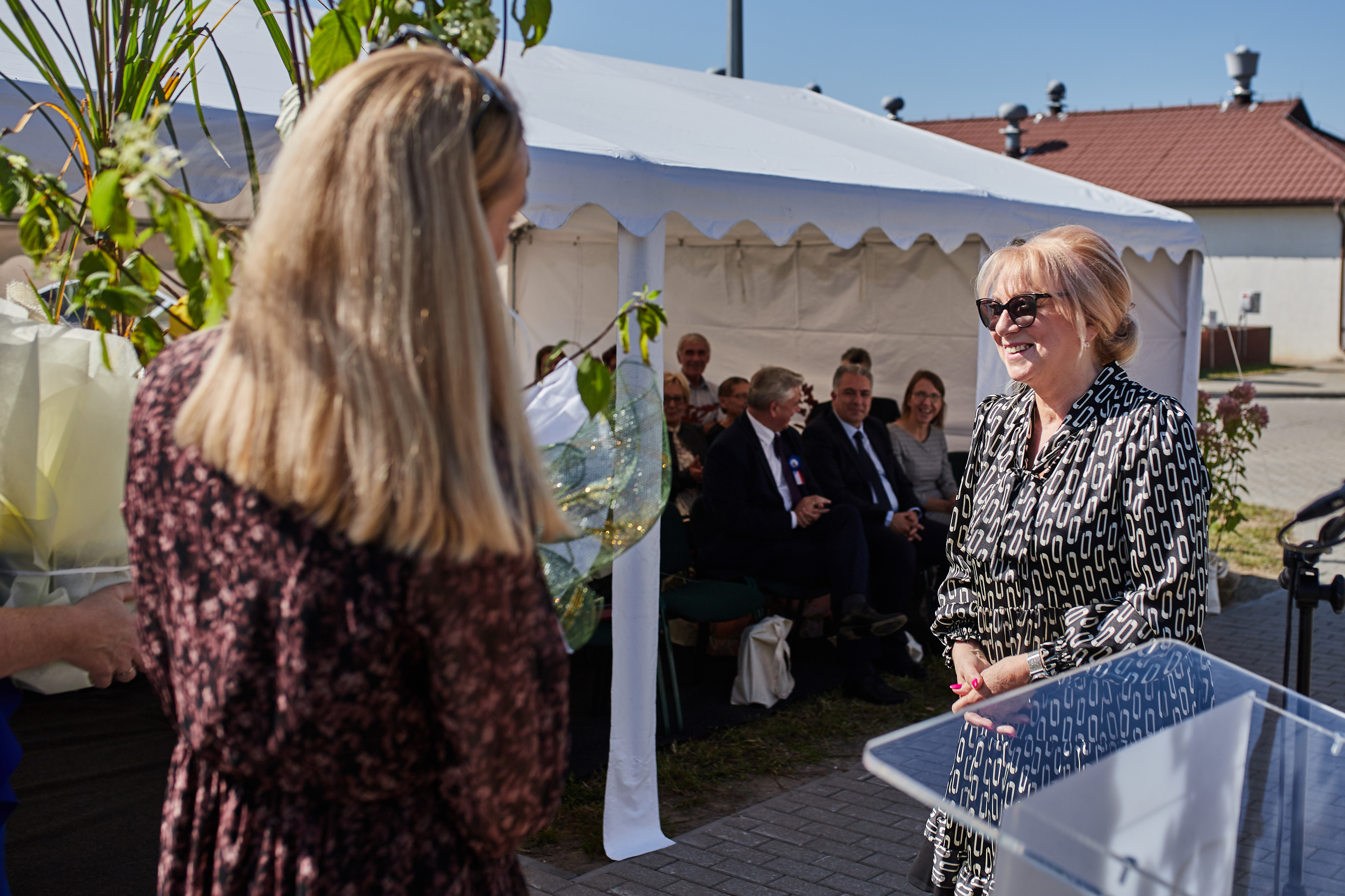 - Witam Państwa w imieniu własnym i Wykonawcy bardzo serdecznie, w tym uroczystym i bardzo ważnym dla naszej całej społeczności dniu - na terenie Przebudowanej i Rozbudowanej Miejskiej Oczyszczalni Ścieków w Chorzelach, w dniu, w którym nasz trud i wysiłek włożony w realizację tego niezwykle istotnego przedsięwzięcia zakończył się sukcesem. Obiekt ma pozwolenie na użytkowanie, pozwolenie wodnoprawne, spełnia wszelkie wymagania stawiane przez ochronę środowiska w Polsce, jak i Unię Europejską. Sukces ten nie byłby możliwy, gdyby nie pomoc i zaangażowanie wszystkich Państwa, których pragnę z całego serca powitać i podziękować – rozpoczęła swoje wystąpienie burmistrz Beata Szczepankowska, która w ciekawej konwencji, witając gości, przybliżała ich wkład w inwestycję i dziękowała wręczając wyjątkowe, ekologiczne upominki w postaci pięknych drzewek.