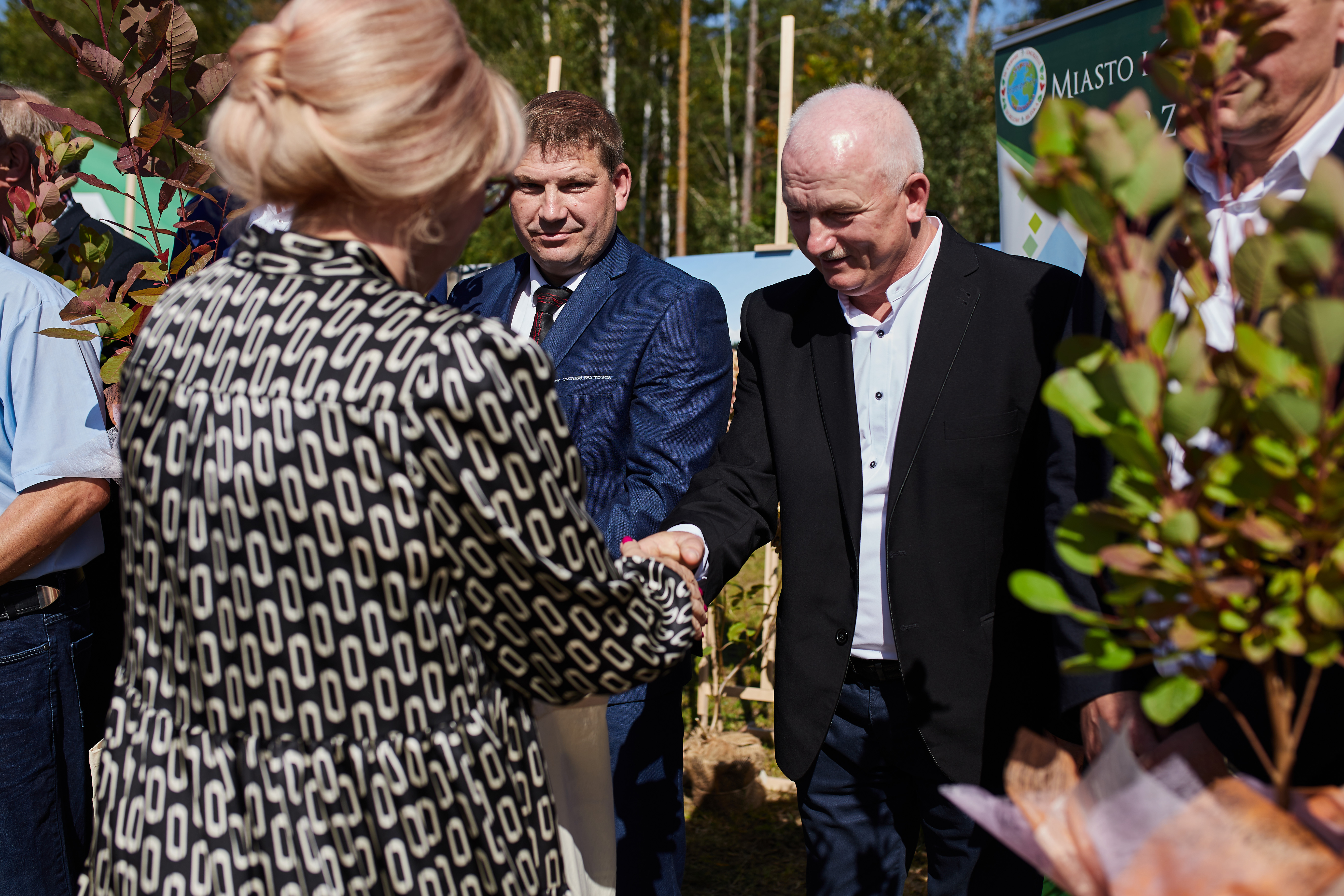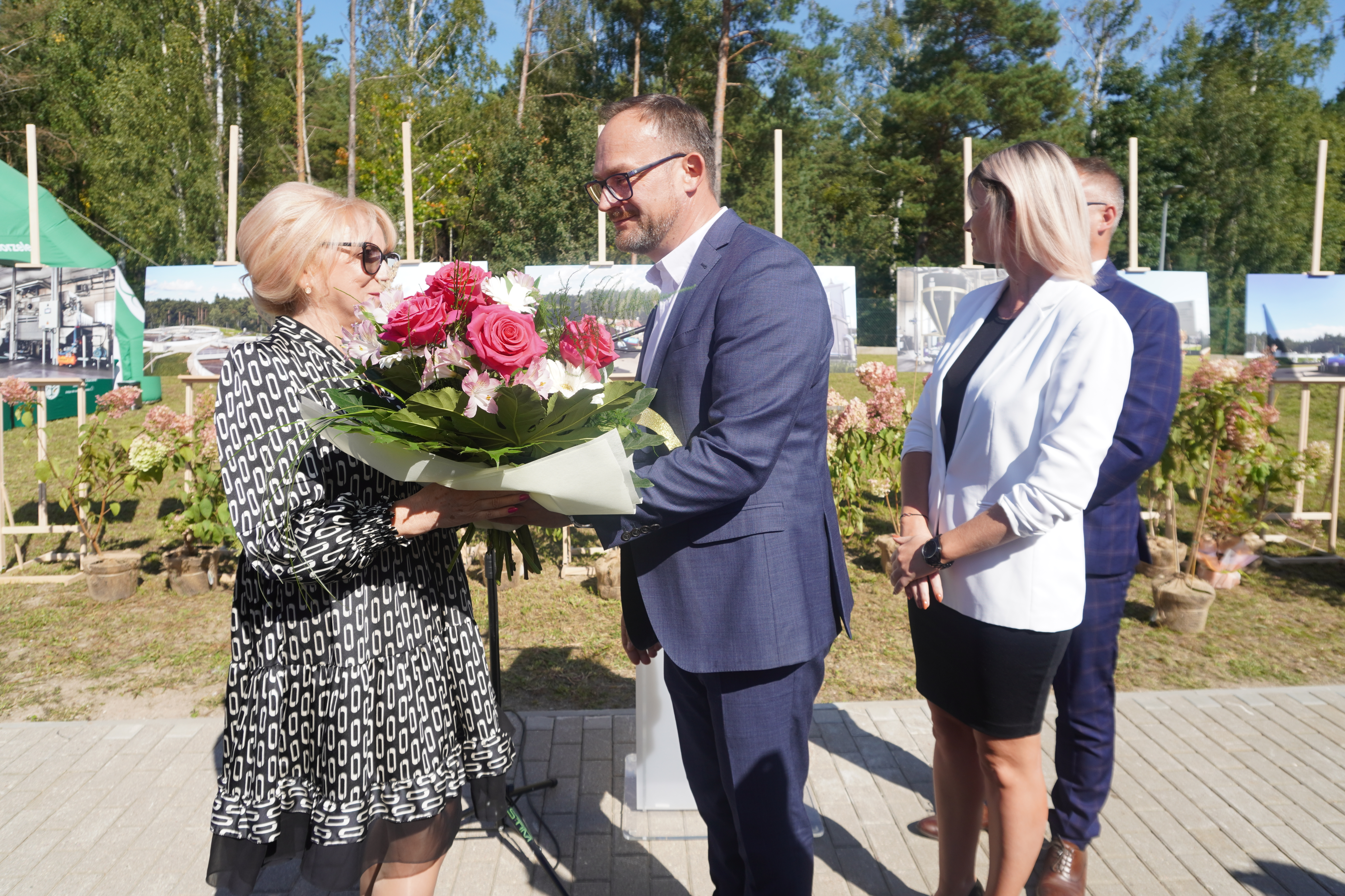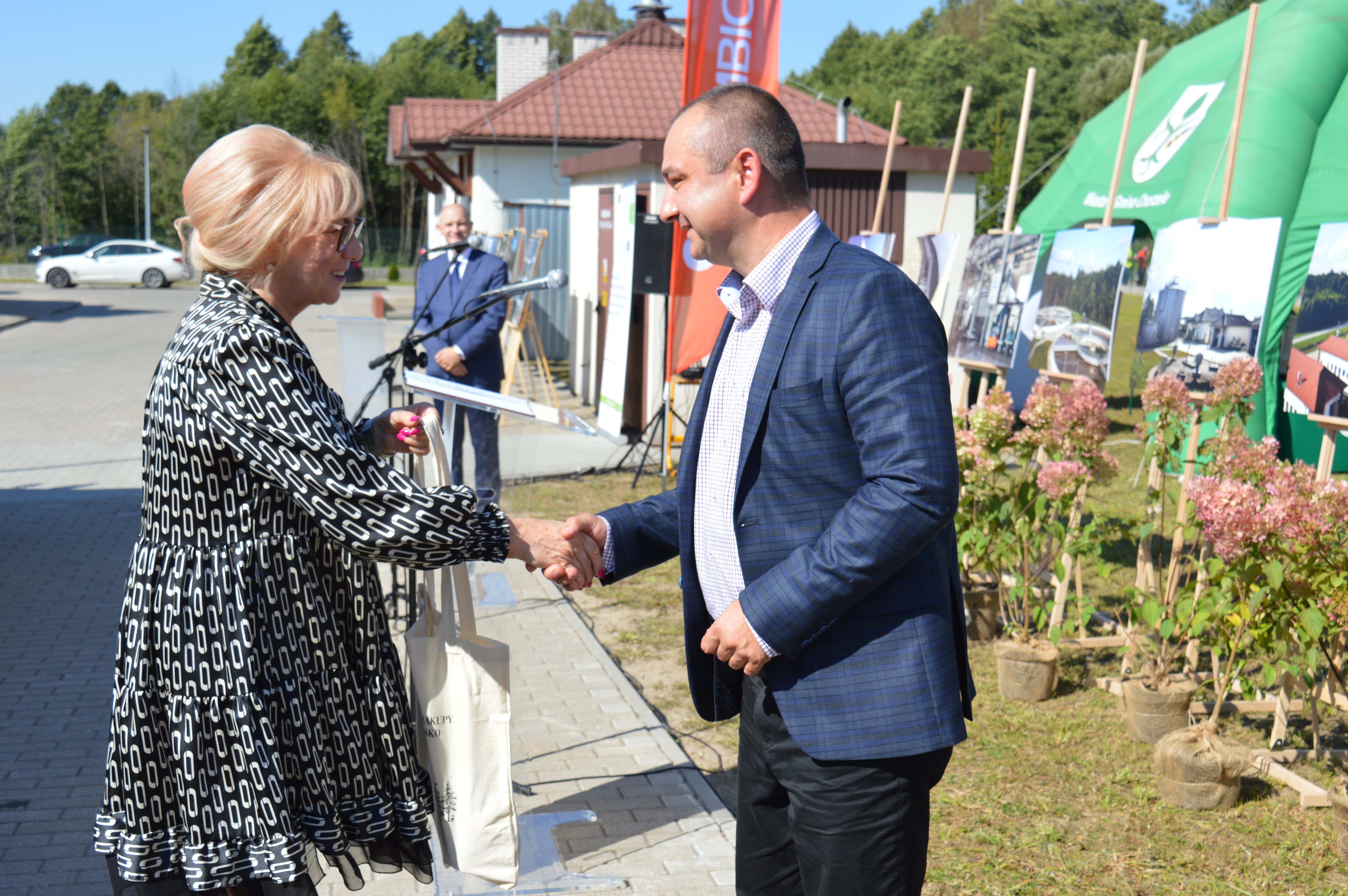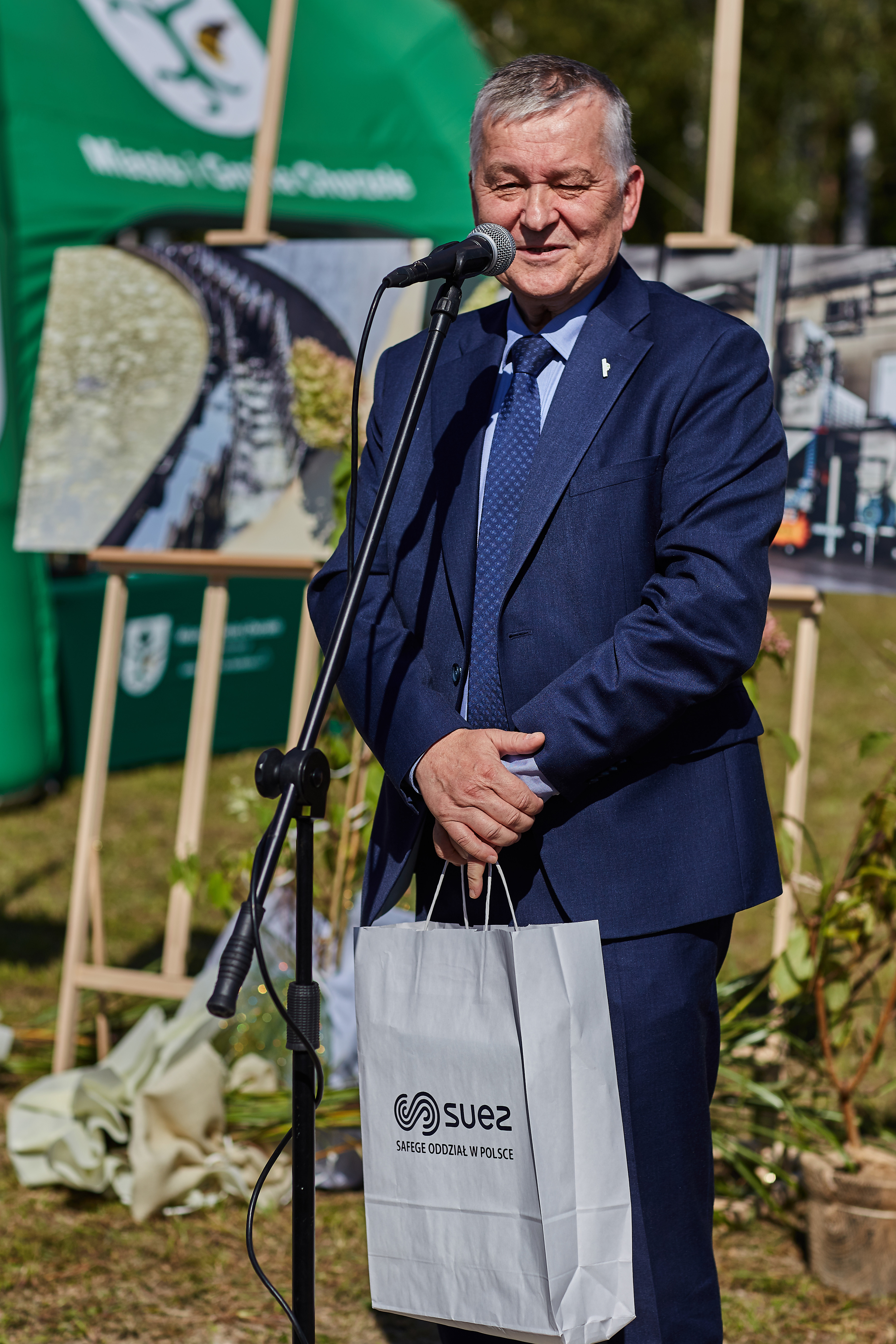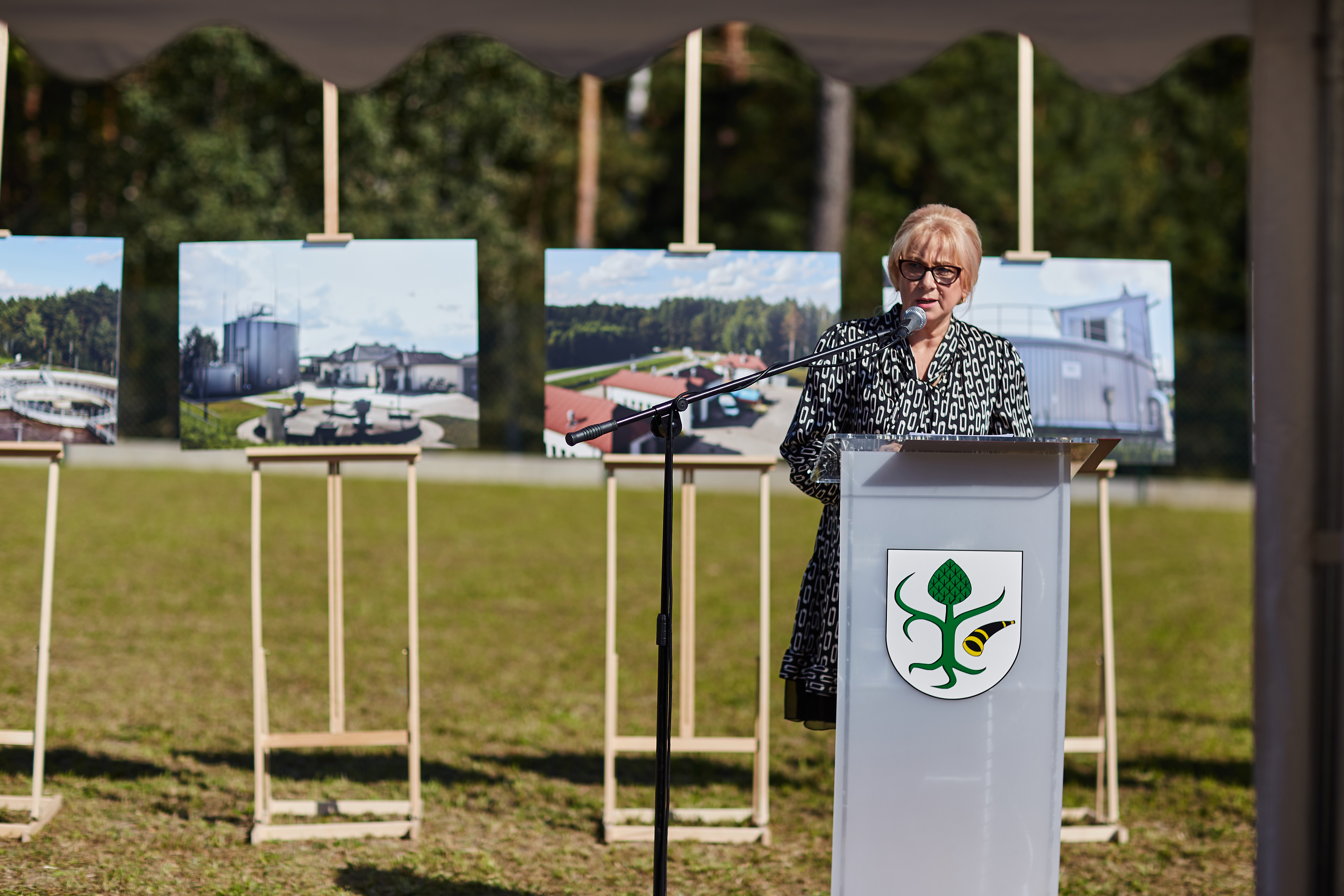 - Witam Państwa w imieniu własnym i Wykonawcy bardzo serdecznie, w tym uroczystym i bardzo ważnym dla naszej całej społeczności dniu - na terenie Przebudowanej i Rozbudowanej Miejskiej Oczyszczalni Ścieków w Chorzelach, w dniu, w którym nasz trud i wysiłek włożony w realizację tego niezwykle istotnego przedsięwzięcia zakończył się sukcesem. Obiekt ma pozwolenie na użytkowanie, pozwolenie wodnoprawne, spełnia wszelkie wymagania stawiane przez ochronę środowiska w Polsce, jak i Unię Europejską. Sukces ten nie byłby możliwy, gdyby nie pomoc i zaangażowanie wszystkich Państwa, których pragnę z całego serca powitać i podziękować – rozpoczęła swoje wystąpienie burmistrz Beata Szczepankowska, która w ciekawej konwencji, witając gości, przybliżała ich wkład w inwestycję i dziękowała wręczając wyjątkowe, ekologiczne upominki w postaci pięknych drzewek.