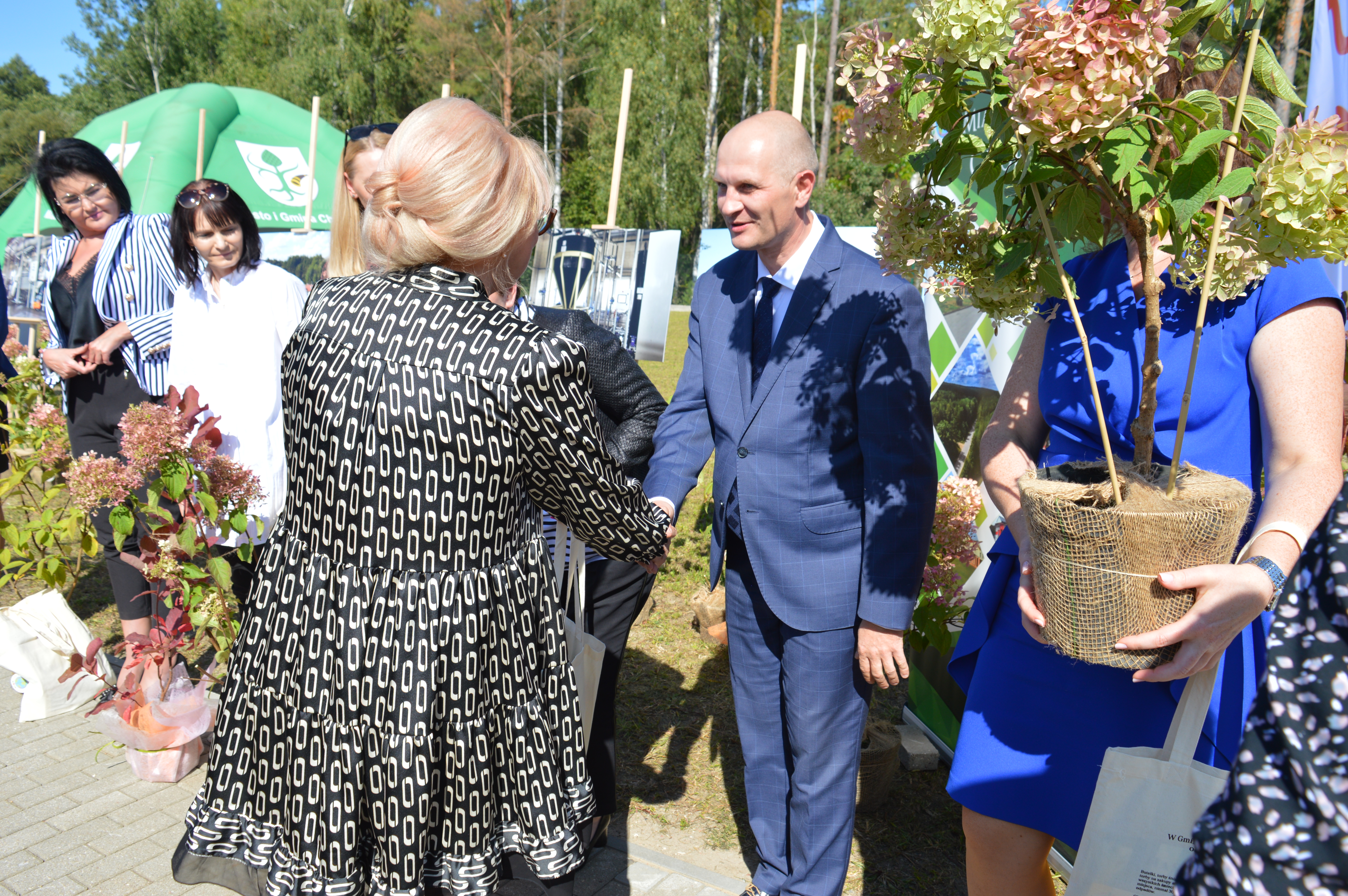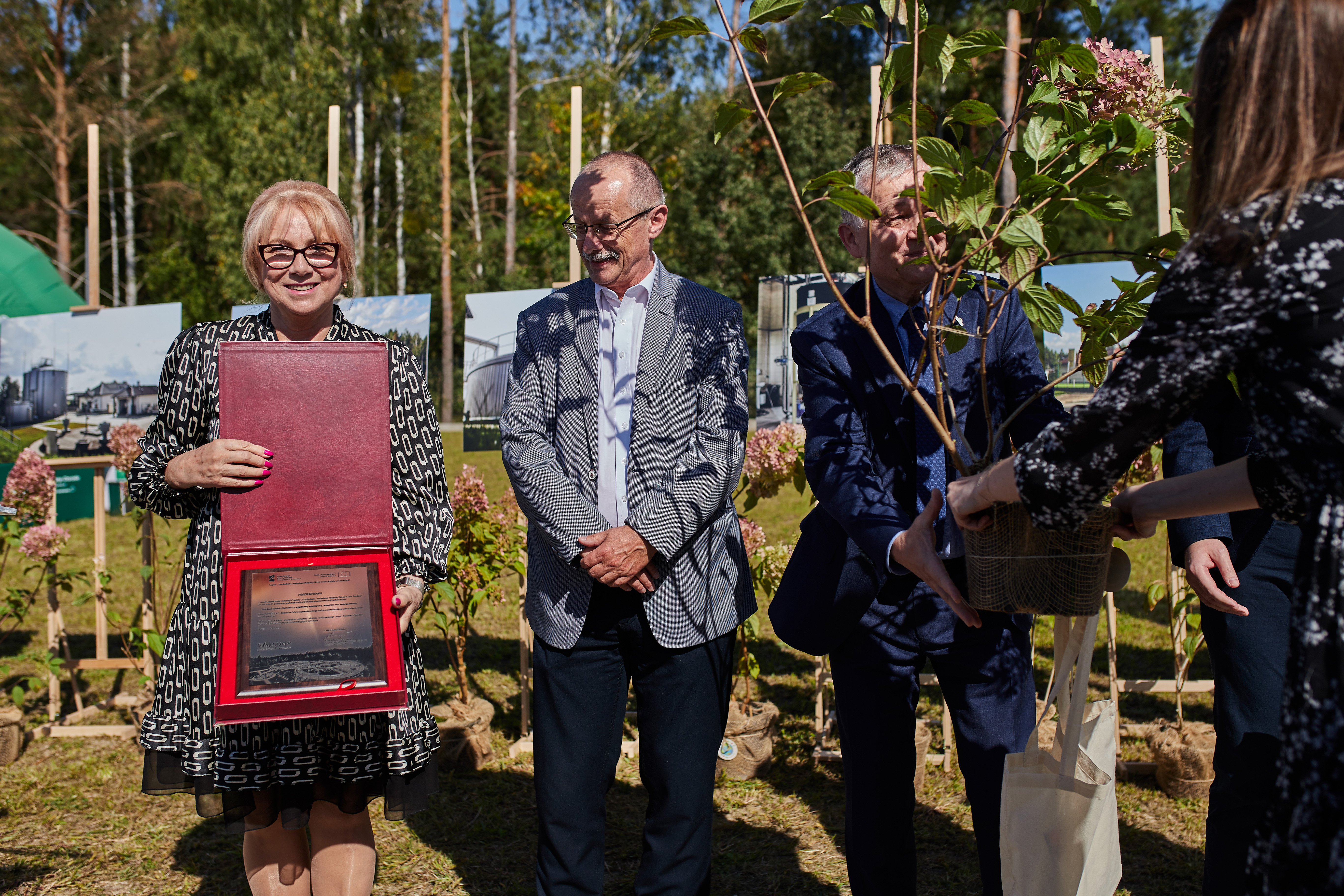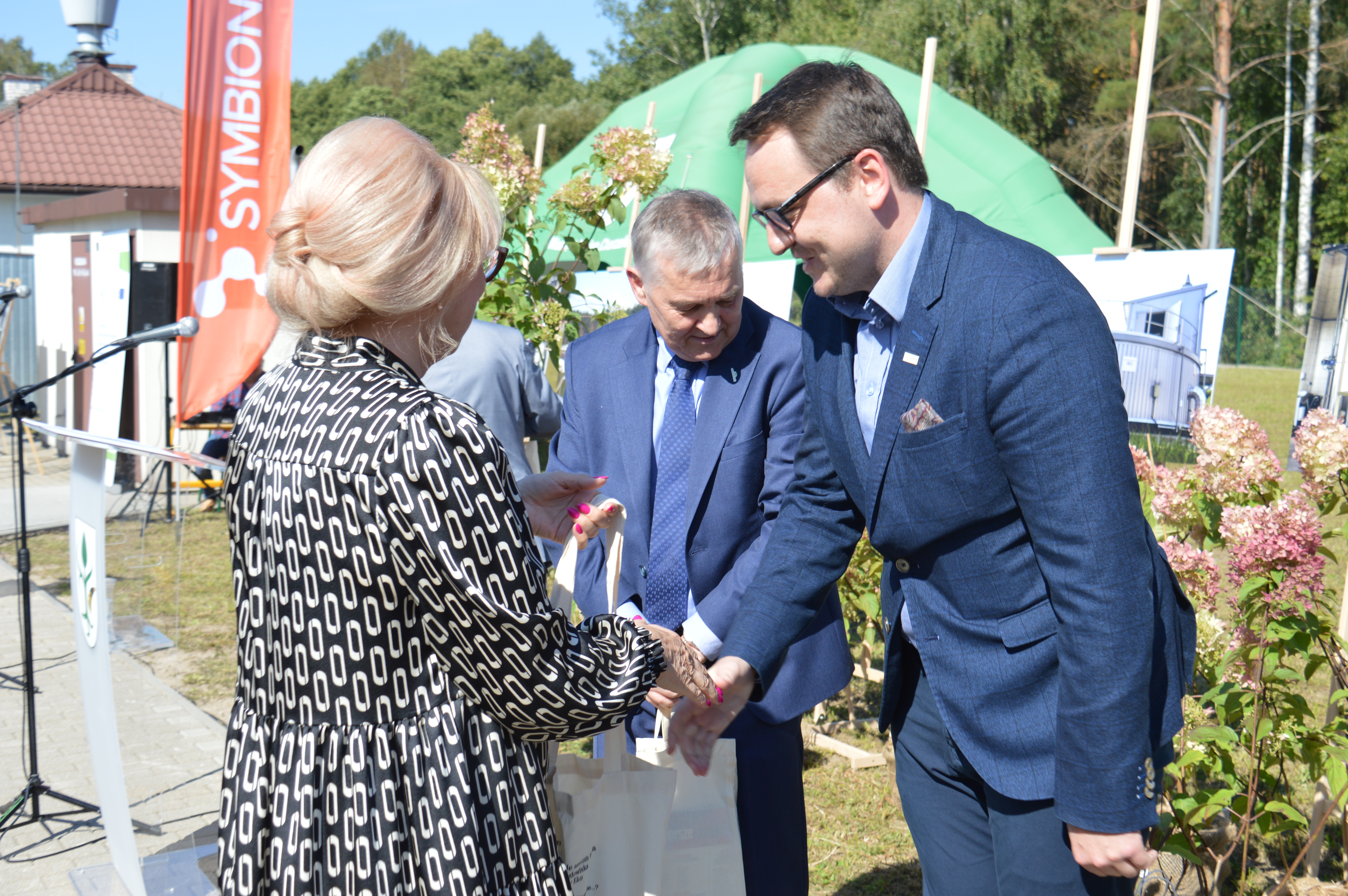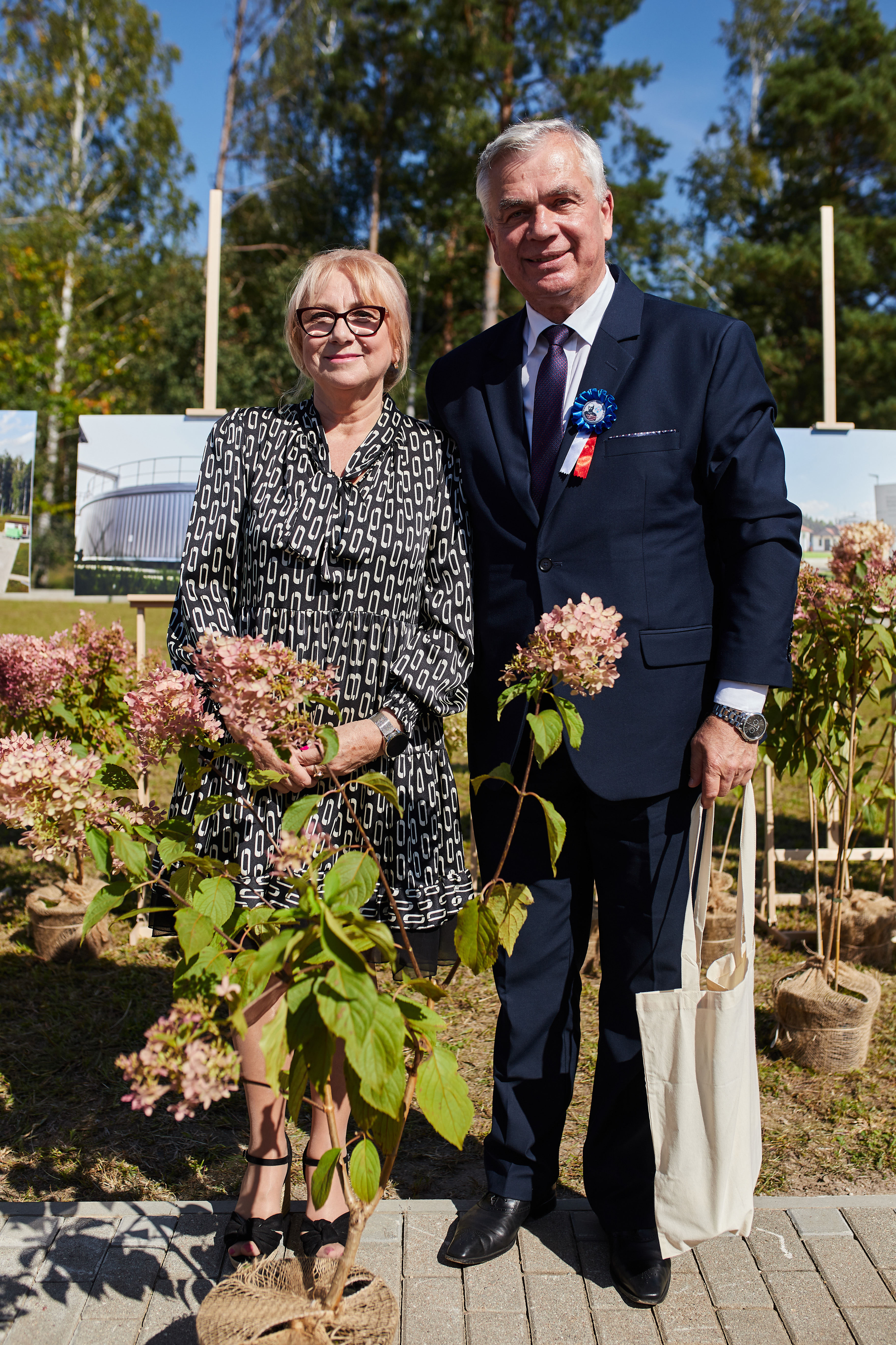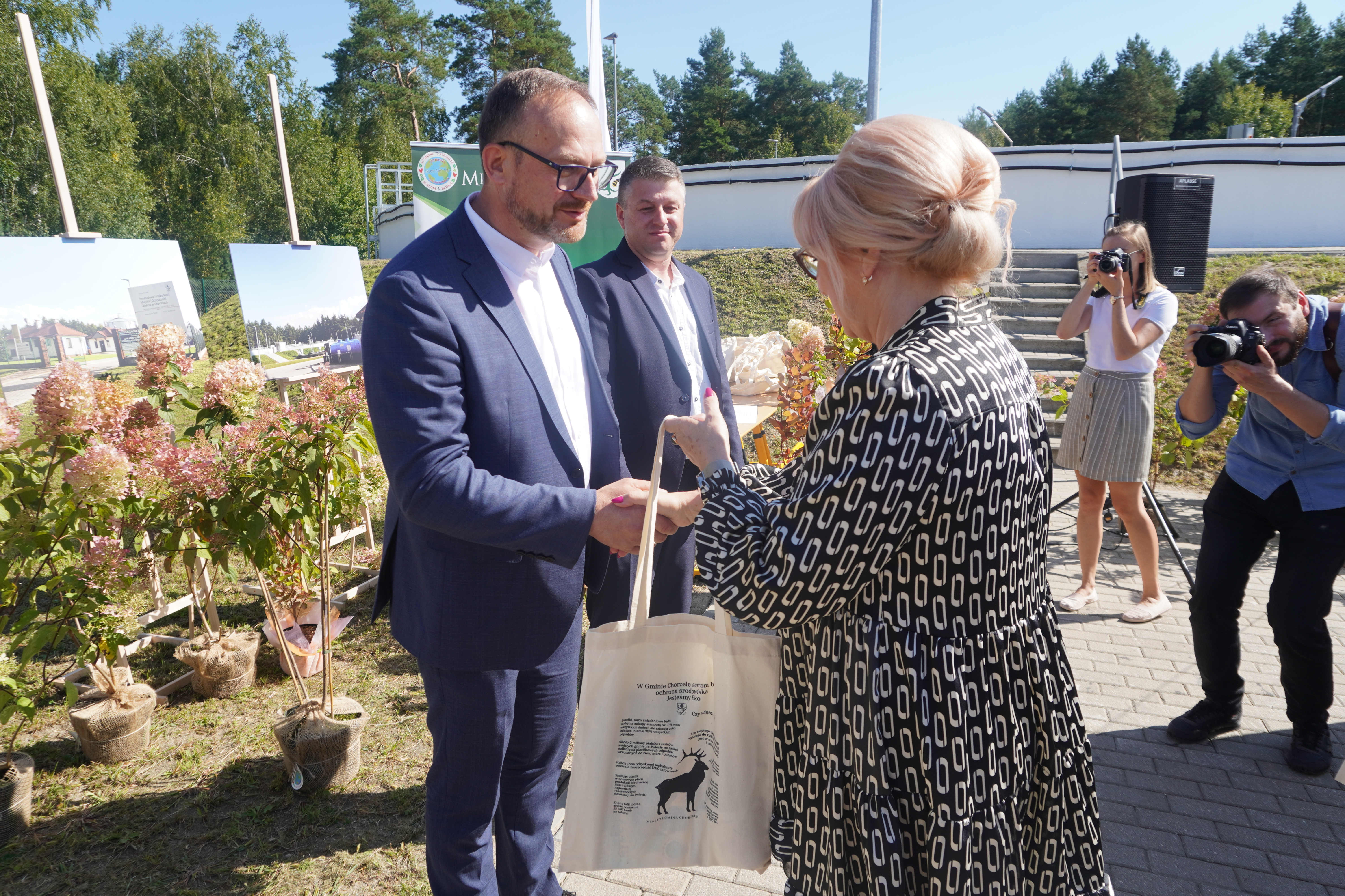- Witam Państwa w imieniu własnym i Wykonawcy bardzo serdecznie, w tym uroczystym i bardzo ważnym dla naszej całej społeczności dniu - na terenie Przebudowanej i Rozbudowanej Miejskiej Oczyszczalni Ścieków w Chorzelach, w dniu, w którym nasz trud i wysiłek włożony w realizację tego niezwykle istotnego przedsięwzięcia zakończył się sukcesem. Obiekt ma pozwolenie na użytkowanie, pozwolenie wodnoprawne, spełnia wszelkie wymagania stawiane przez ochronę środowiska w Polsce, jak i Unię Europejską. Sukces ten nie byłby możliwy, gdyby nie pomoc i zaangażowanie wszystkich Państwa, których pragnę z całego serca powitać i podziękować – rozpoczęła swoje wystąpienie burmistrz Beata Szczepankowska, która w ciekawej konwencji, witając gości, przybliżała ich wkład w inwestycję i dziękowała wręczając wyjątkowe, ekologiczne upominki w postaci pięknych drzewek.