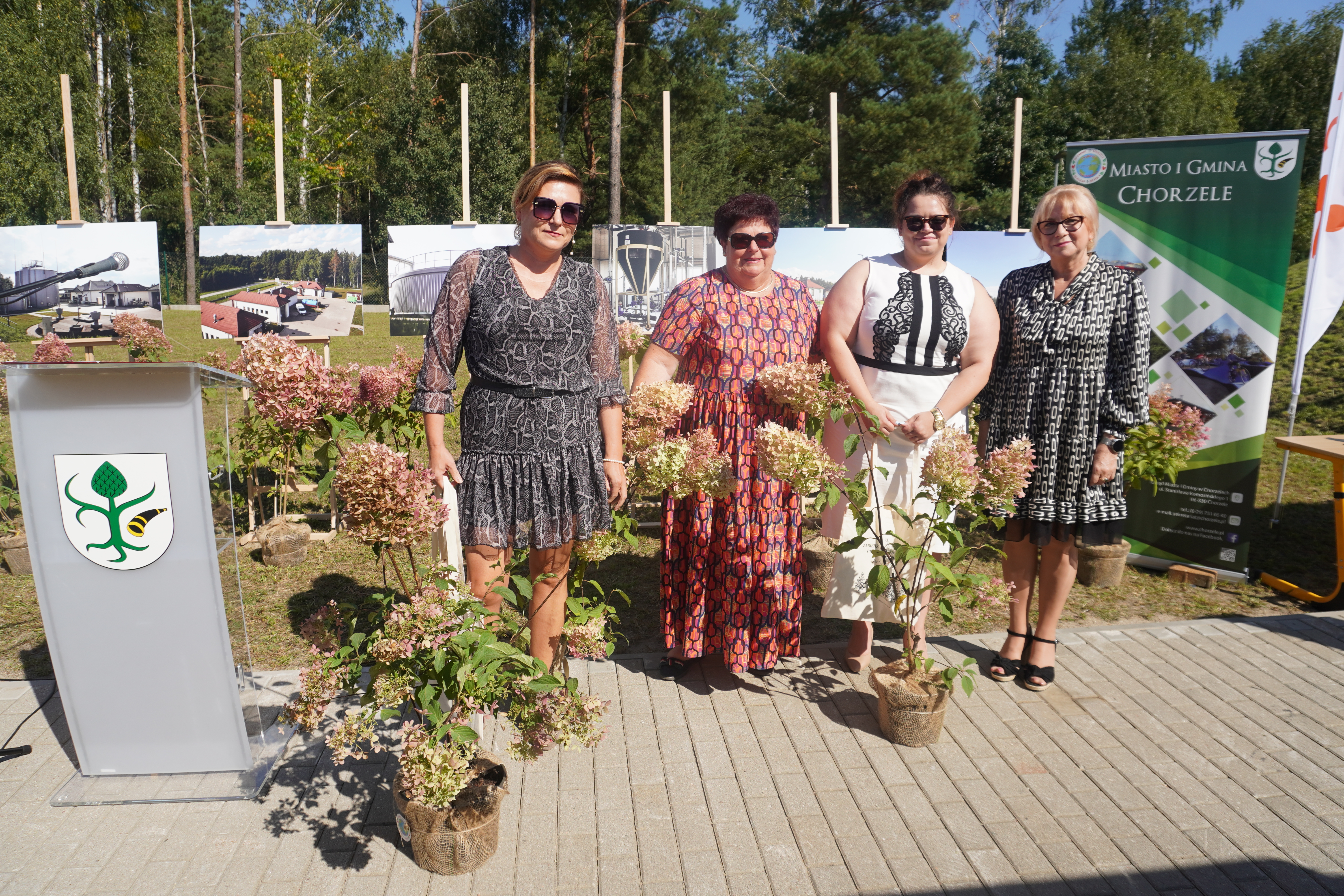 Burmistrz Beata Szczepankowska szczególnie podziękowała marszałkowi województwa Adamowi Struzikowi, przedstawicielom Narodowego Funduszu Ochrony Środowiska i Gospodarki Wodnej, wykonawcy zadania firmie Symbiona S.A. z Warszawy, Projektantom Oczyszczalni, firmie Safage Region Centralny i Północny nadzorującej projekt oraz przedstawicielom dwóch firm mleczarskich z gminy Chorzele, Spółdzielni Mleczarskiej Mazowsze oraz Bel Polska Sp. z o.o.. Słowa wdzięczności popłynęły również do przedstawicieli Instytutu Zrównoważonego Rozwoju Sp. z o.o. oraz Powiatowego Inspektora Budowlanego. Z rąk burmistrz szczególne podziękowania otrzymali Zenon Szczepankowski – pierwszy Starosta Powiatu Przasnyskiego, obecnie radny rady powiatu przasnyskiego, Radni Rady Miejskiej w Chorzelach oraz Radni poprzedniej kadencji. Słowa podziękowania trafiły również do kierownictwa i pracowników Urzędu Miasta i Gminy Chorzele oraz Zakładu Gospodarki Komunalnej i Mieszkaniowej w Chorzelach.