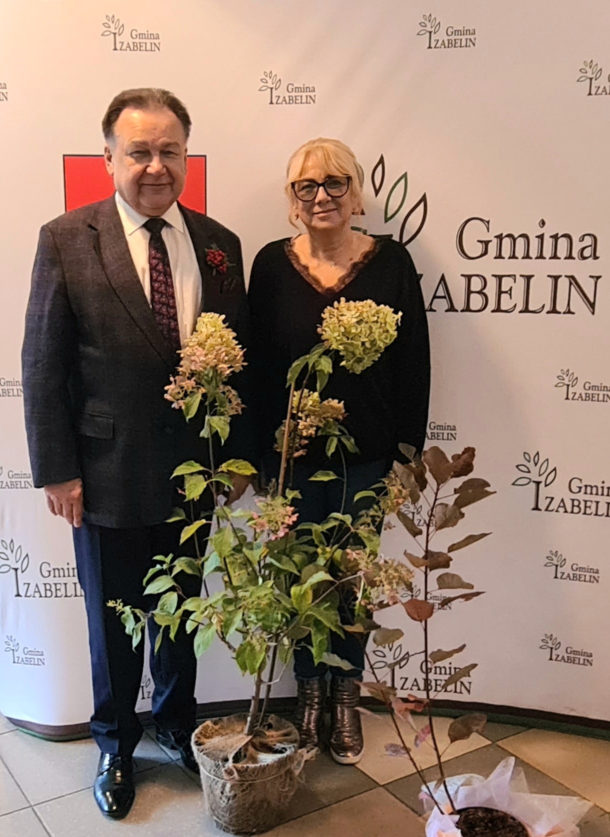Burmistrz wręczyła panu marszałkowi ekologiczne upominki w postaci pięknych drzewek sygnowanych logiem "W Gminie Chorzele sercom bliska ochrona środowiska".