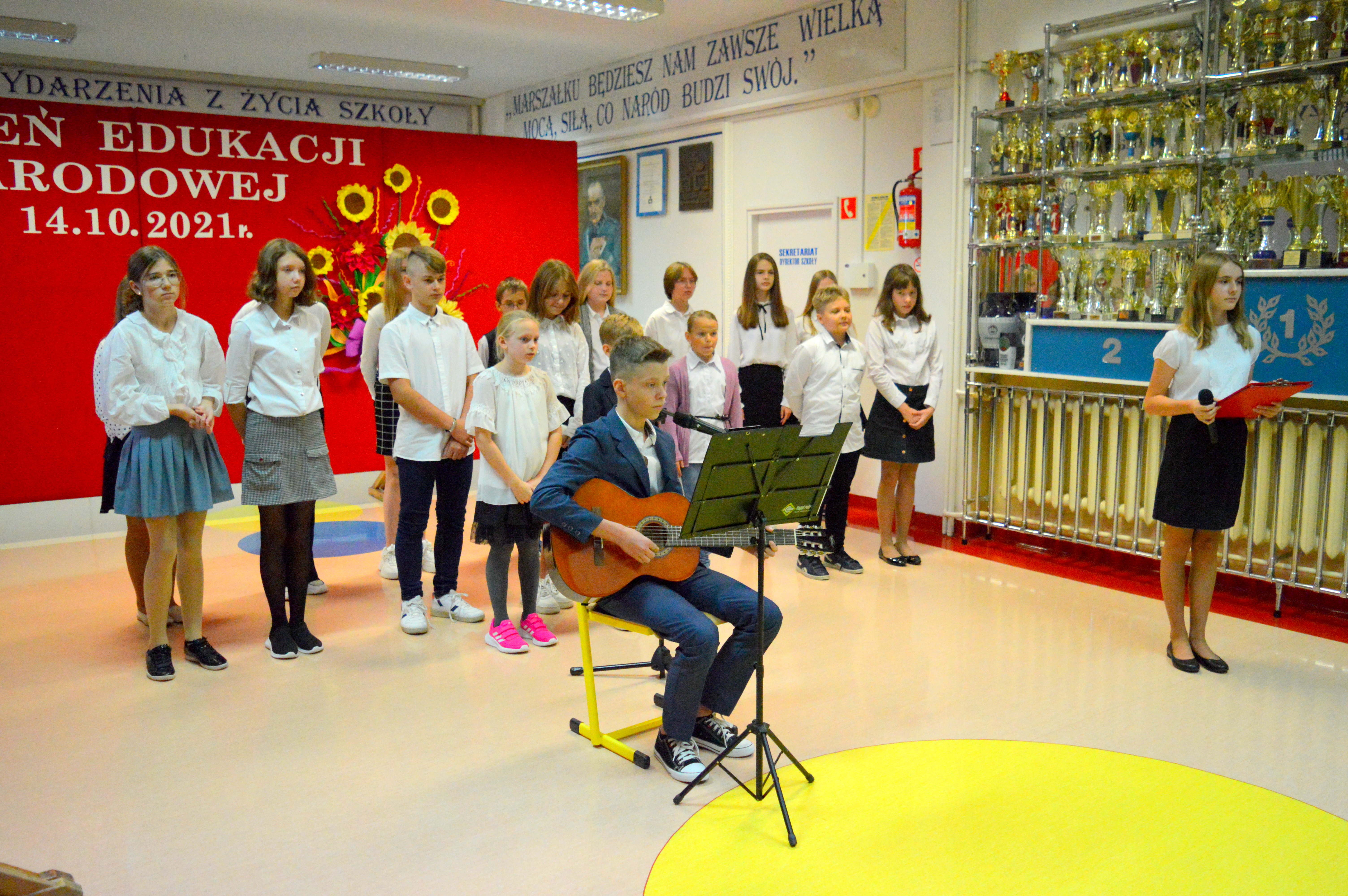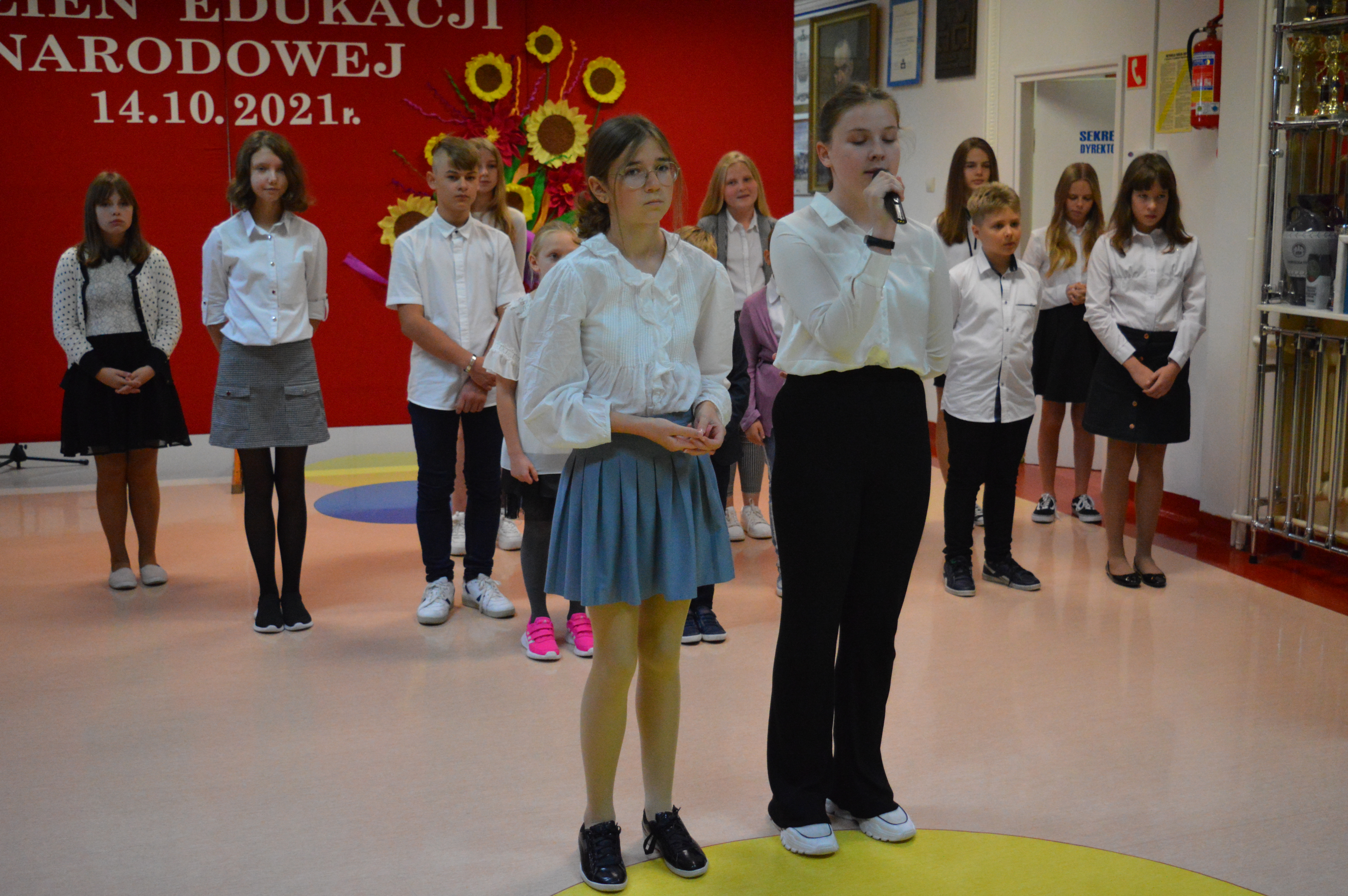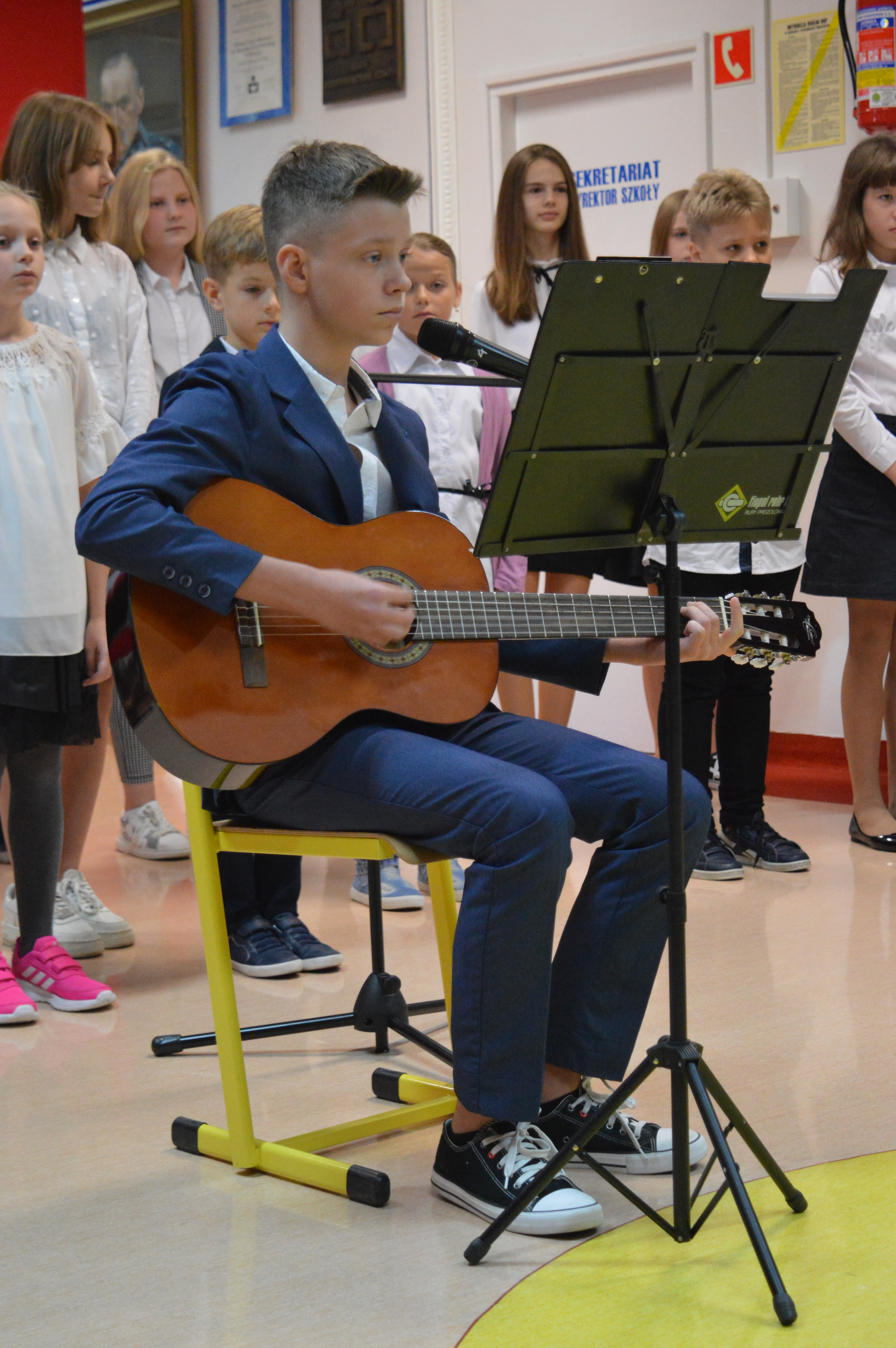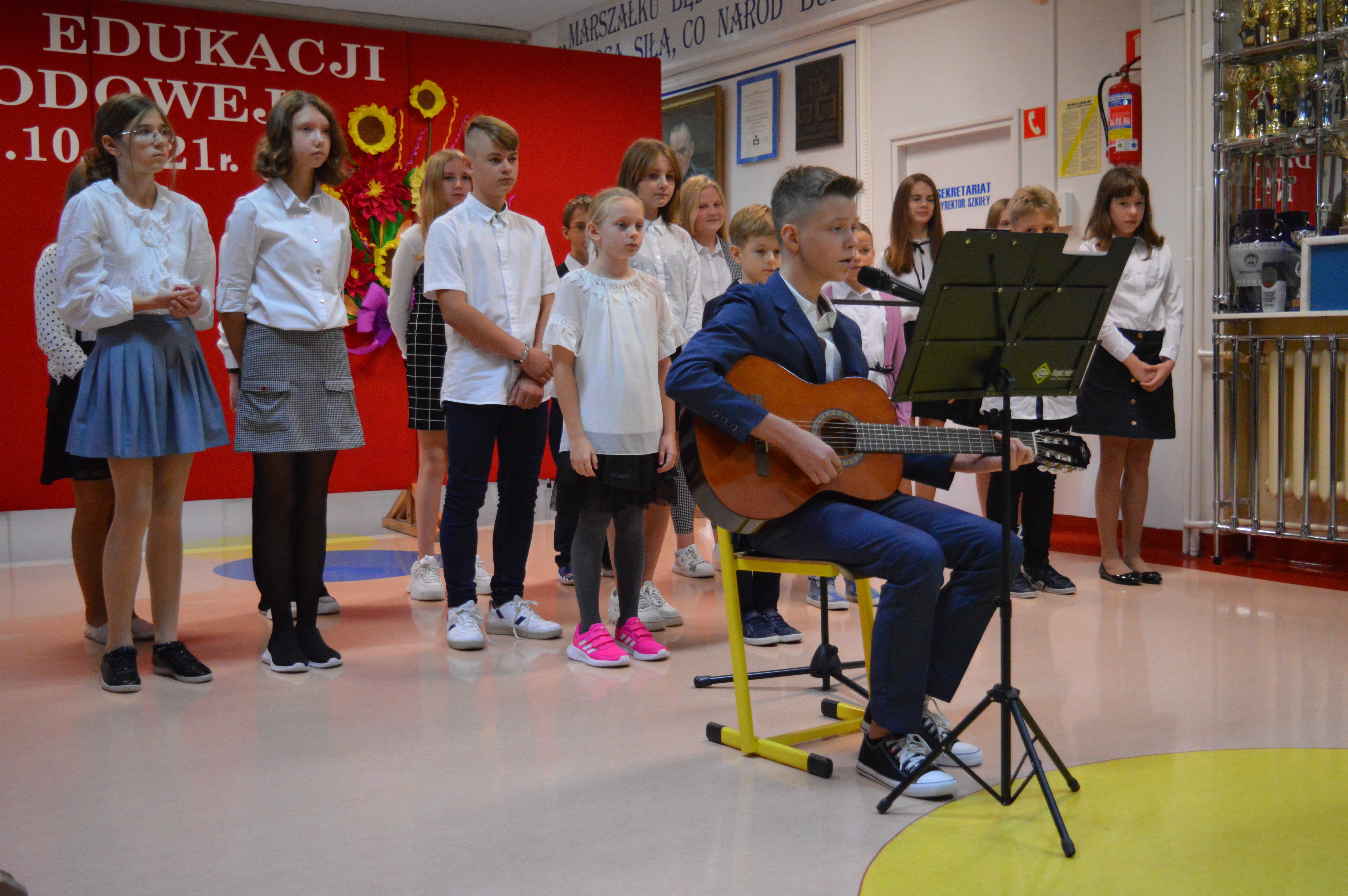 Po takim wstępie odbył się apel, który dopełniła wyjątkowa część artystyczna - koncert życzeń skierowany do nauczycieli oraz pracowników szkoły. Podczas pięknej akademii uczniowie dziękując nauczycielom zaprezentowali swoje wspaniałe umiejętności, uświetniając występ cudownym śpiewem, grą na instrumentach oraz recytacją swoich kwestii i wierszy.