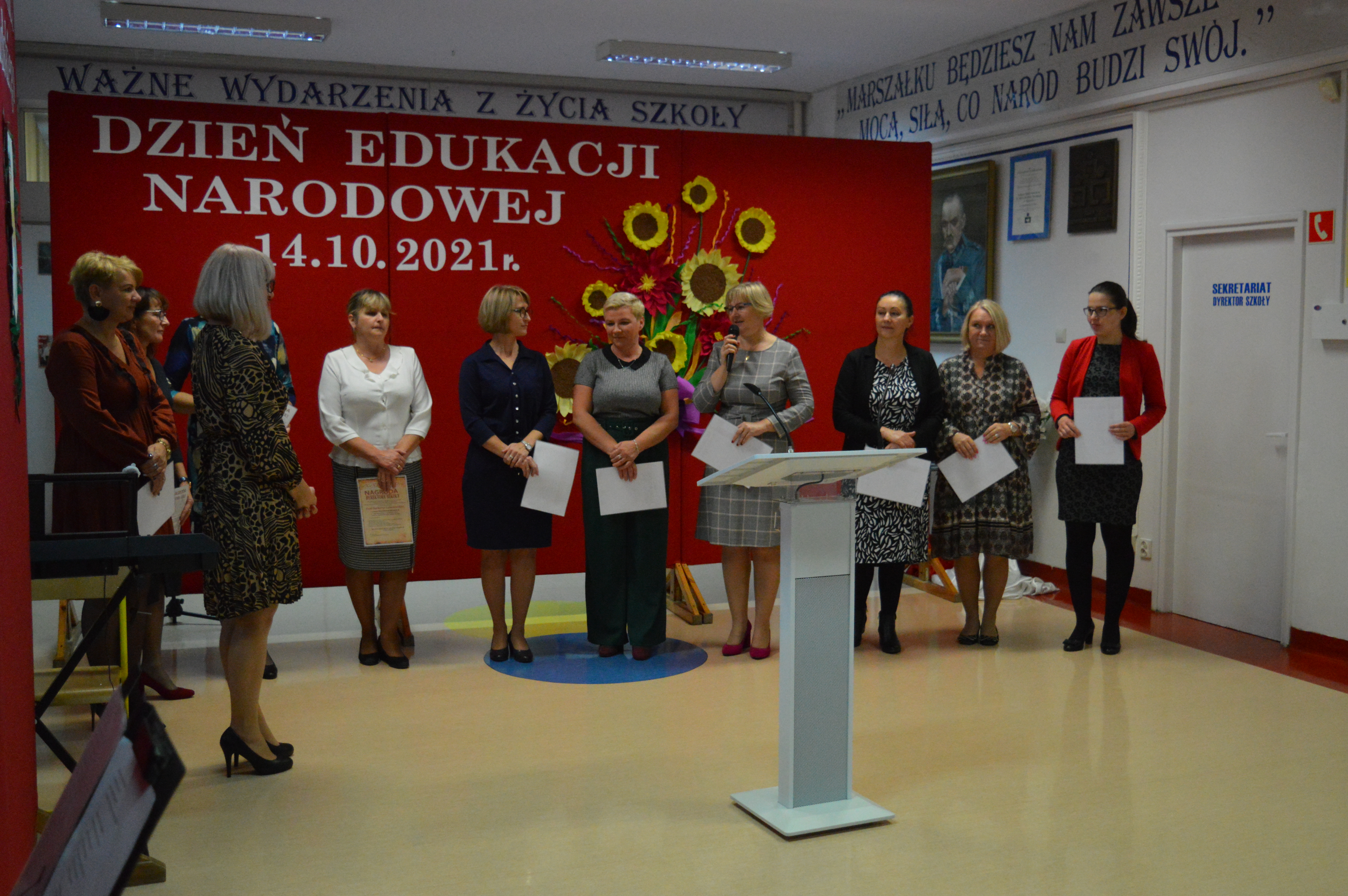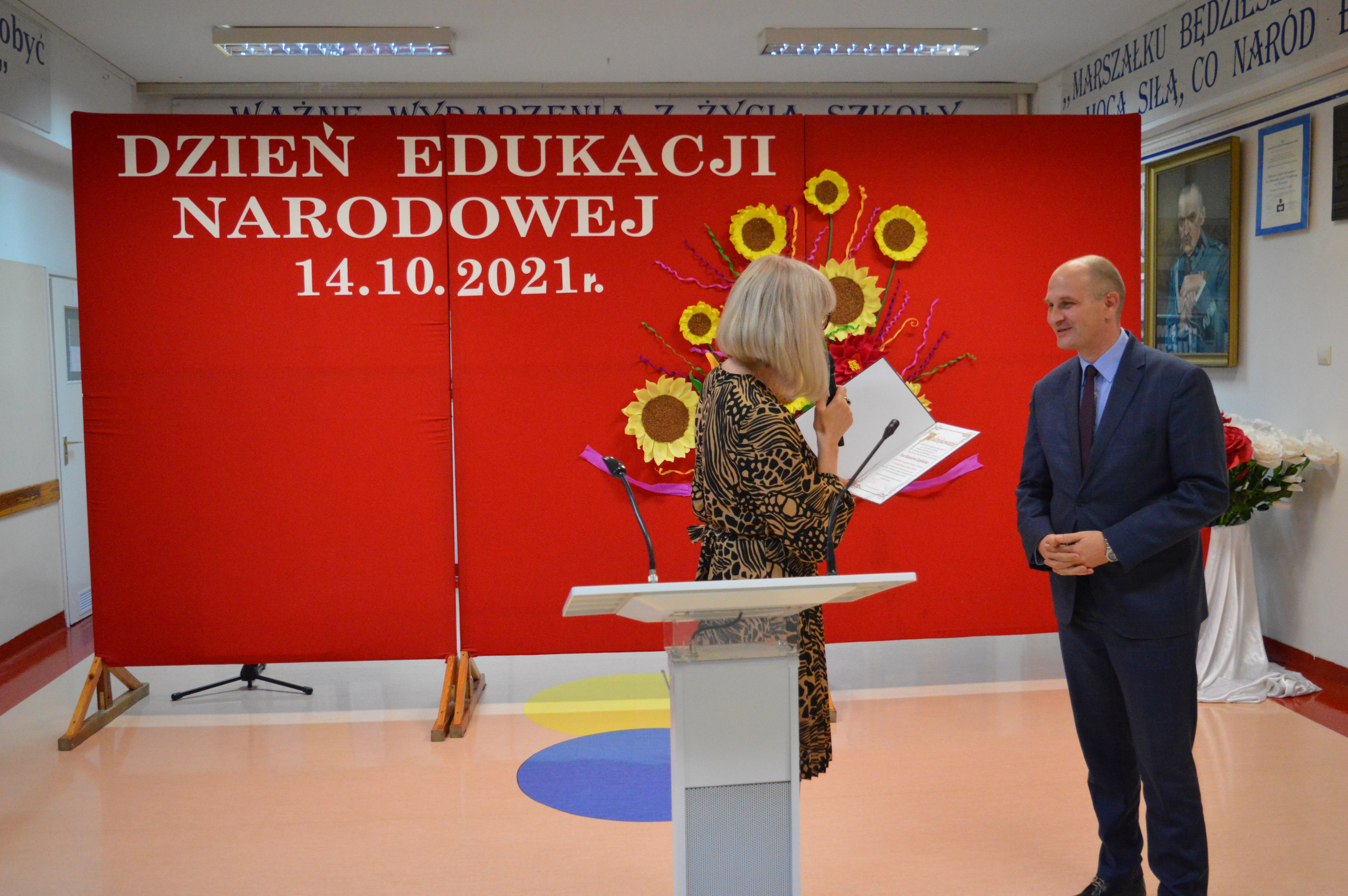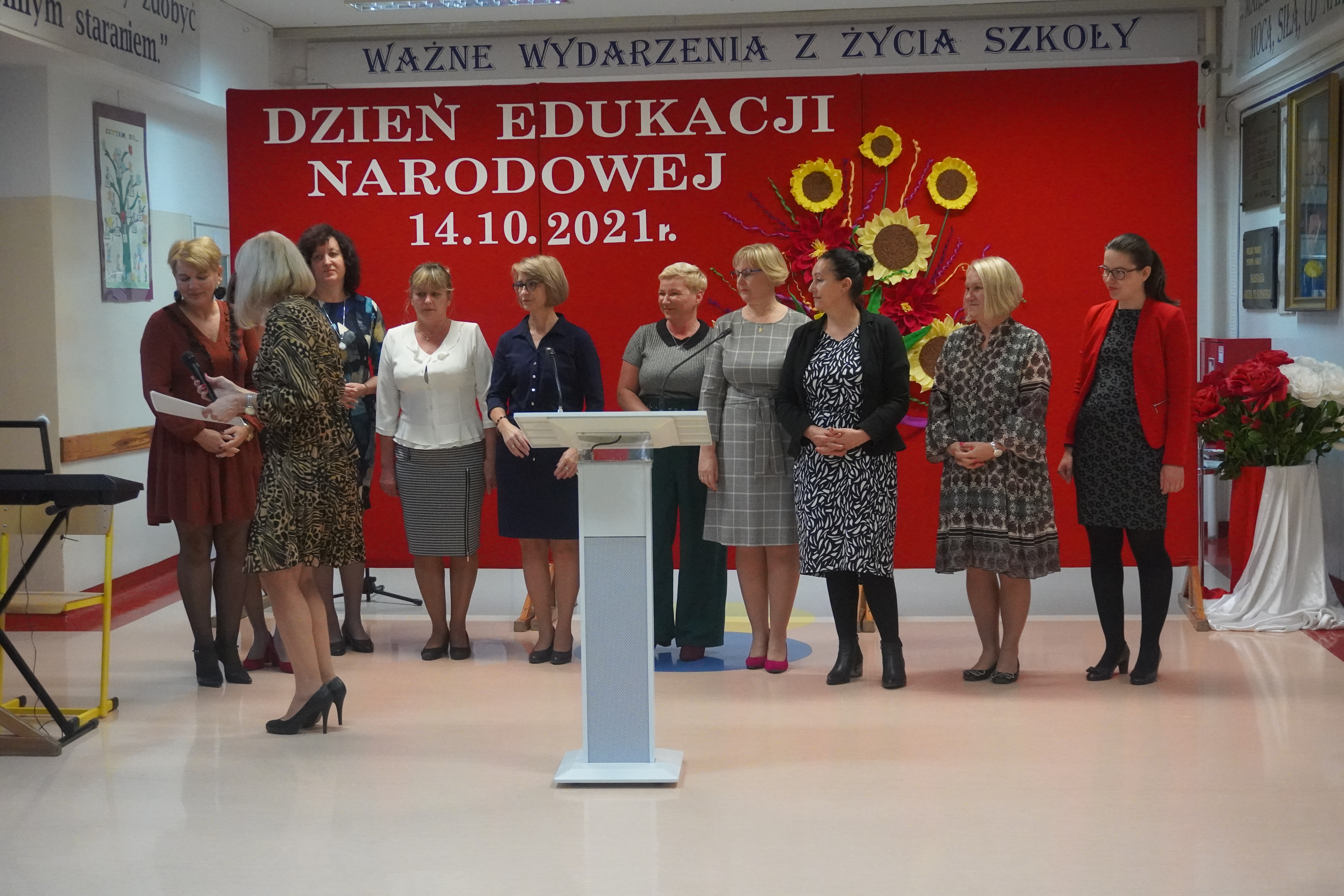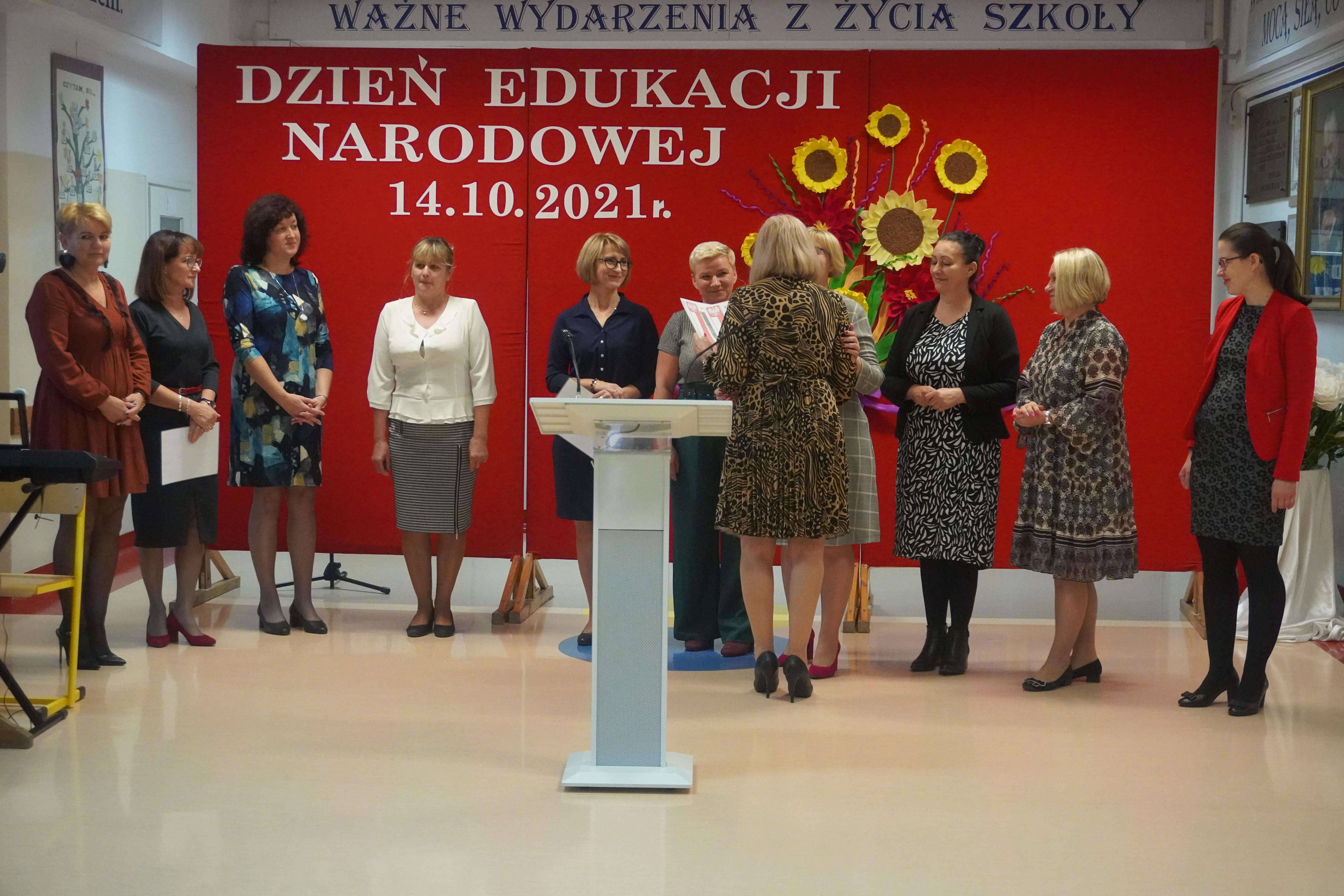 P o. dyrektora szkoły Pani Anna Ossowska powitała przybyłych gości, pracowników szkoły oraz uczniów i rodziców. Do nauczycieli, pracowników administracji i obsługi skierowała serdeczne życzenia z okazji ich święta, pogratulowała osiągnięć i wręczyła nagrody.