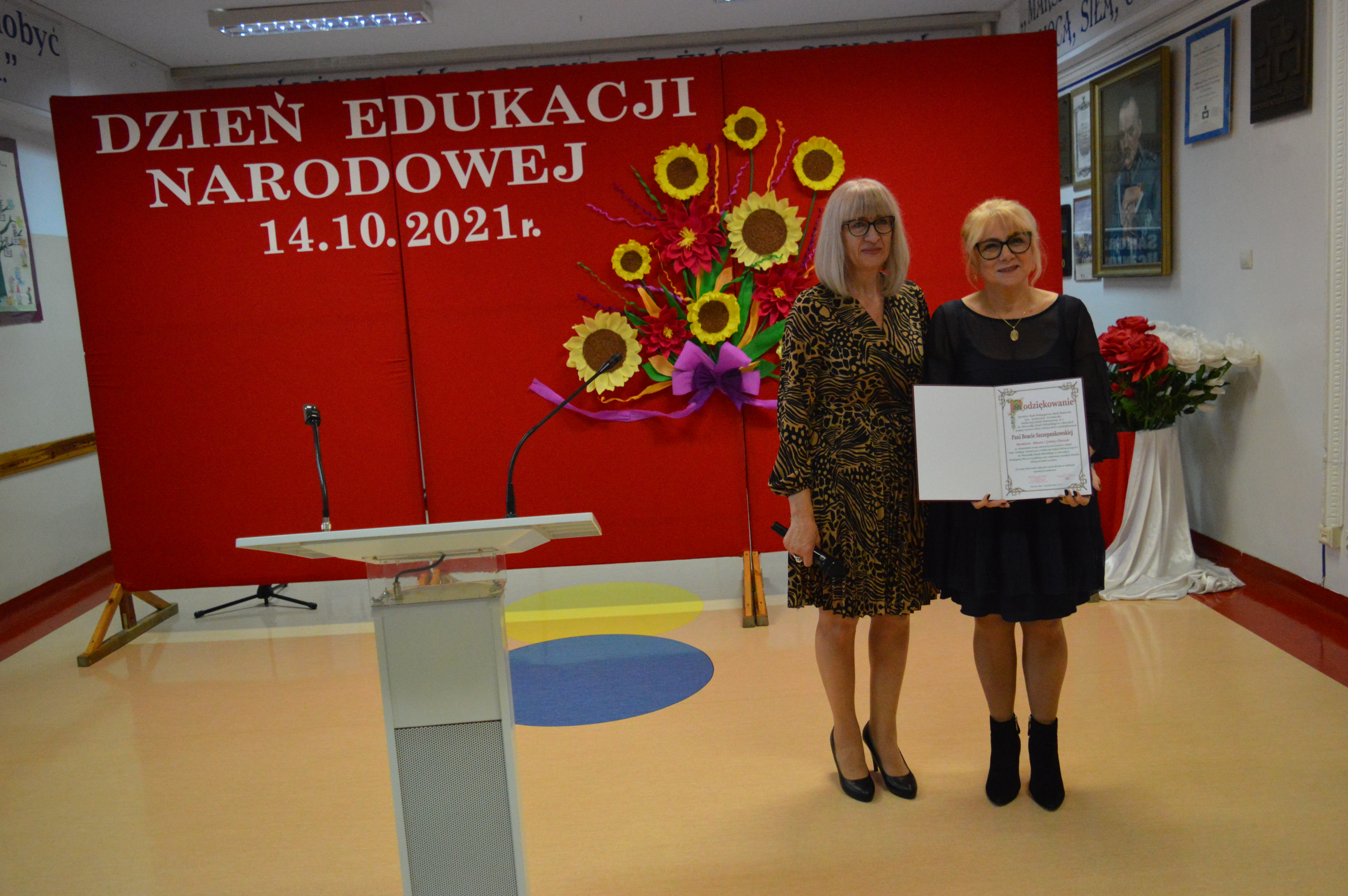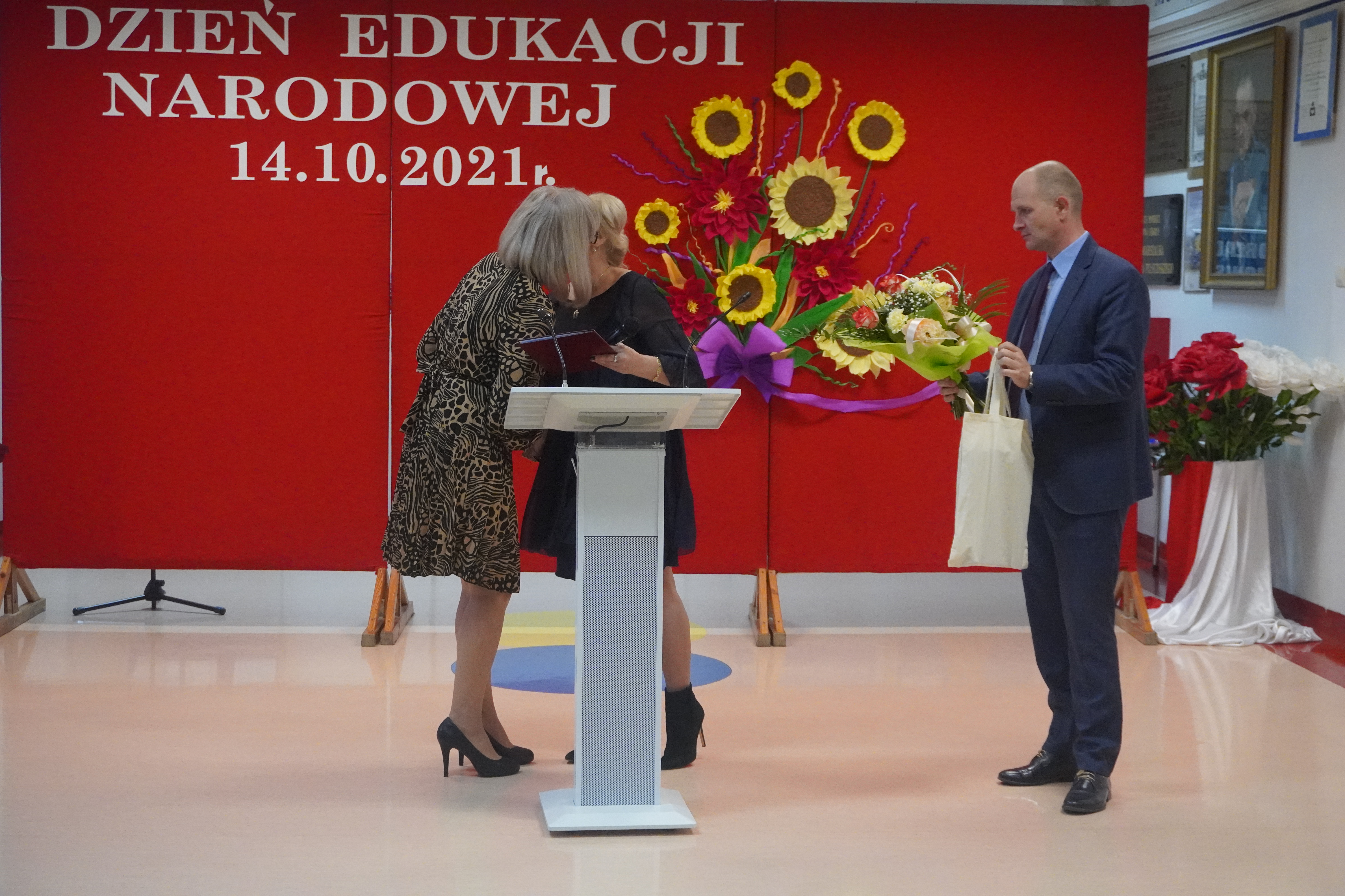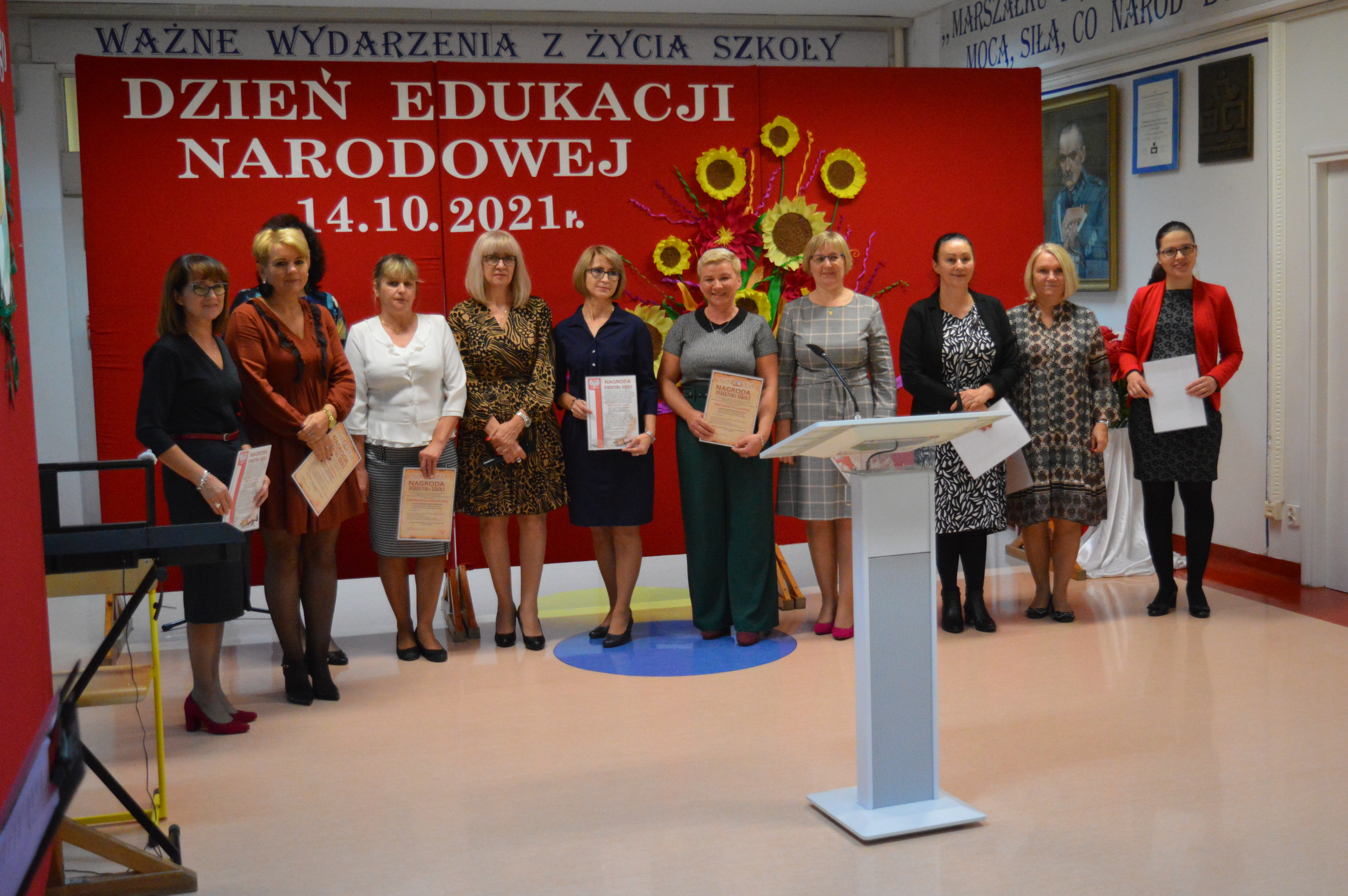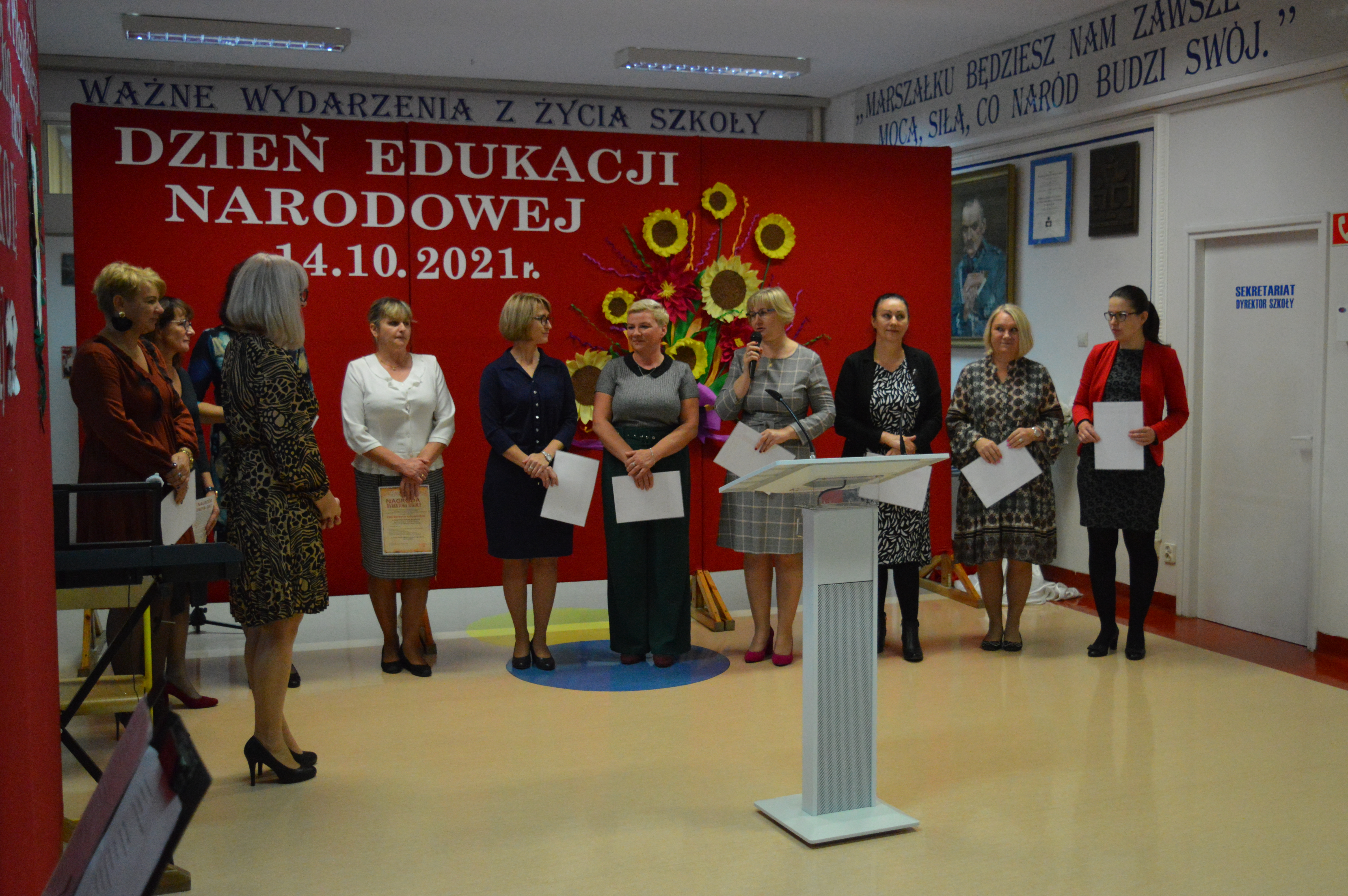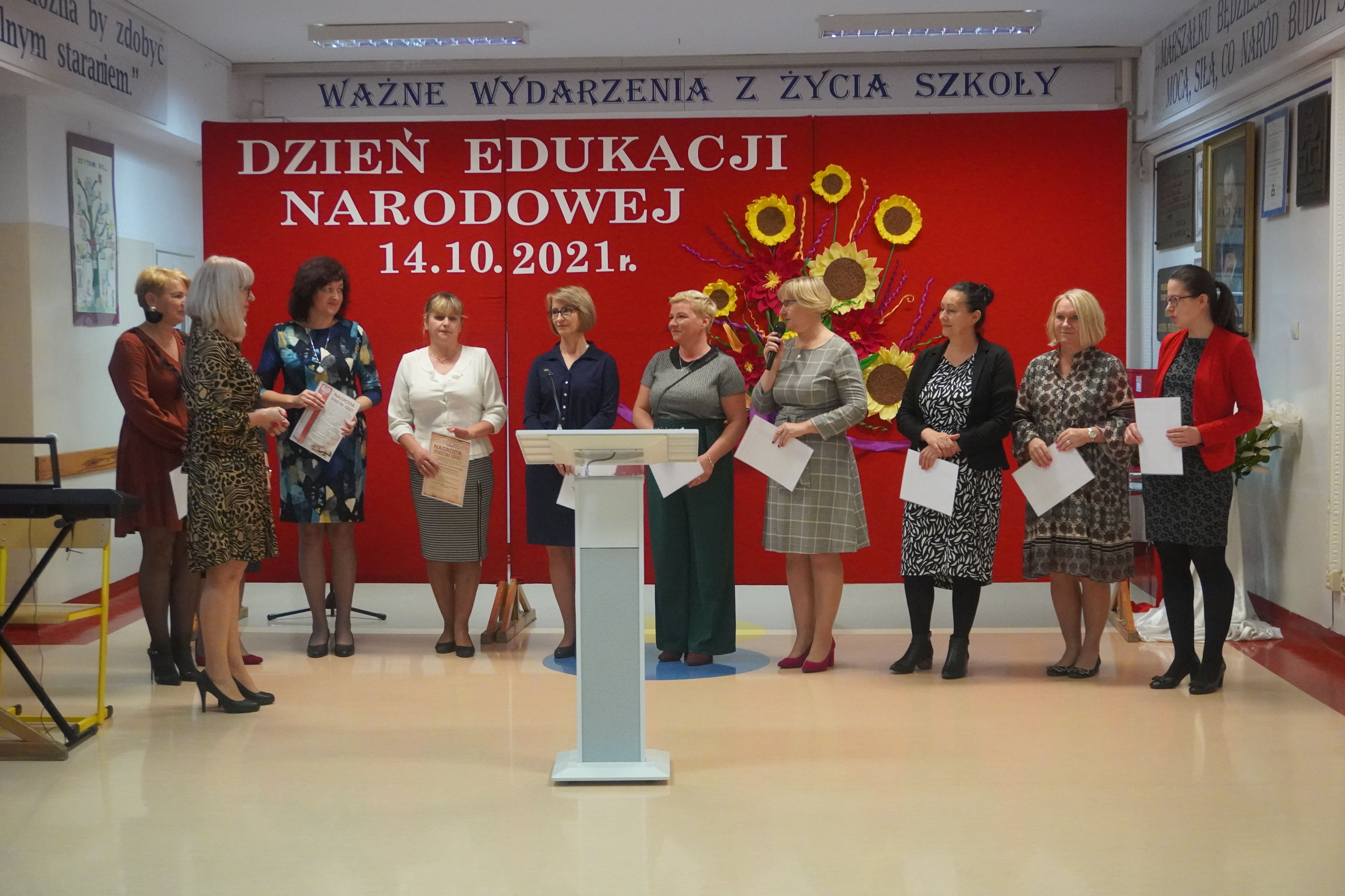 P o. dyrektora szkoły Pani Anna Ossowska powitała przybyłych gości, pracowników szkoły oraz uczniów i rodziców. Do nauczycieli, pracowników administracji i obsługi skierowała serdeczne życzenia z okazji ich święta, pogratulowała osiągnięć i wręczyła nagrody.