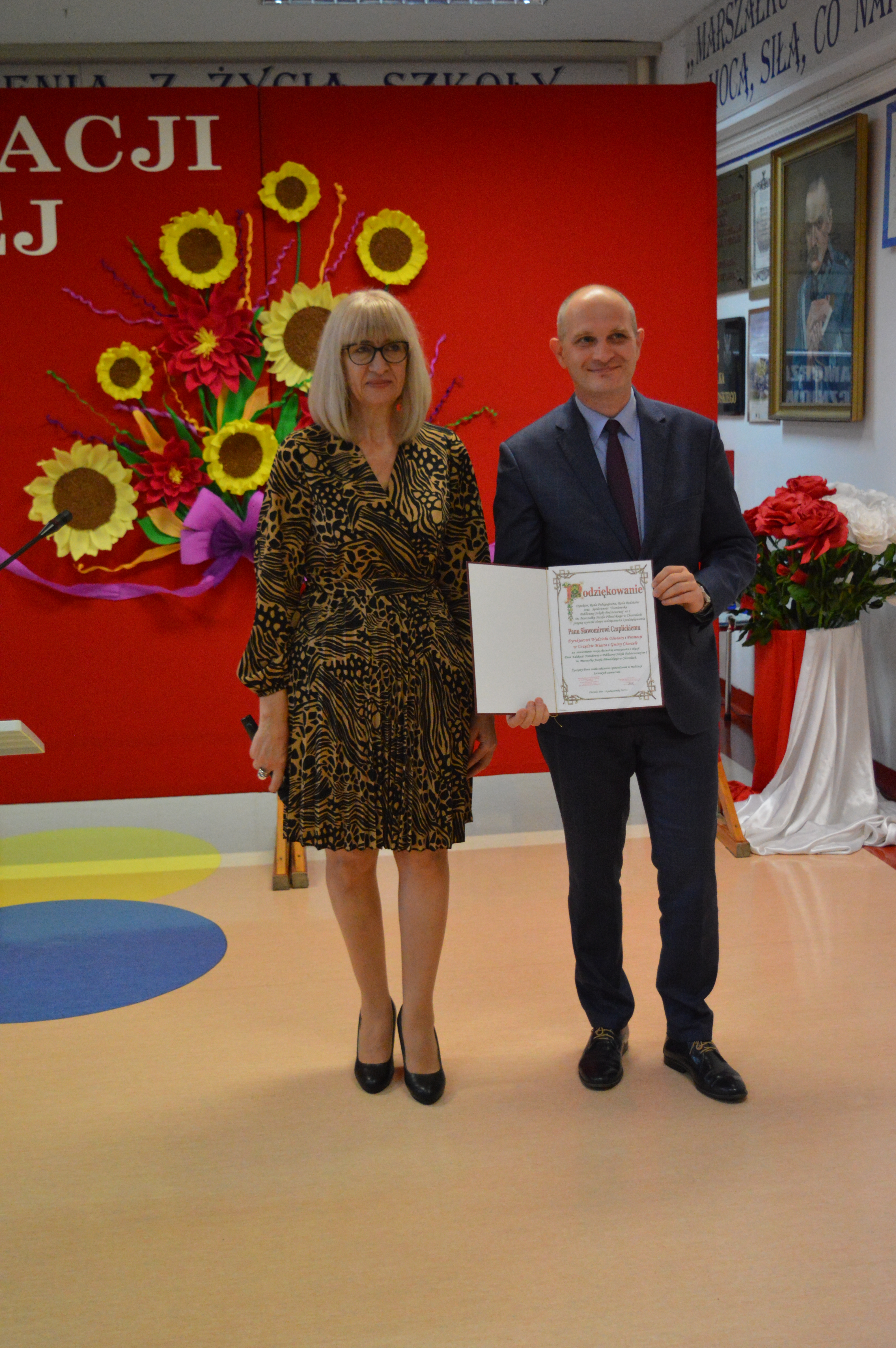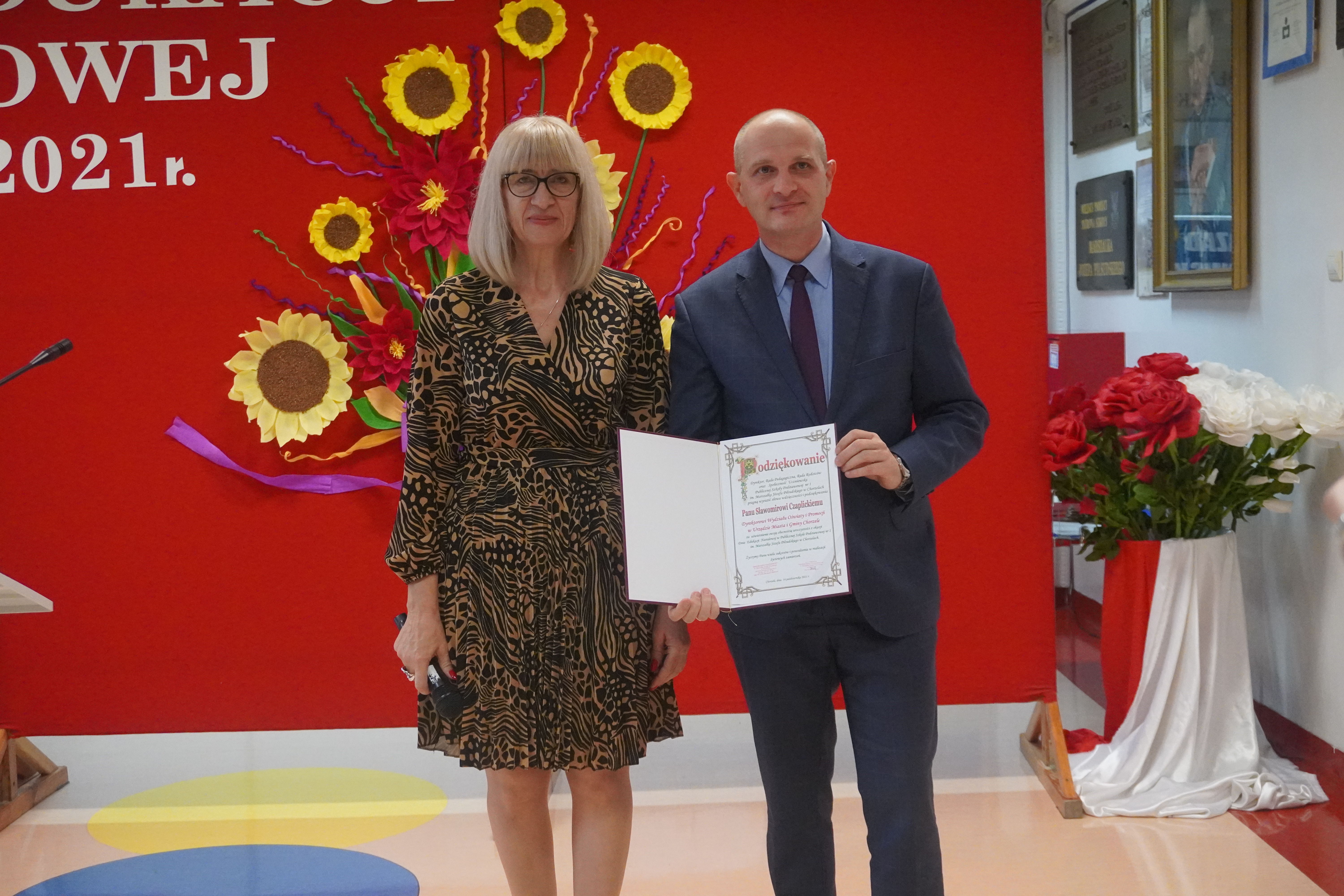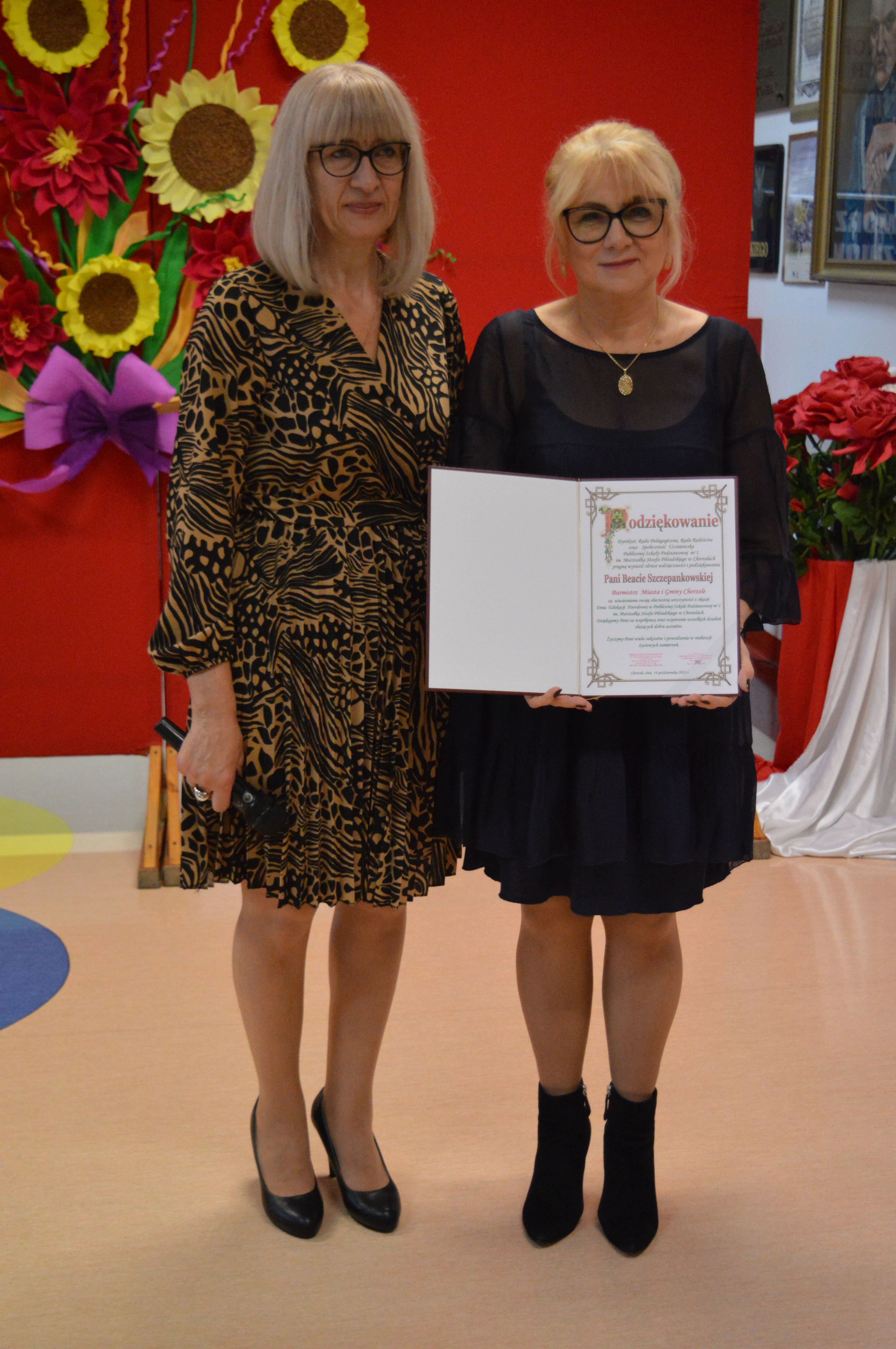 Słowa uznania do nauczycieli i pracowników administracji oraz obsługi PSP nr 1 w Chorzelach skierowała także Burmistrz Miasta i Gminy Chorzele Beata Szczepankowska, dziękując za dotychczasową pracę i zaangażowanie w kształtowanie młodego pokolenia.