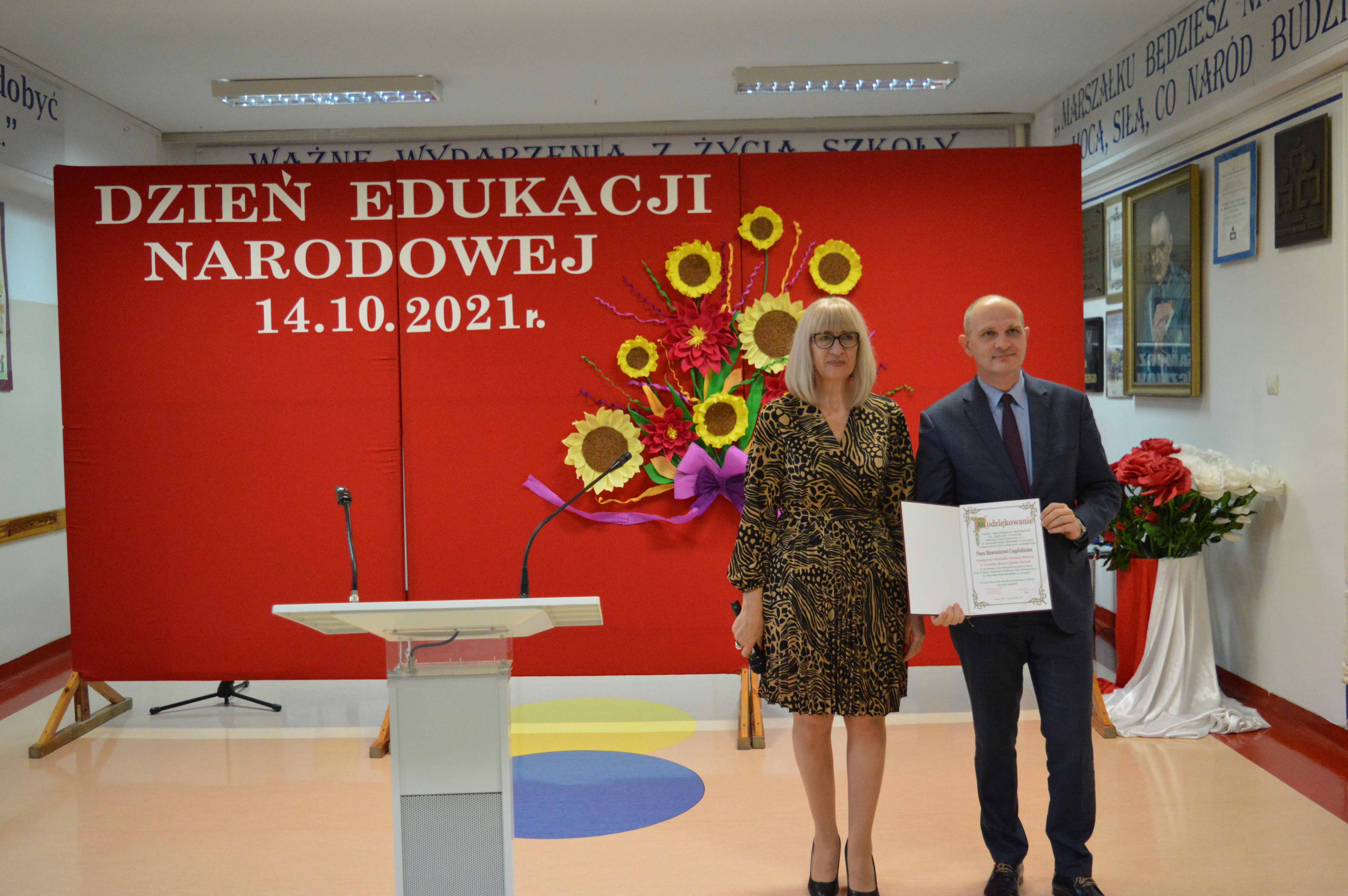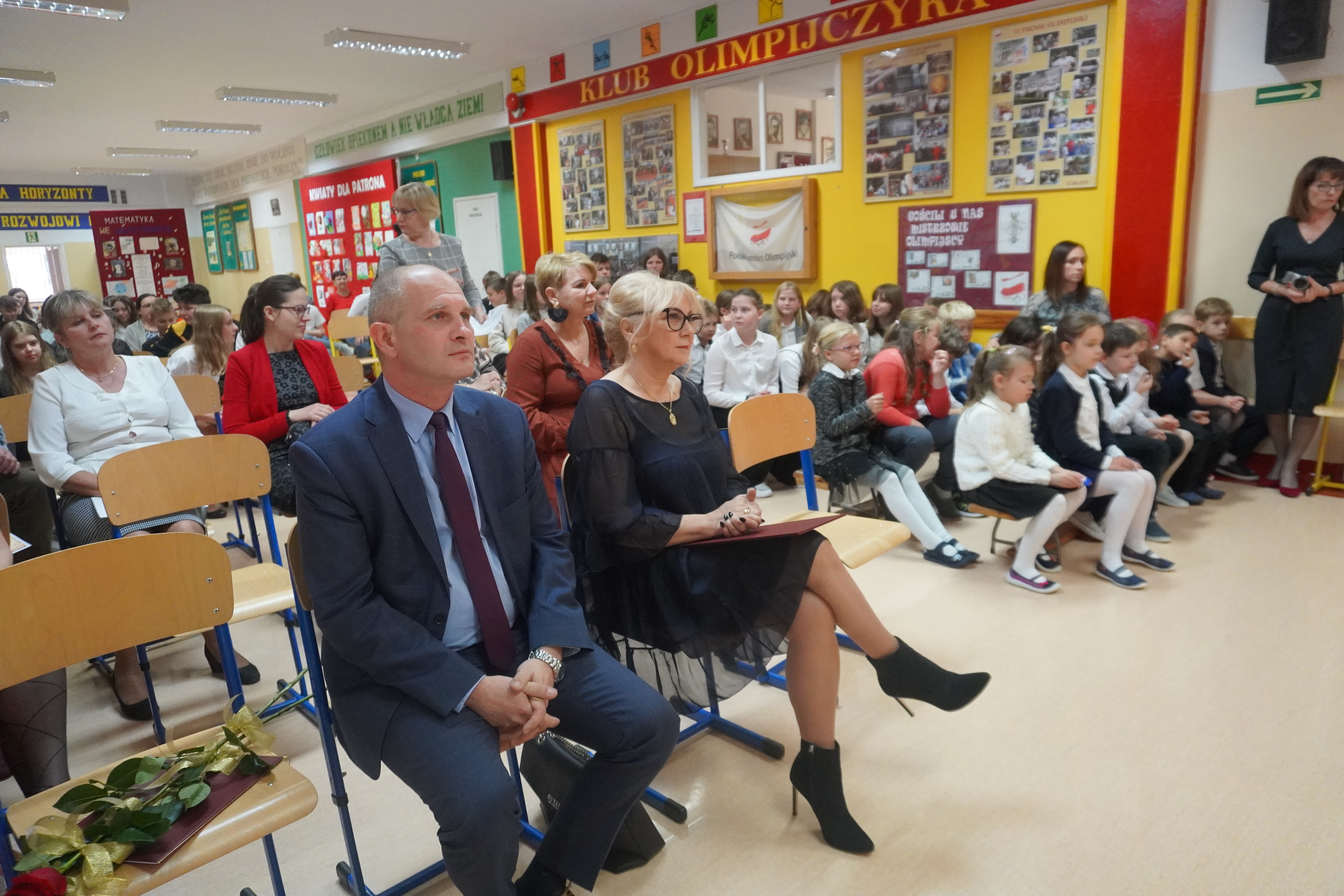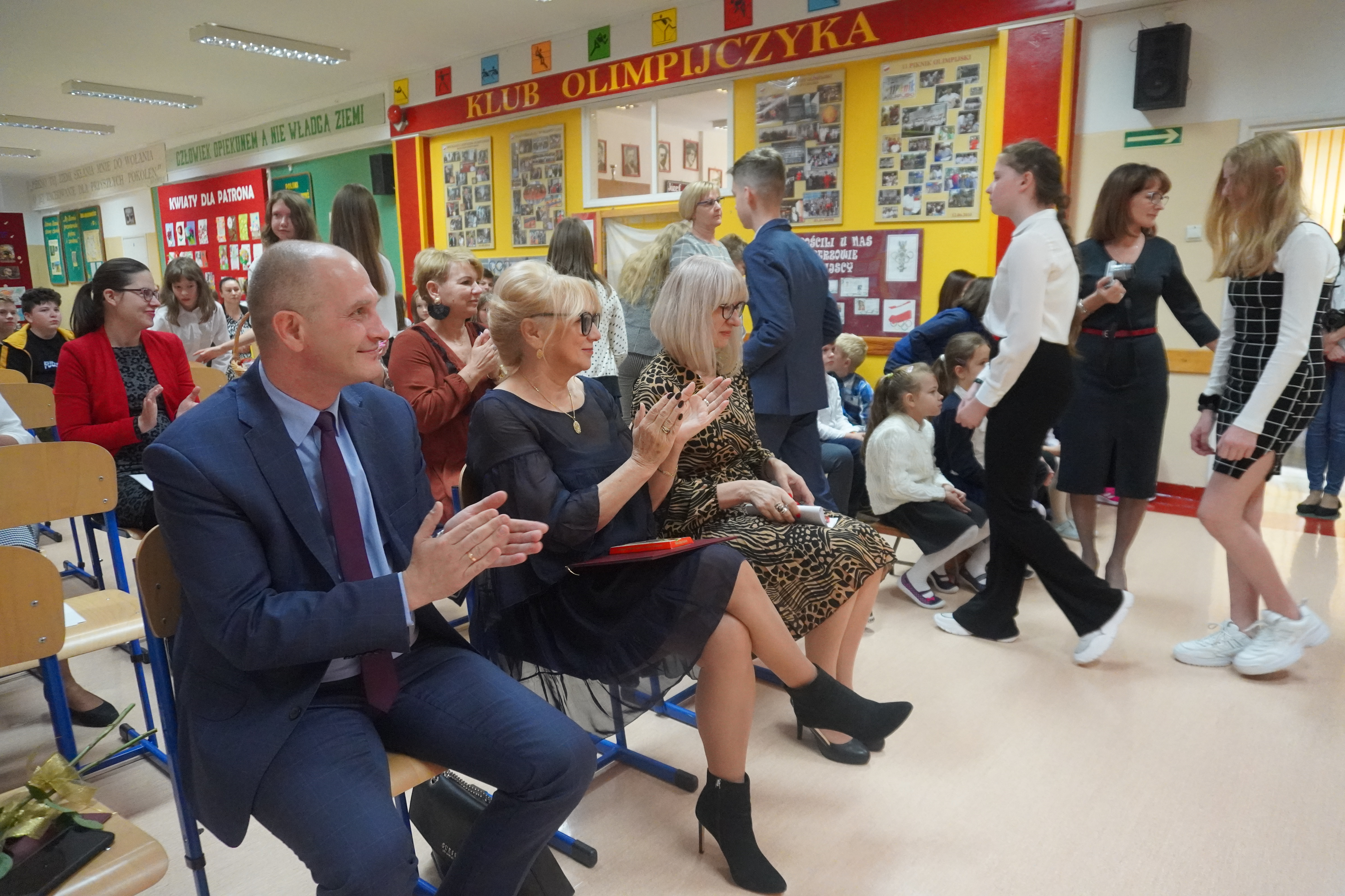 Słowa uznania do nauczycieli i pracowników administracji oraz obsługi PSP nr 1 w Chorzelach skierowała także Burmistrz Miasta i Gminy Chorzele Beata Szczepankowska, dziękując za dotychczasową pracę i zaangażowanie w kształtowanie młodego pokolenia.