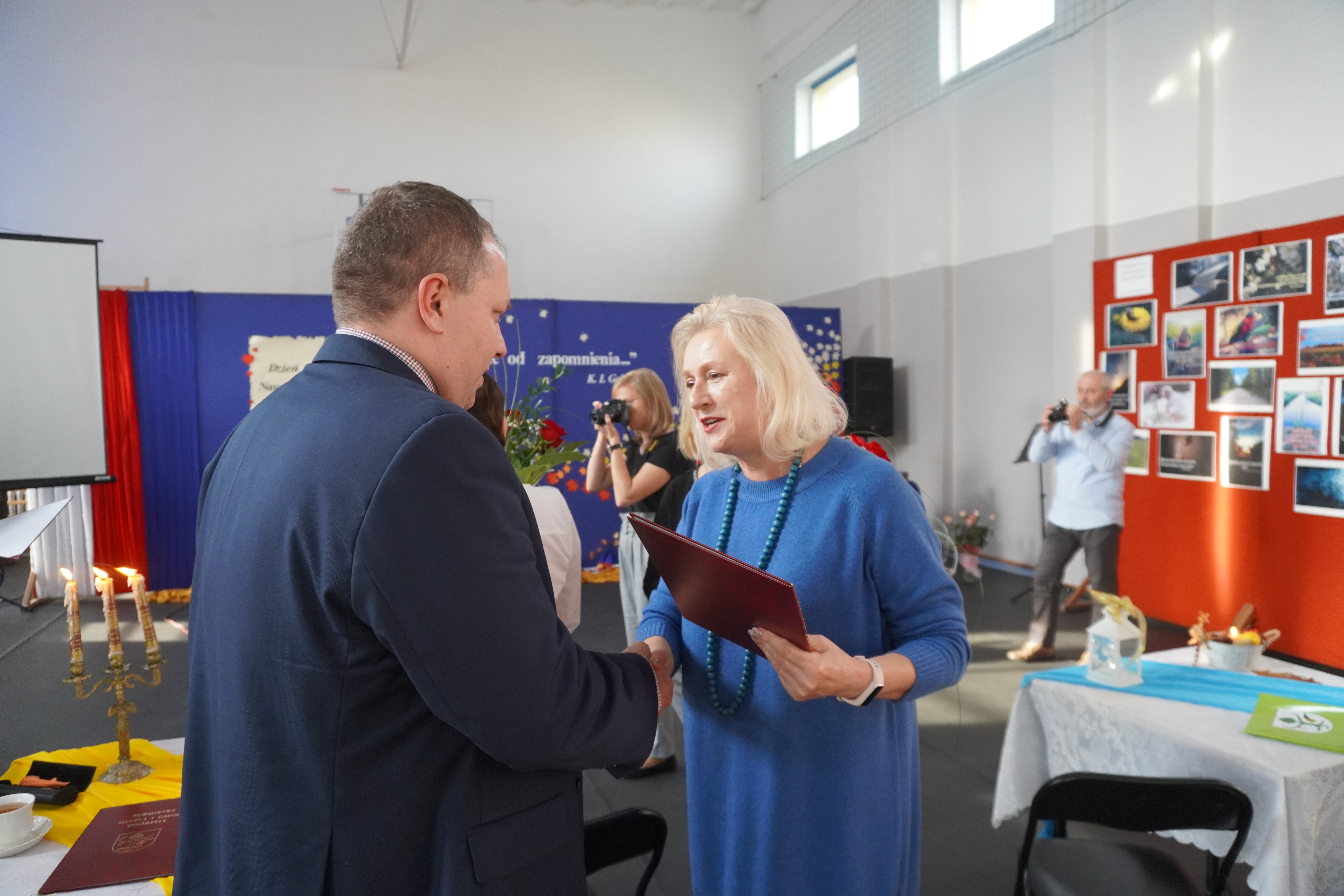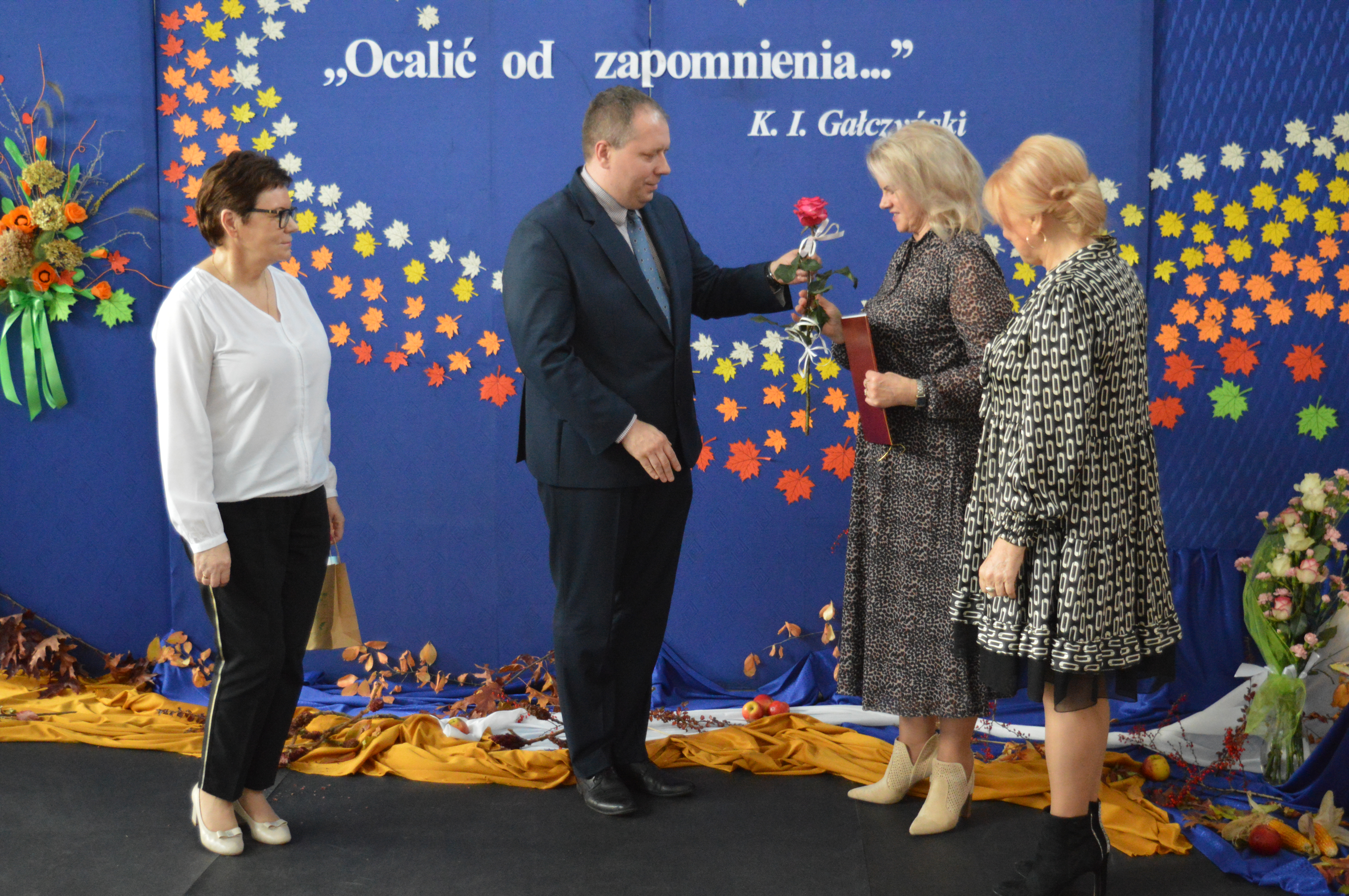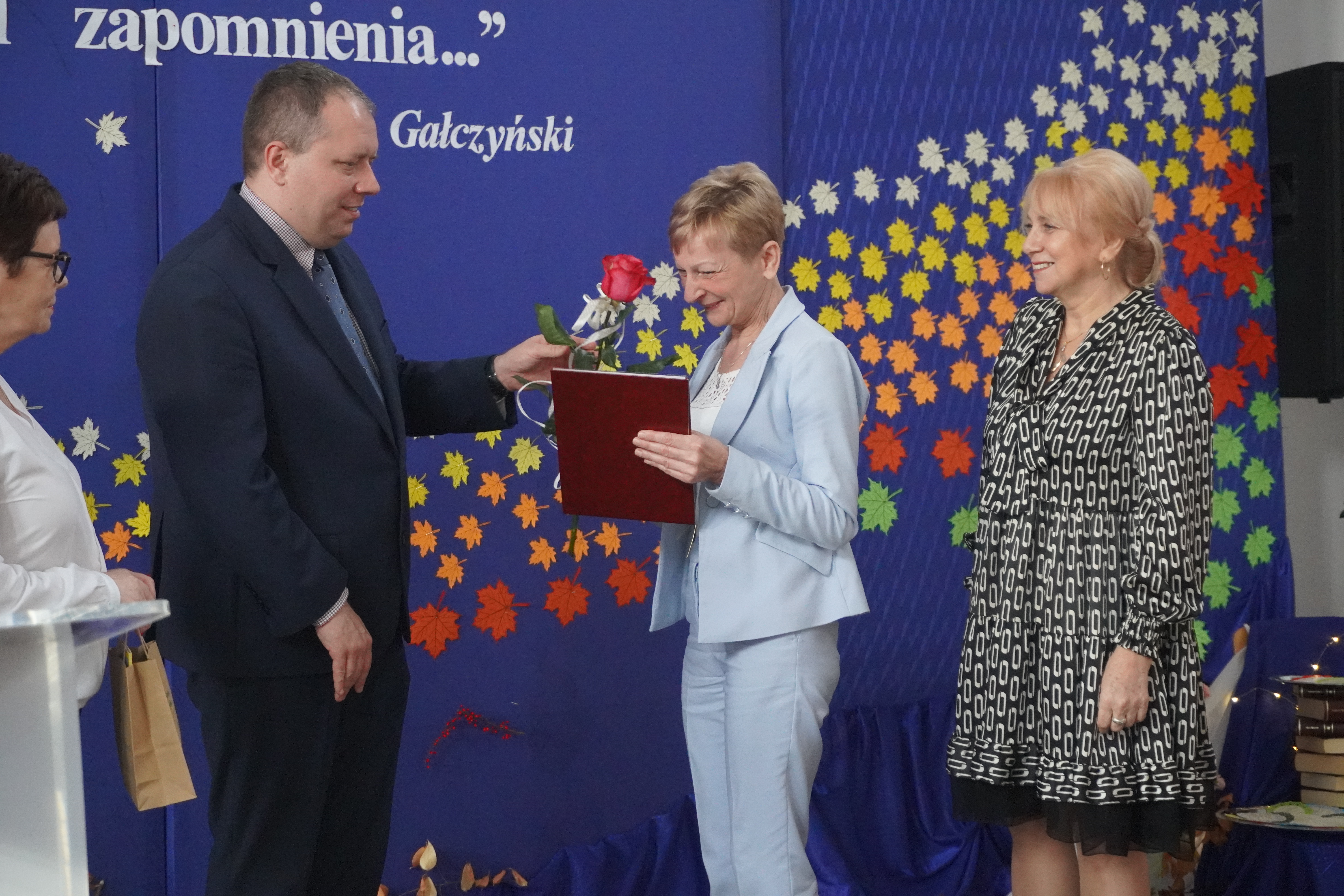 Szczególne słowa wdzięczności i uznania, burmistrz Beata Szczepankowska skierowała do dyrektora Delegatury w Ostrołęce Kuratorium Oświaty w Warszawie Michała Giersa, któremu podziękowała za podejmowanie działań mających wpływ na prawidłową organizację i realizację procesu nauczania.
