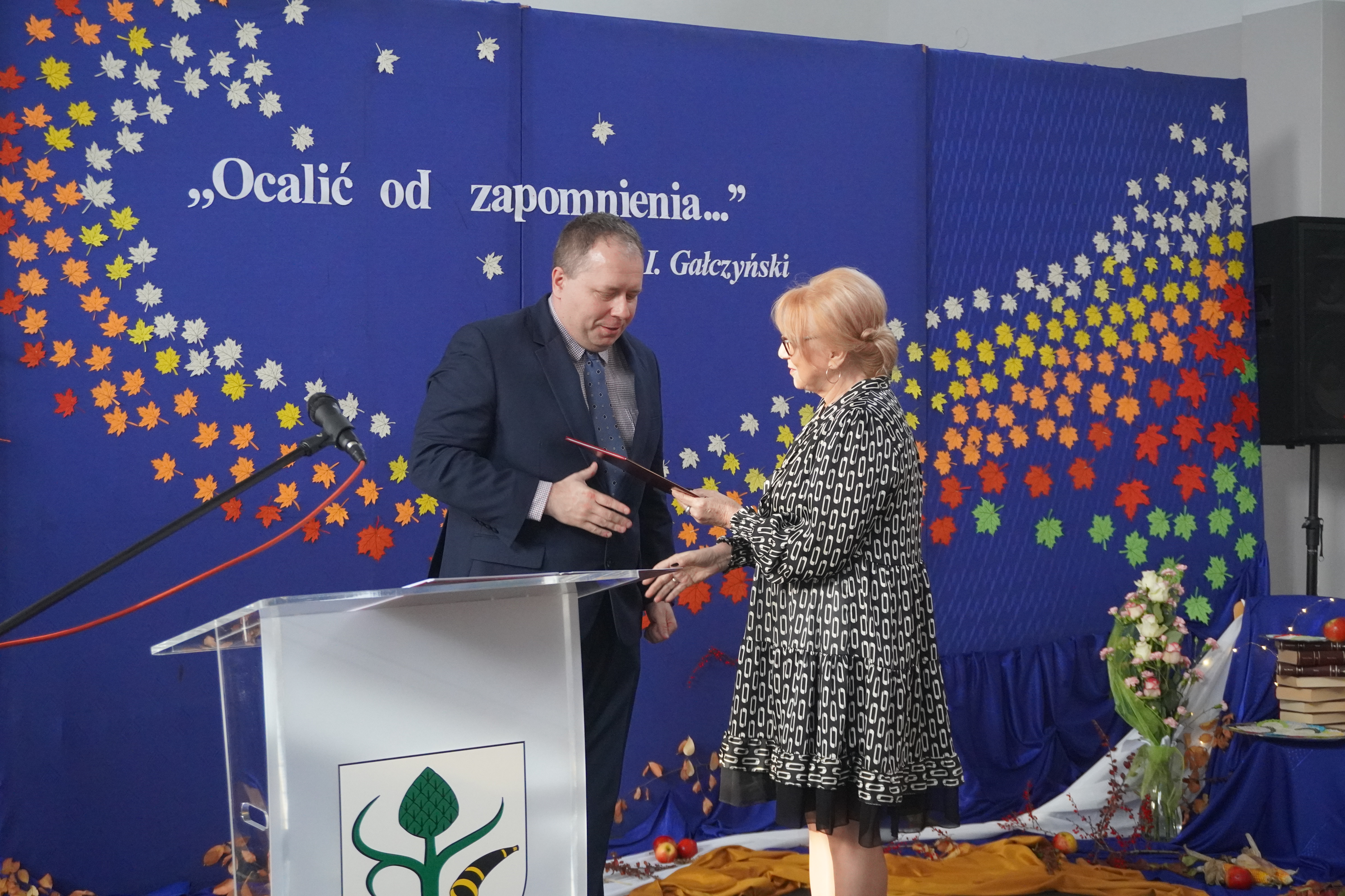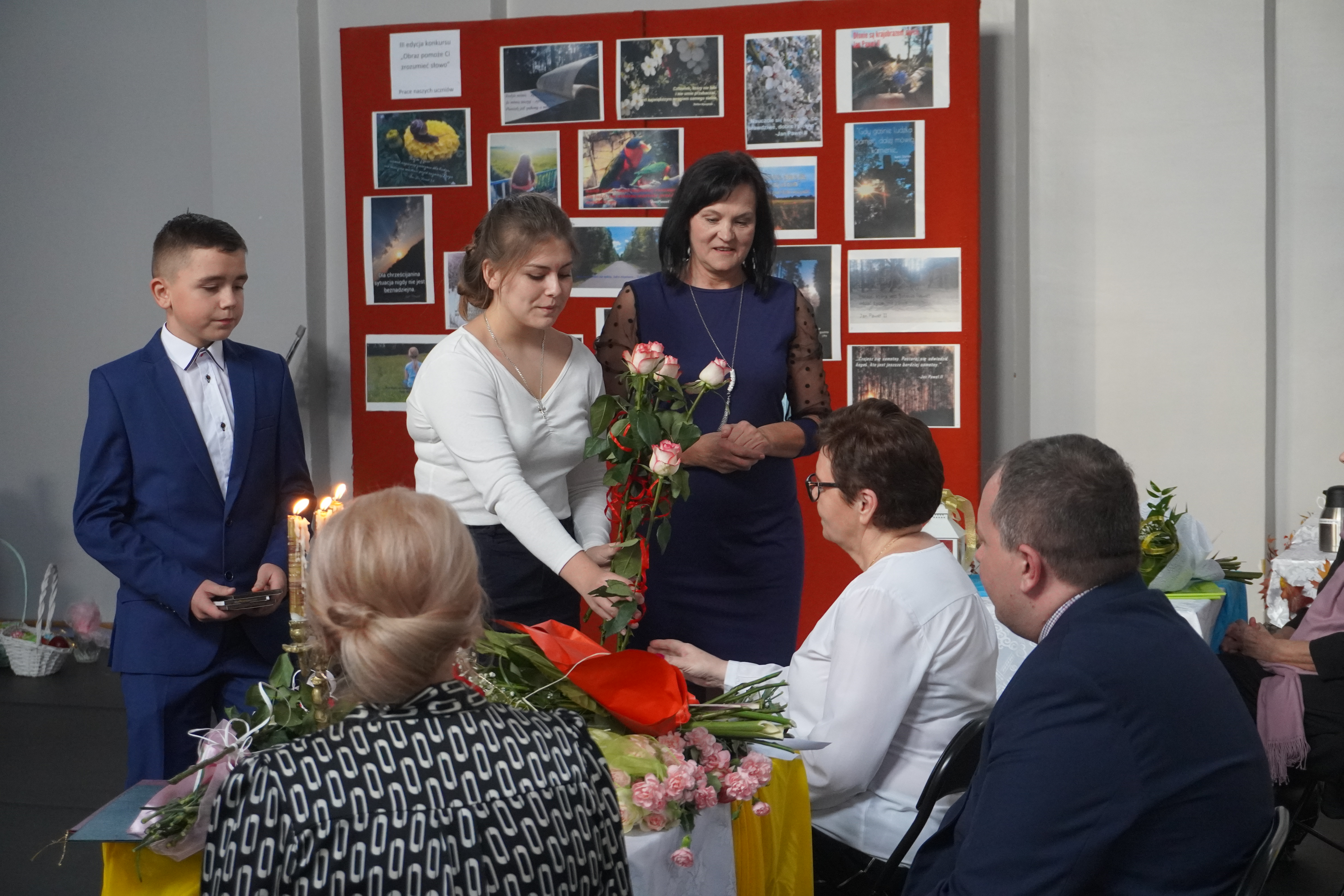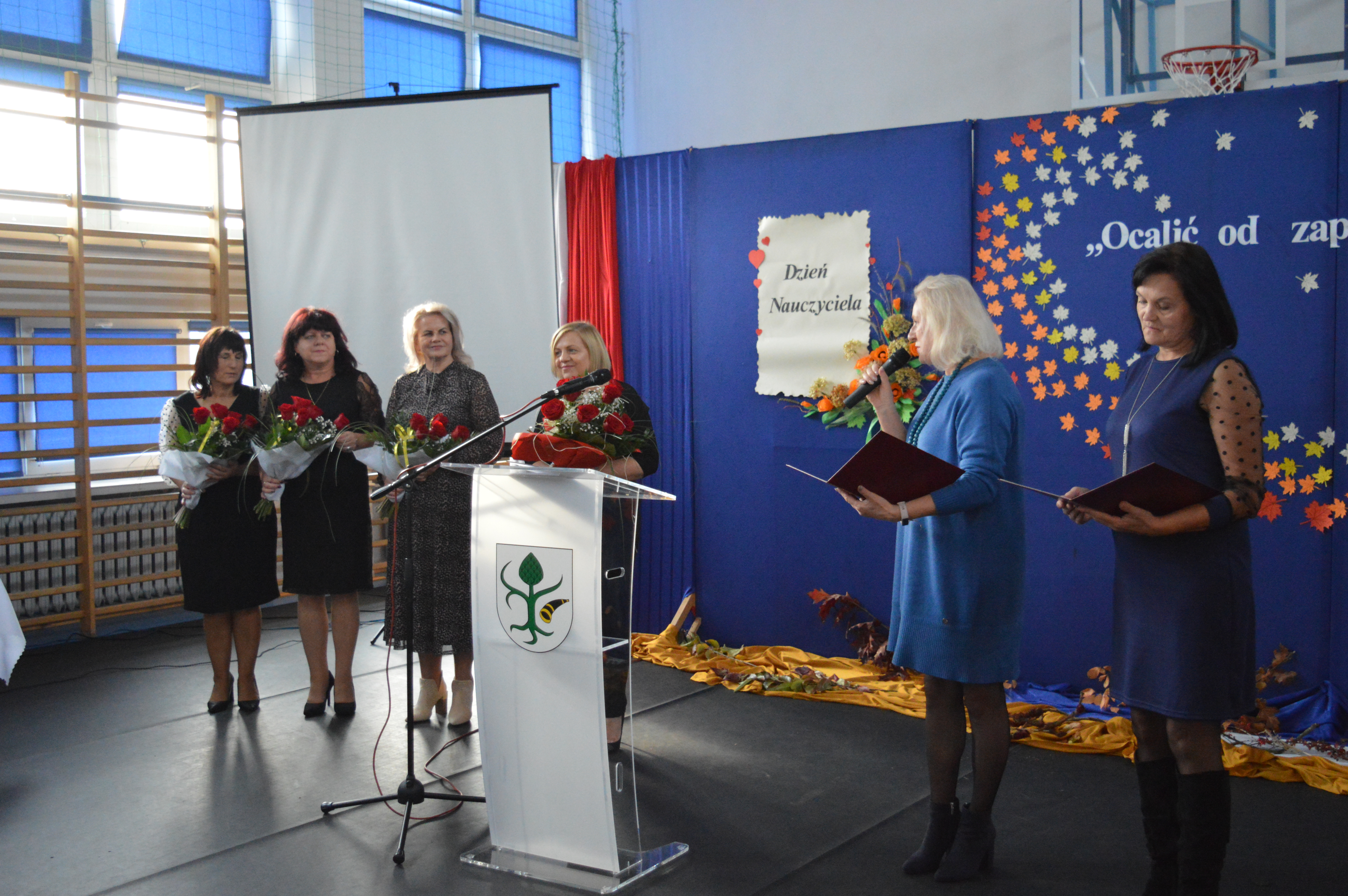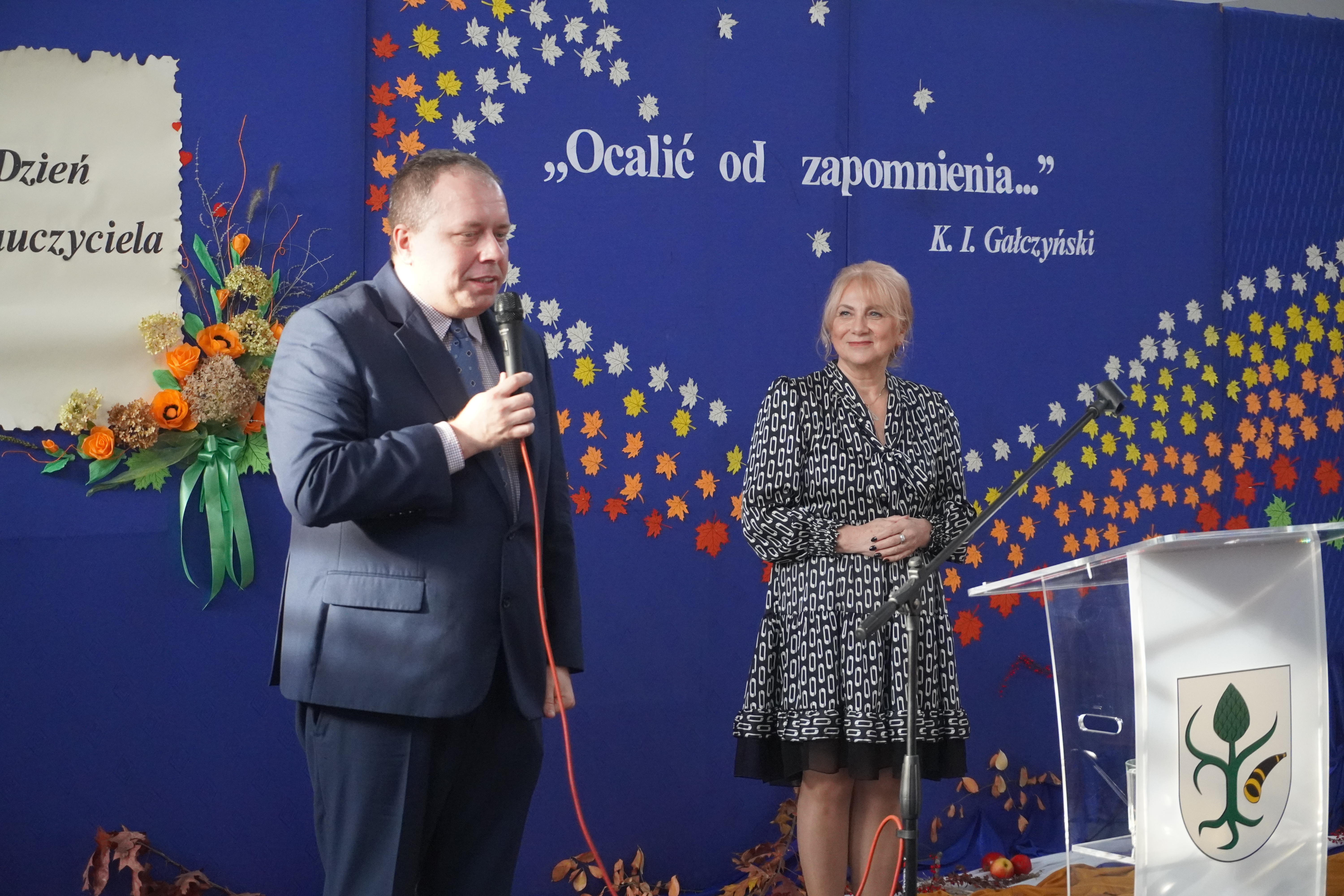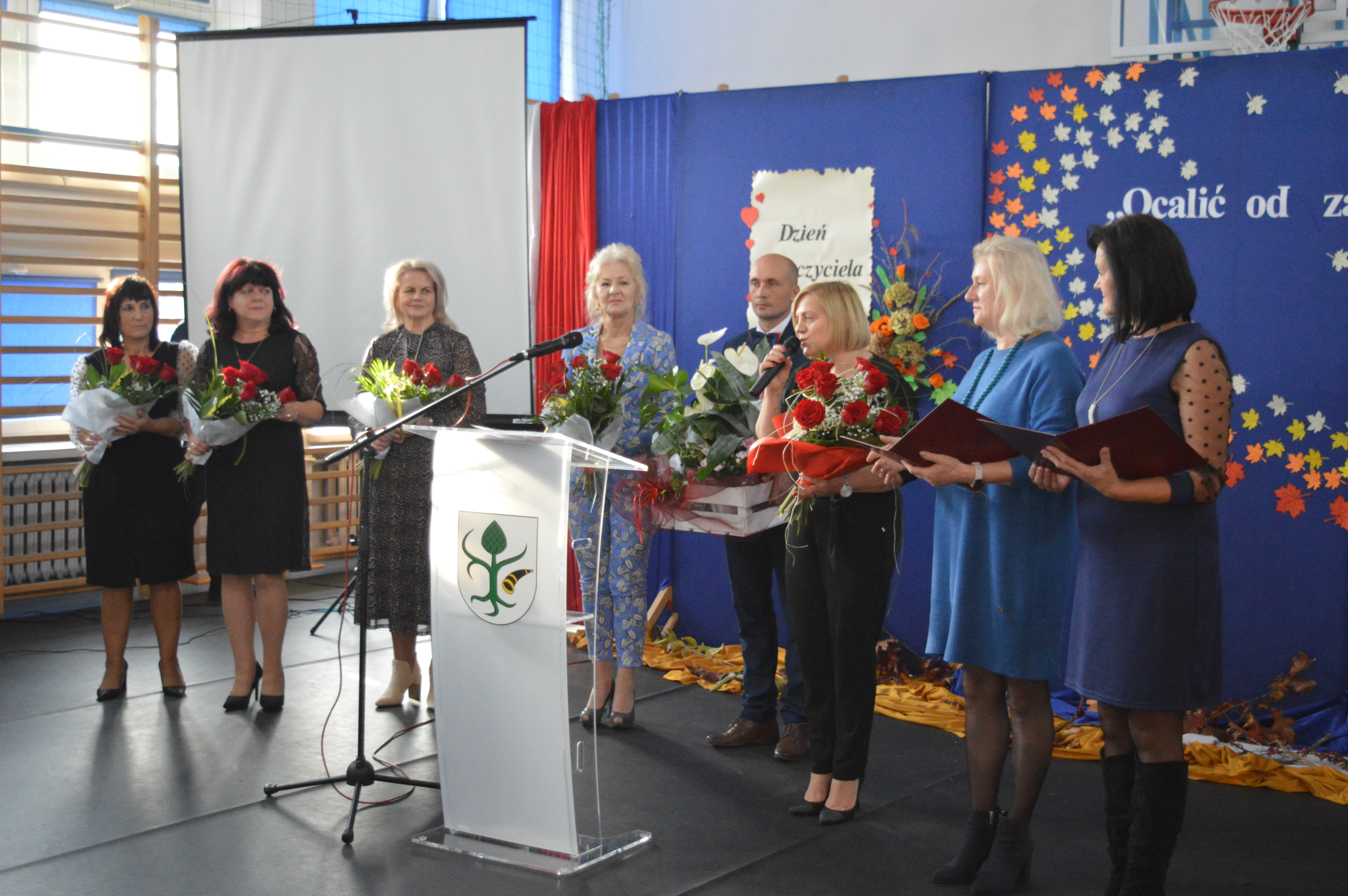 Głos zabierali również goście zaproszeni oraz dyrektorzy i nauczyciele. Dyrektor Michał Giers podziękował za zaproszenie i w równie pięknych słowach pogratulował władzom Gminy oraz wszystkim wyróżnionym i całej szkolnej społeczności, przybliżając rys historyczny polskiej oświaty. Życzenia przekazała również radna Wanda Jastrzębska.