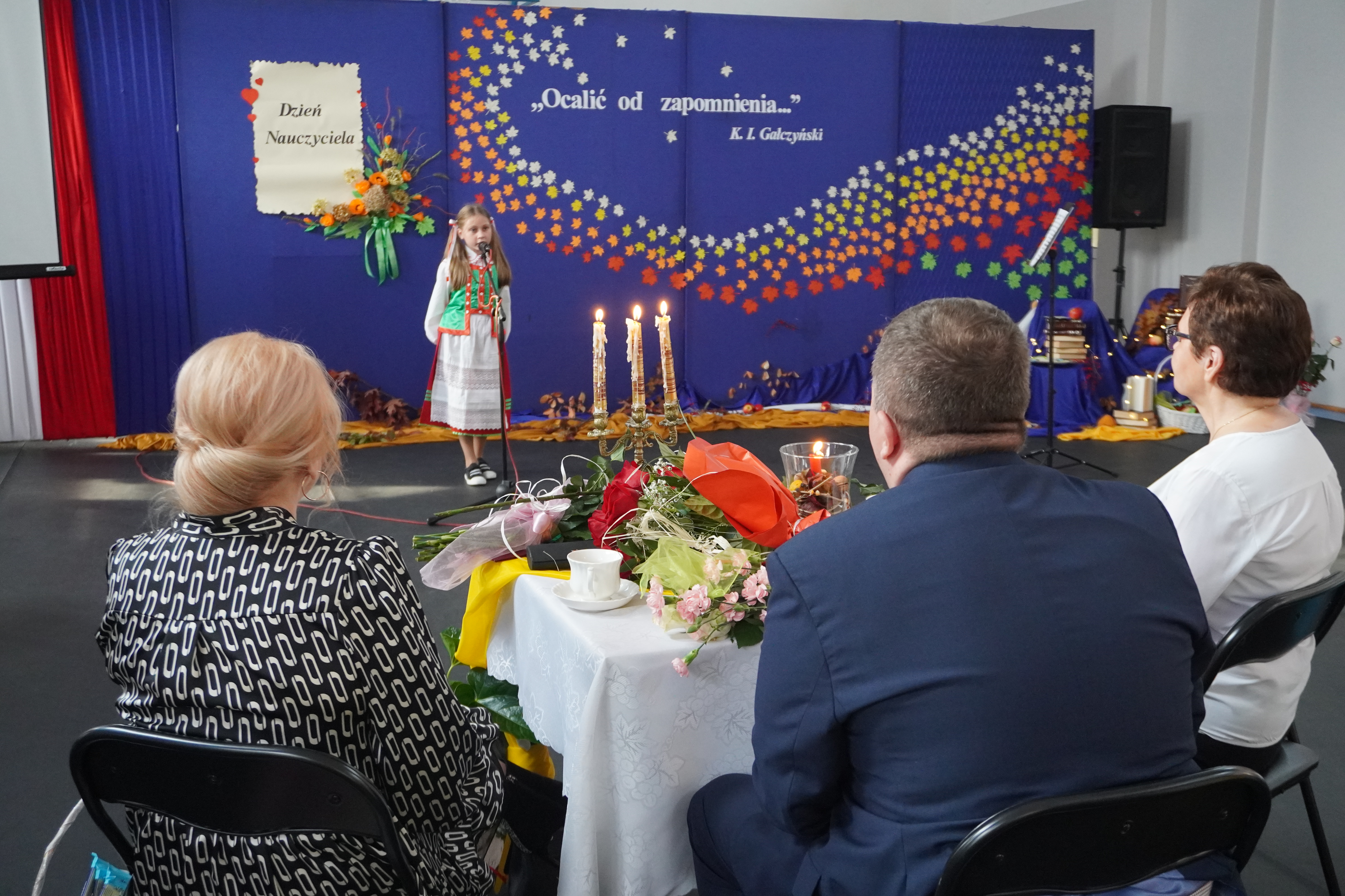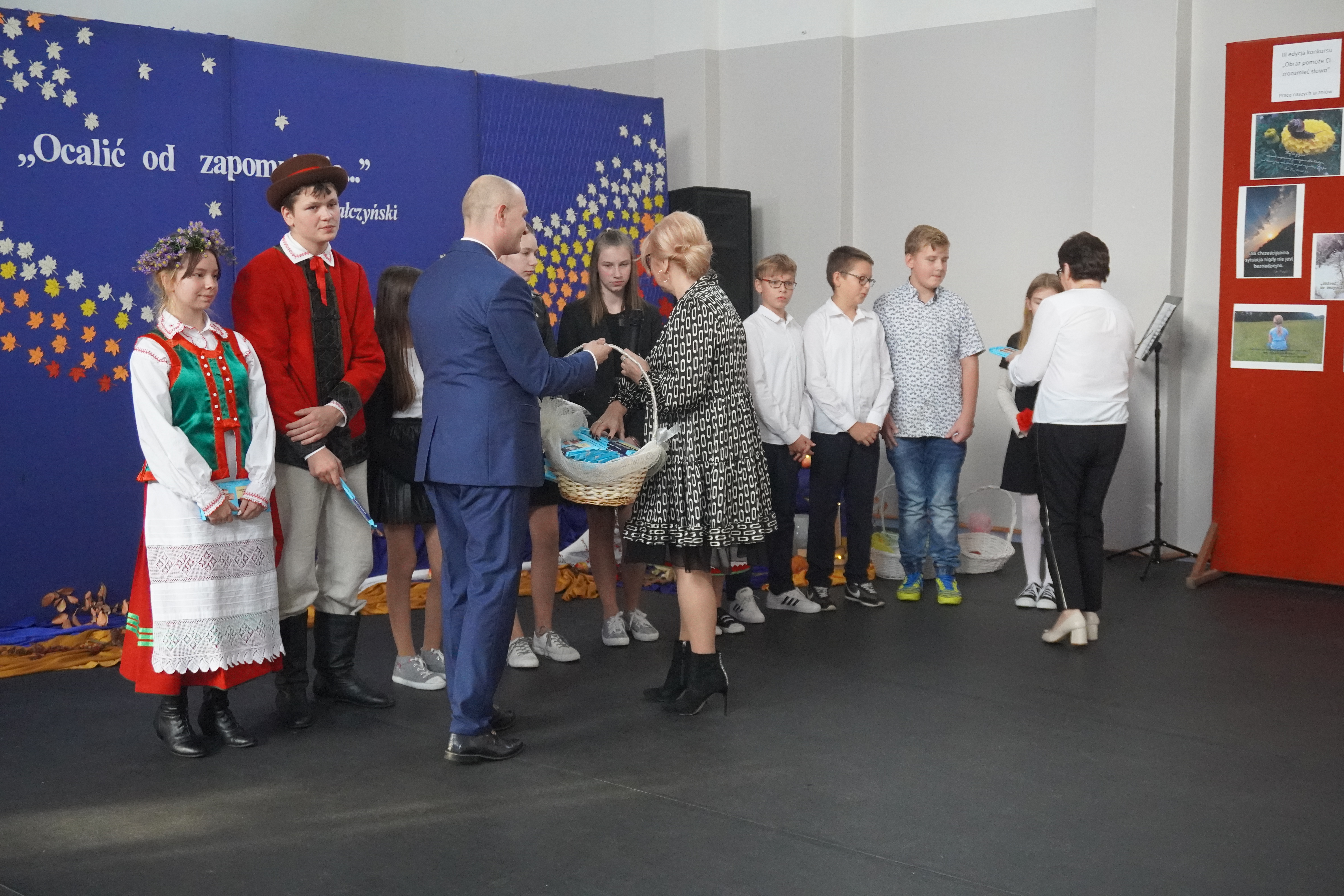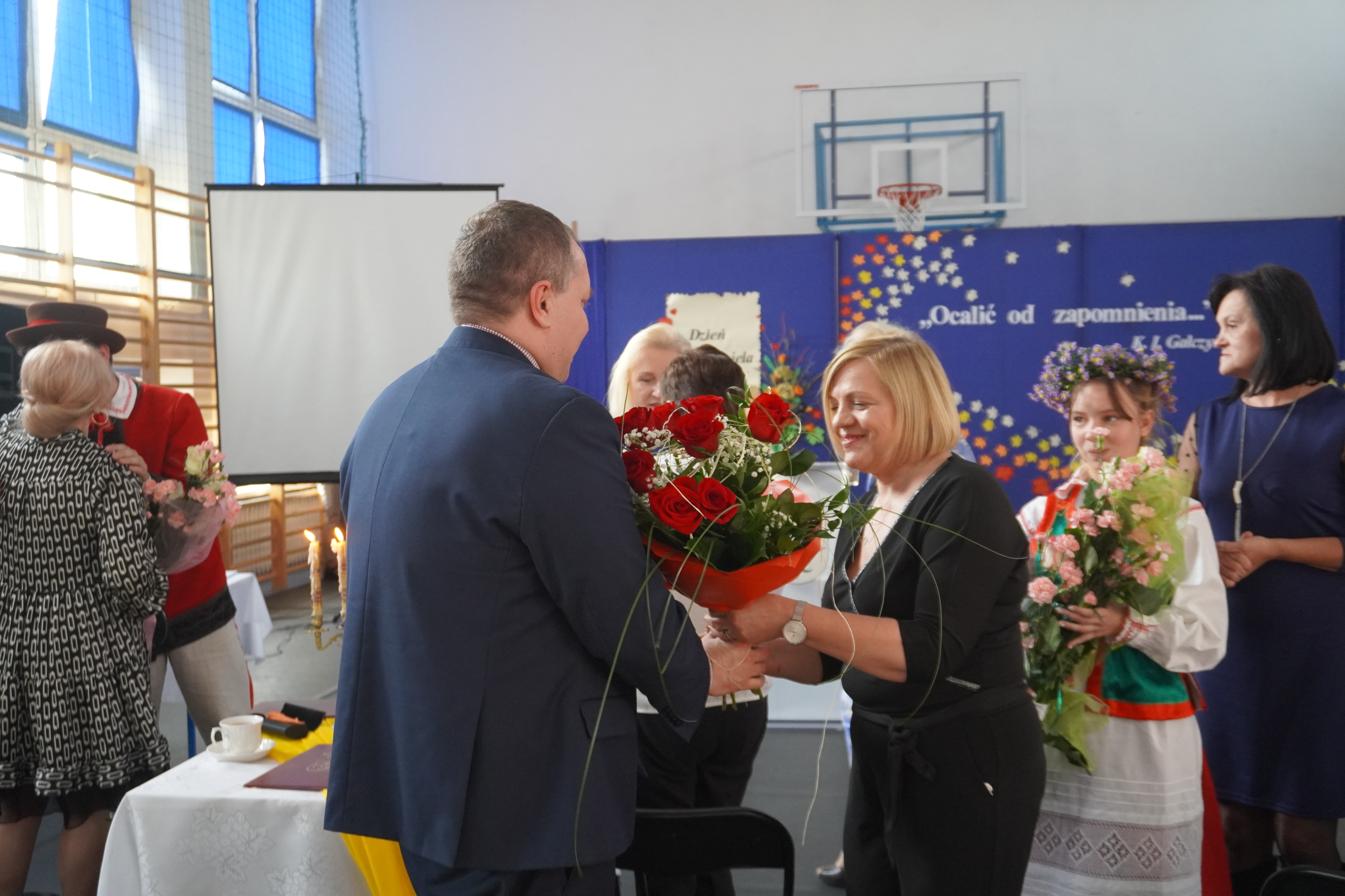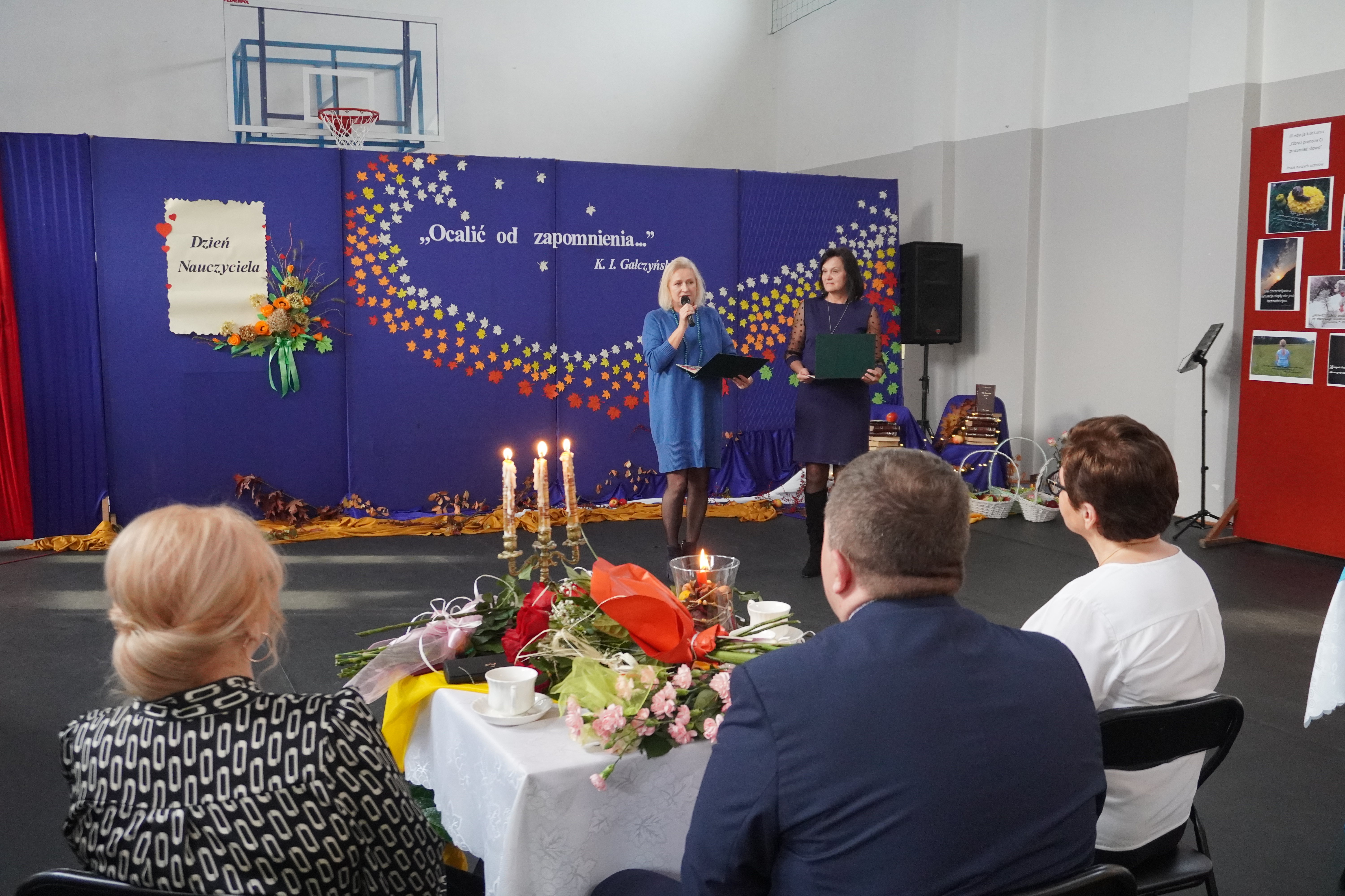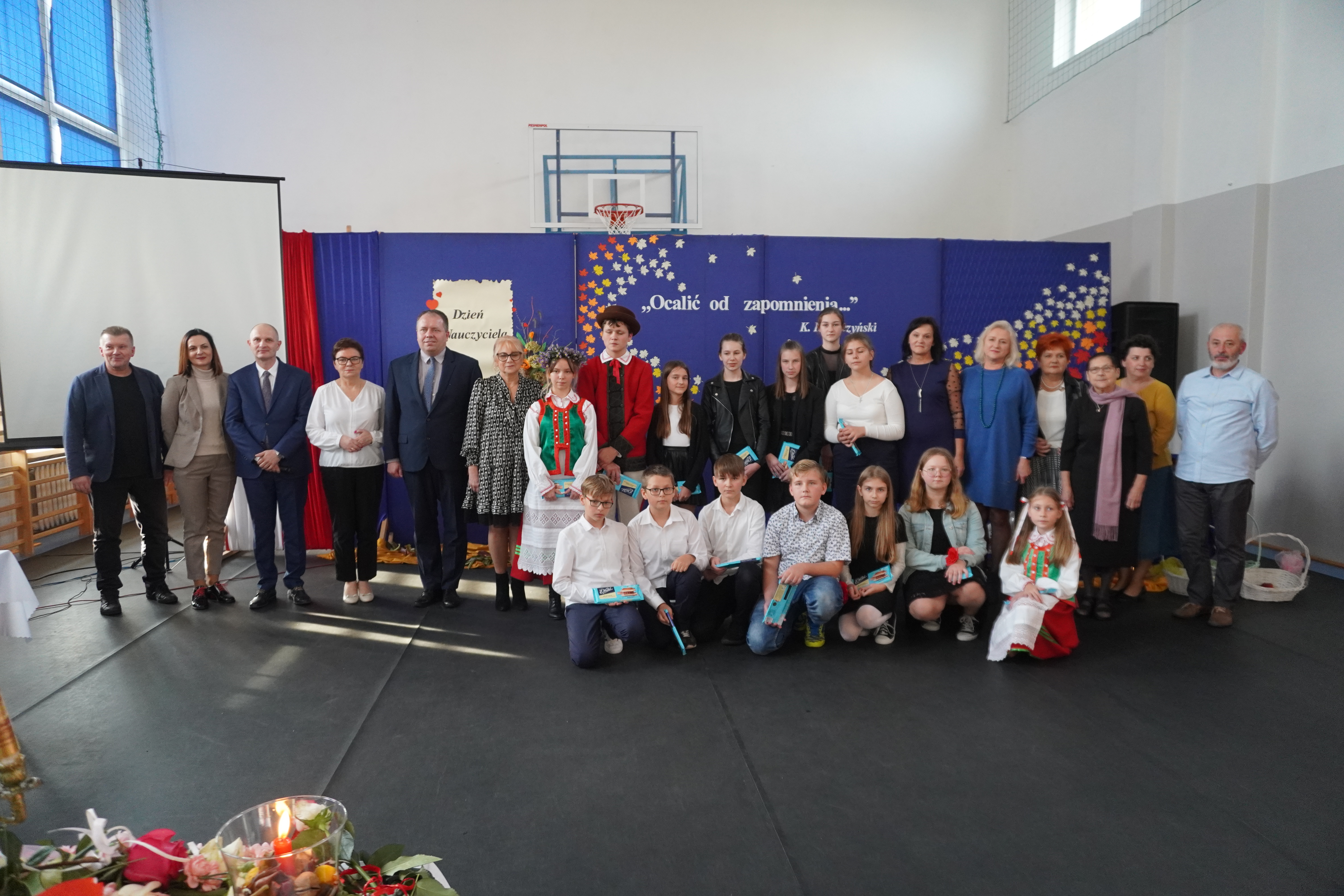 Głos zabierali również goście zaproszeni oraz dyrektorzy i nauczyciele. Dyrektor Michał Giers podziękował za zaproszenie i w równie pięknych słowach pogratulował władzom Gminy oraz wszystkim wyróżnionym i całej szkolnej społeczności, przybliżając rys historyczny polskiej oświaty. Życzenia przekazała również radna Wanda Jastrzębska.