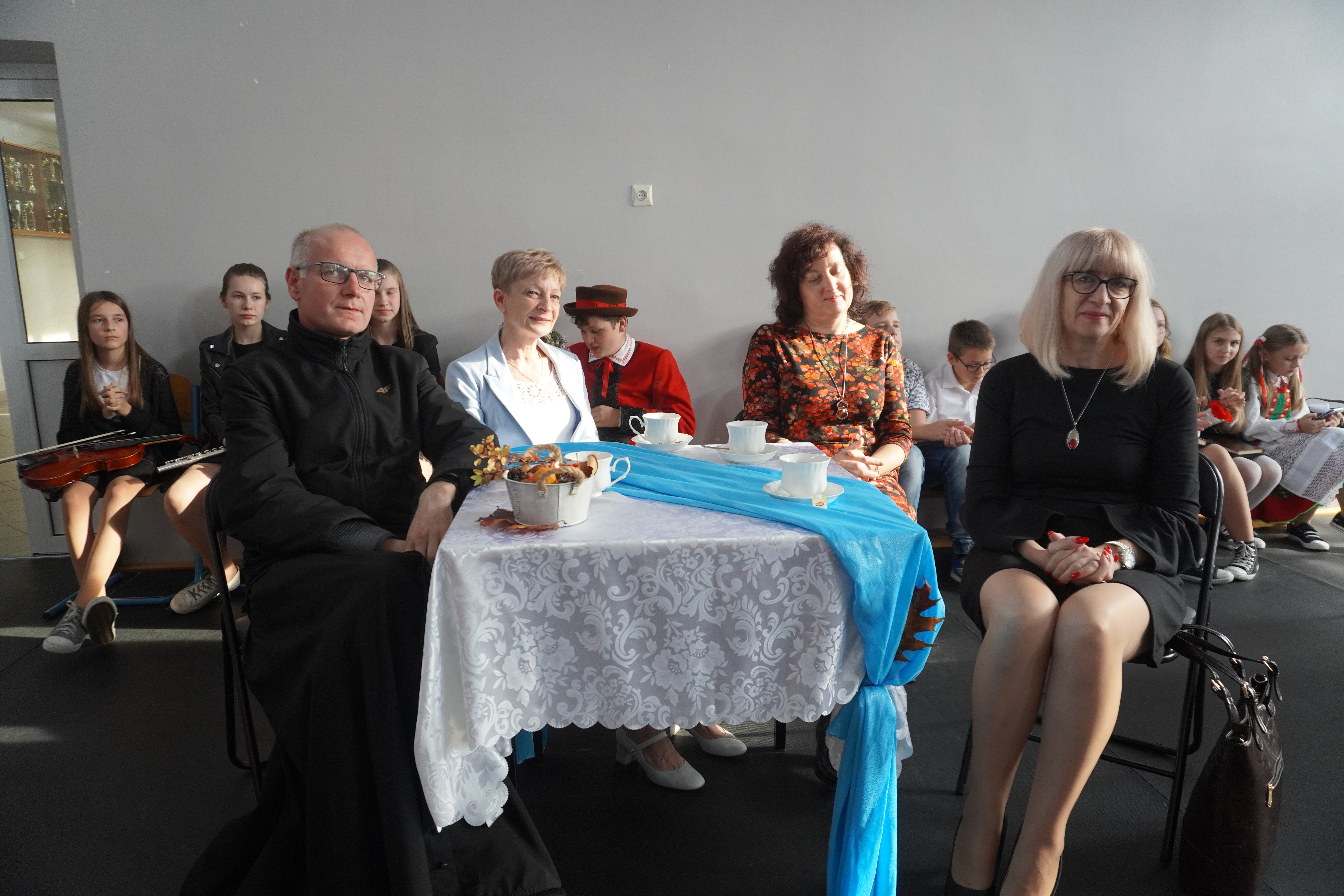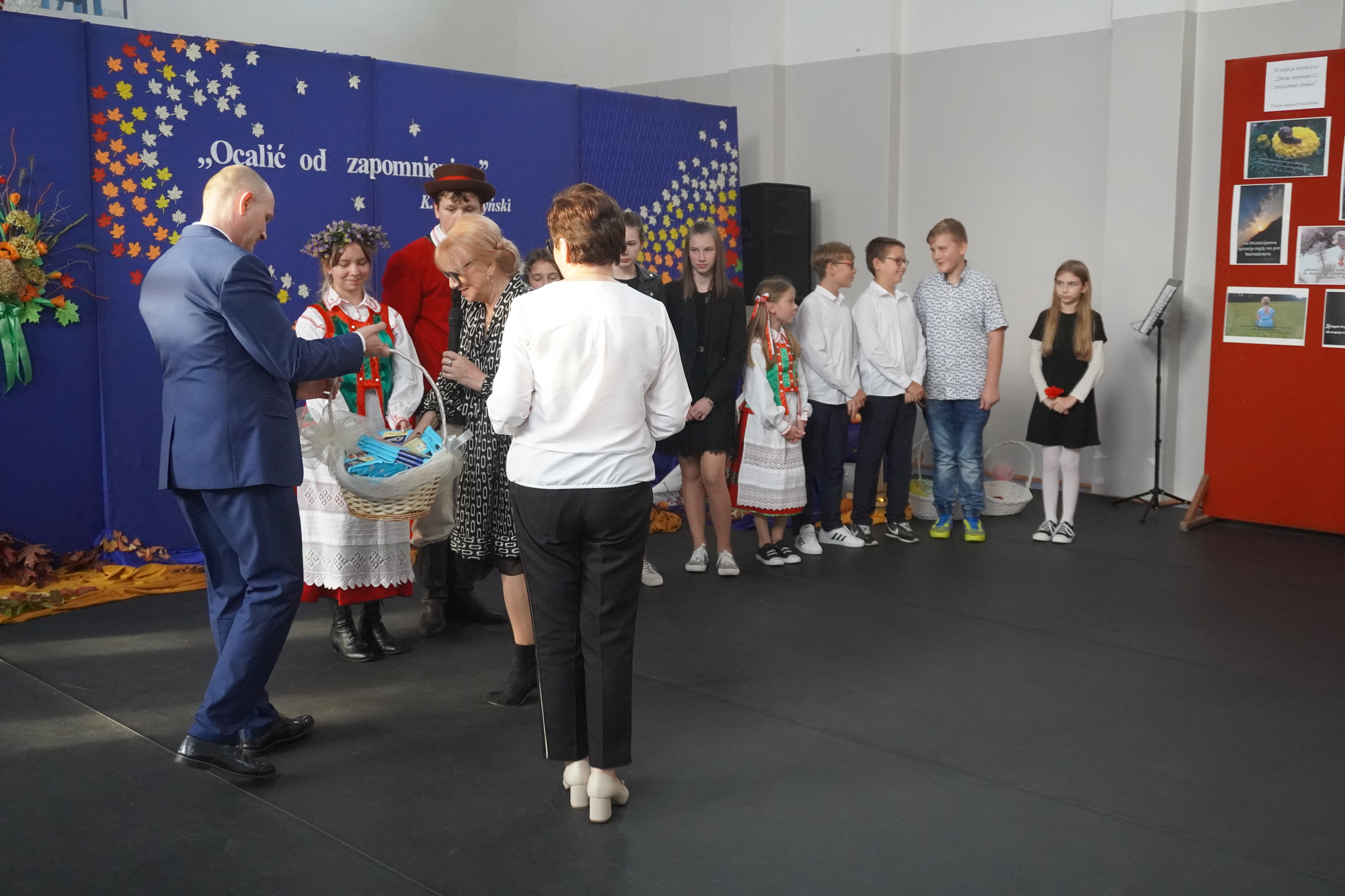 To niezwykle miłe spotkanie, podczas którego czuć było wzajemne wsparcie, zgodne i odpowiedzialne podejście do spraw oświaty na terenie Miasta i Gminy Chorzele oraz rozwoju dzieci i młodzieży i przyszłych pokoleń Polaków uświetnił piękny, nostalgiczny występ uzdolnionej młodzieży z PSP w Zarębach. Burmistrz w podziękowaniu wręczyła wszystkim występującym słodki upominek oraz gminne gadżety.