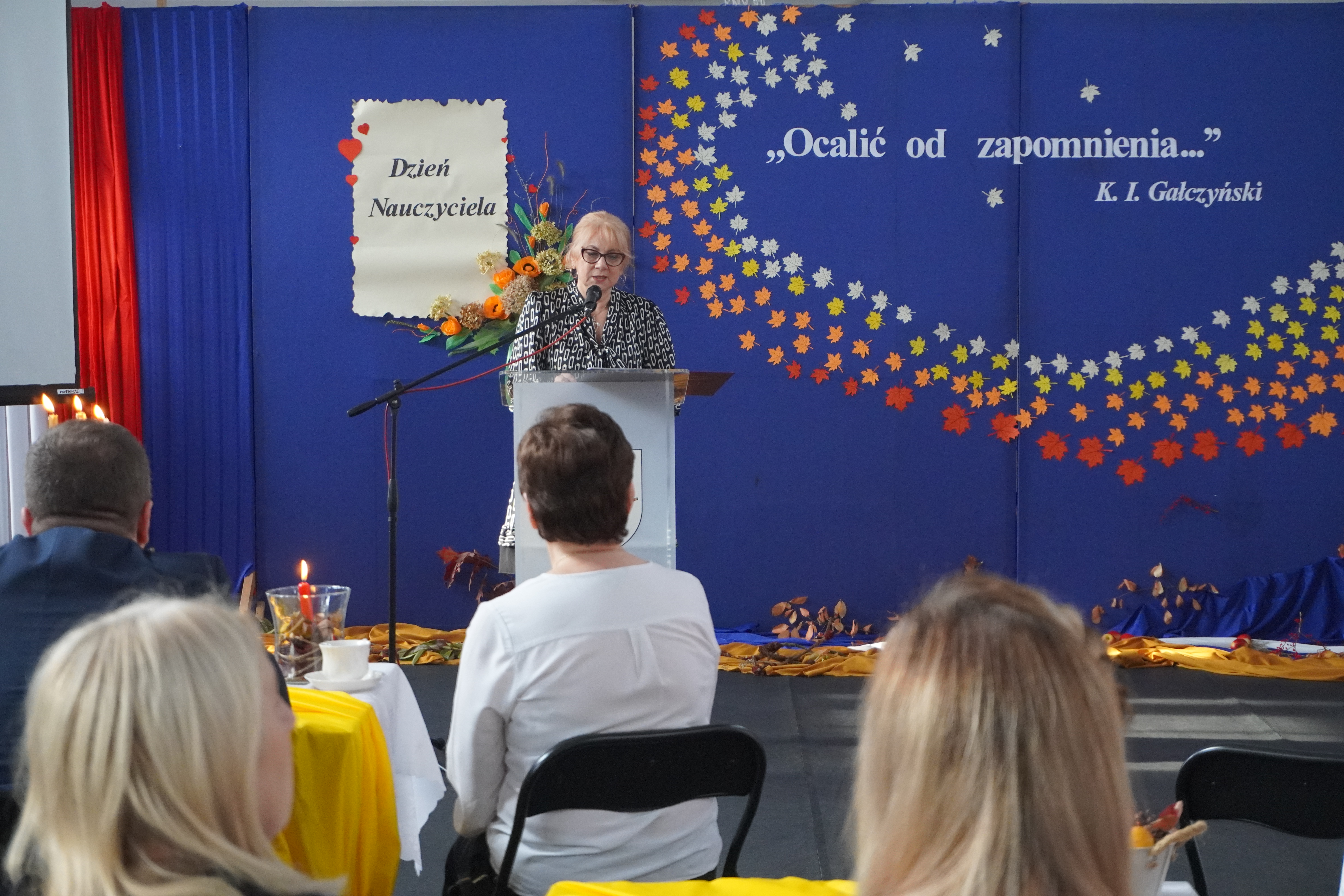 Jak podkreśliła w swoim wystąpieniu burmistrz Beata Szczepankowska - Dzień Edukacji Narodowej to święto wszystkich ludzi związanych z oświatą: dyrektorów, nauczycieli, pracowników szkoły, uczniów i ich rodziców, przedstawicieli nadzoru pedagogicznego i organu prowadzącego, związków zawodowych oraz wszystkich tych, którzy zajmują się polską szkołą.