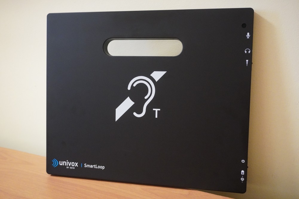 Pętla indukcyjna to urządzenie, które przesyła dźwięk bezpośrednio do aparatu słuchowego osoby słabosłyszącej.