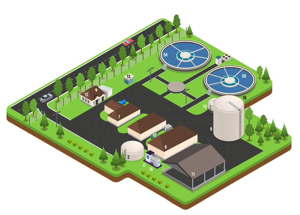 Jeśli jesteście ciekawi co się zmieniło i co nowego powstało, poniżej przedstawiamy rzut zmodernizowanej oczyszczalni, na którym oznaczyliśmy poszczególne obiekty.