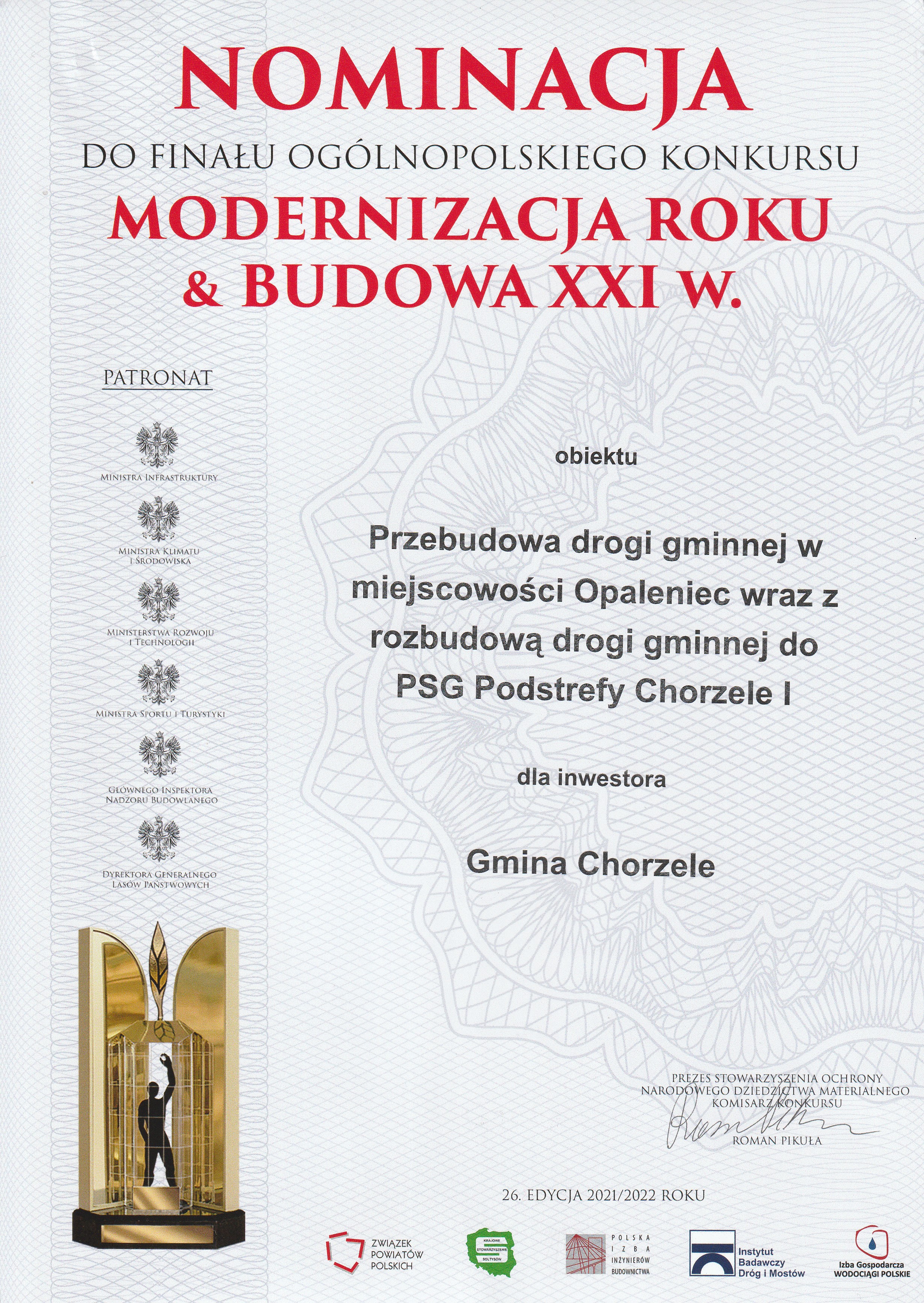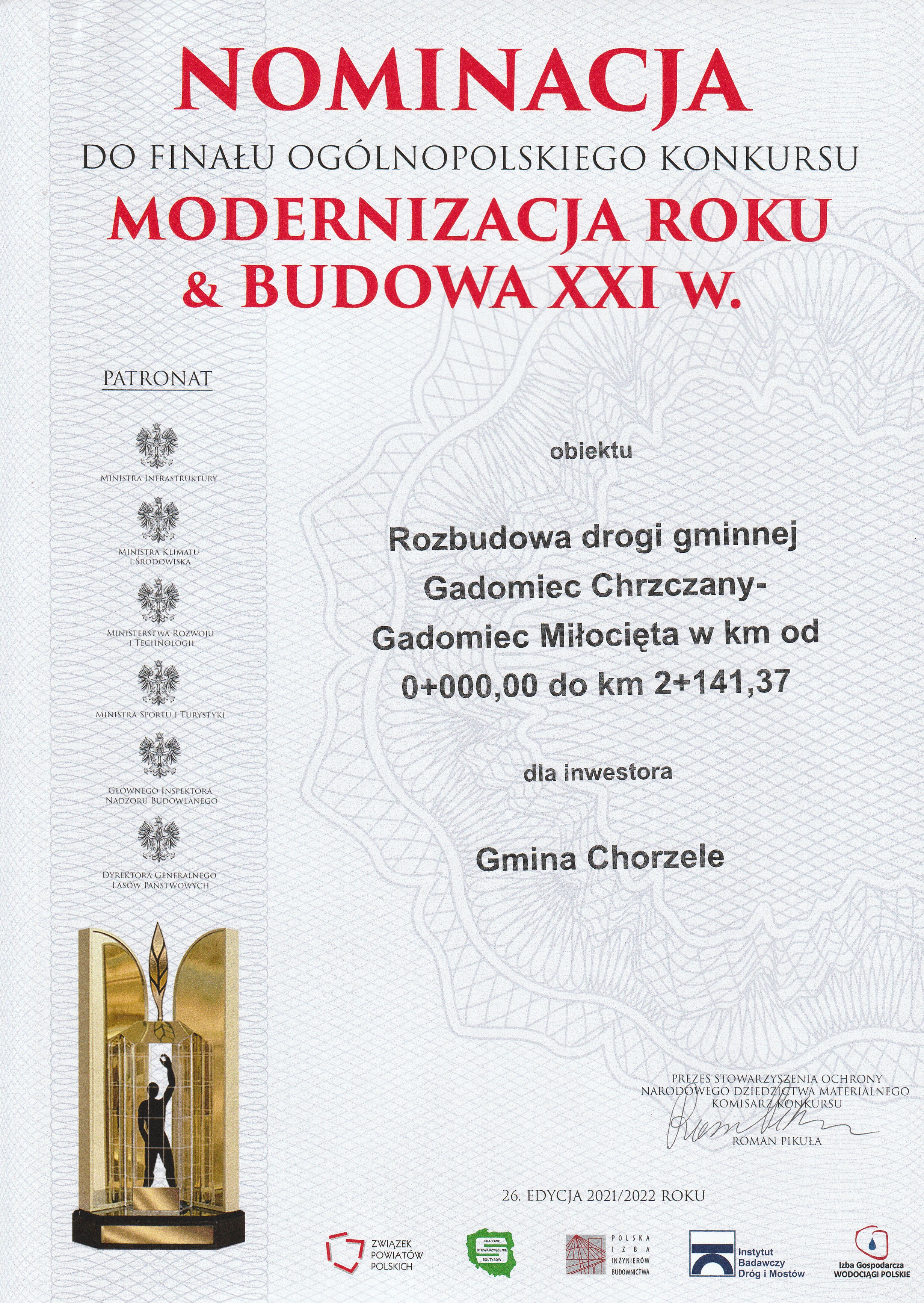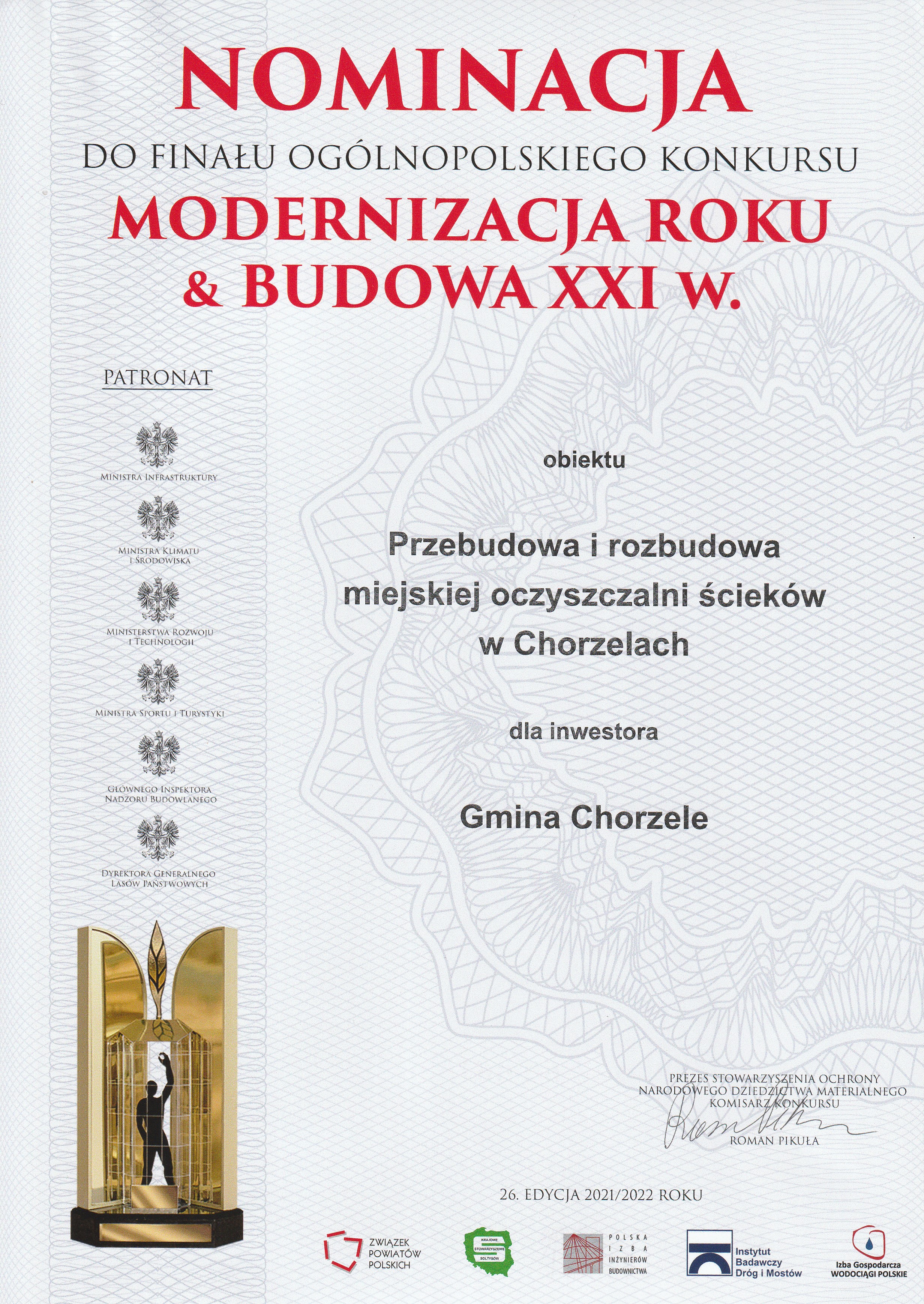 3 nominacje dla inwestycji Gminy Chorzele w Ogólnopolskim Konkursie Modernizacja Roku i Budowa XXI w.
