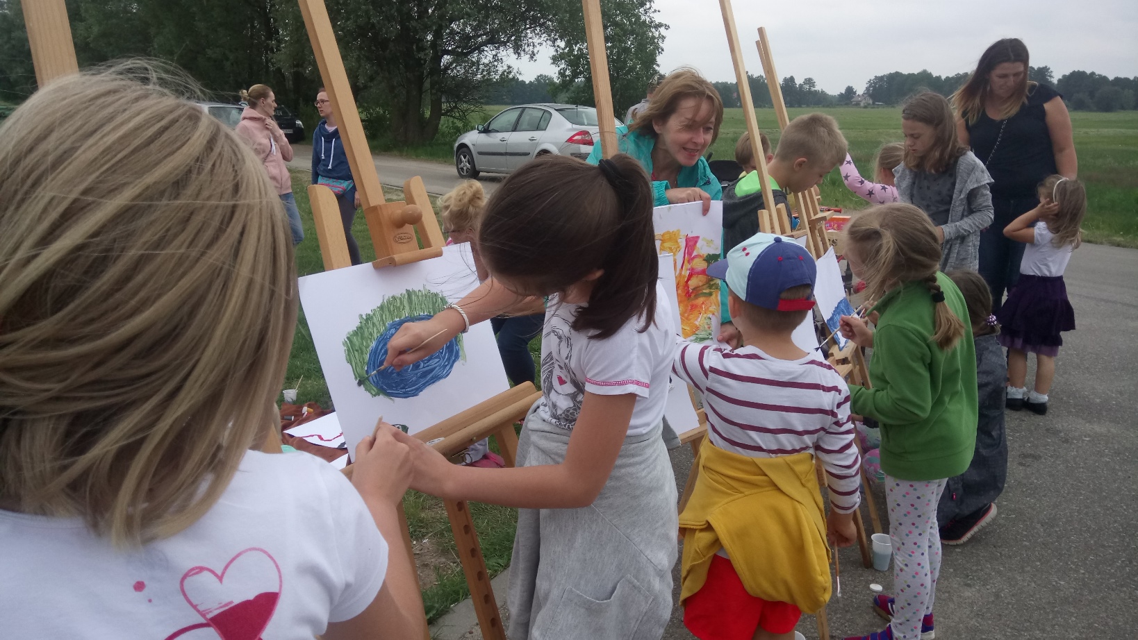 Wtorkowe popołudnie nad Chorzelskim Zalewem zgromadziło miłośników tańca i malarstwa. Najmłodsi mieszkańcy naszej Gminy razem z Ośrodkiem Upowszechniania Kultury w Chorzelach oraz Miejsko- Gminną Biblioteką Publiczną w Chorzelach ochoczo wzięli w ręce pędzle i malowali Uroki Chorzelskiej Ziemi. Trzeba przyznać, że Chorzelska Ziemia widziana jest bardzo barwnie, ponieważ w pracach królowały żywe ,entuzjastyczne kolory. Wszyscy zebrani mogli skorzystać z dobroci ogródka wakacyjnych smakołyków . Niestety pogoda płata figle: nagła ulewa i deszcz, który padał przez cały wieczór nie pozwolił Uczestnikom pleneru wzięcia udziału w zajęciach taneczno- ruchowych. Jednak nic straconego, bo zajęcia tego typu cyklicznie będą odbywały się przez całe wakacje.