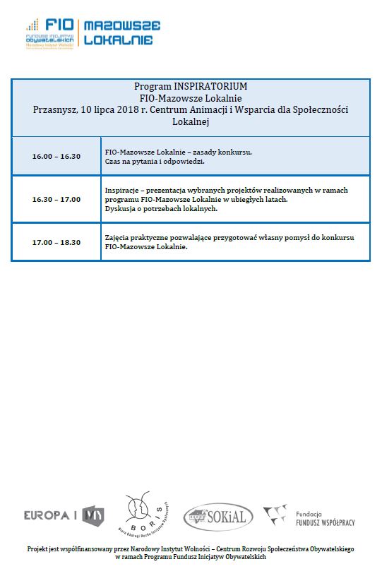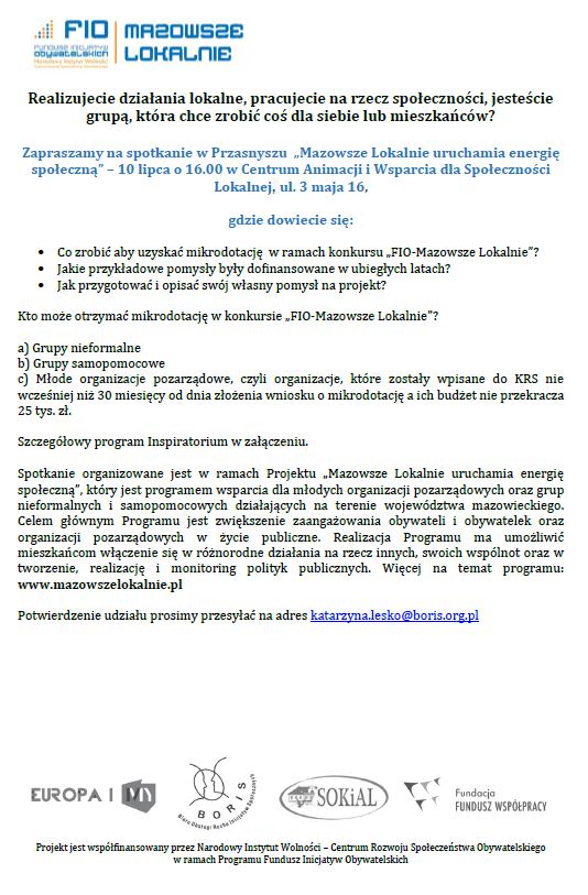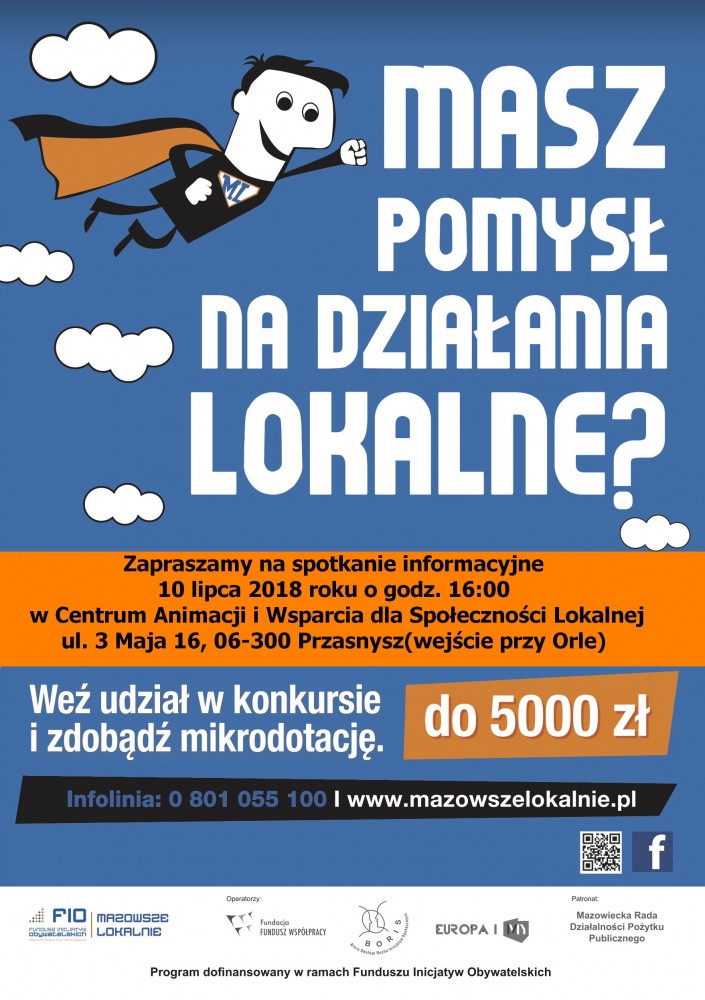 Zapraszamy na spotkanie w Przasnyszu „Mazowsze Lokalnie uruchamia energię społeczną” – 10 lipca o 16.00 w Centrum Animacji i Wsparcia dla Społeczności Lokalnej, ul. 3 maja 16, gdzie dowiecie się: