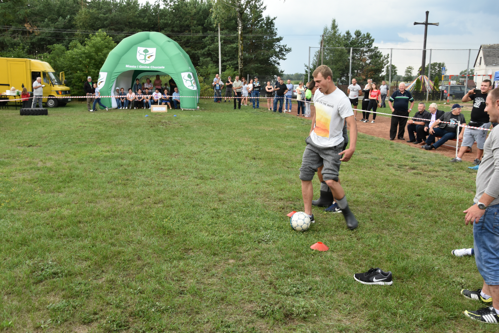 Uczestnicy, którzy przystąpili do zabawy mieli do rozegrania 6 konkurencji (bieg we wspólnych spodniach, wyścig koników, strzał piłką do bramki w kaloszach, toczenie opony, wyścig po skrzynkach oraz bieg z deską na której umieszczono ziemniaki).