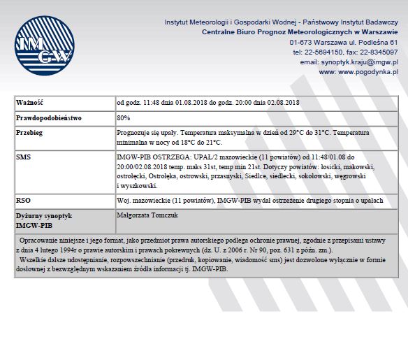Ostrzeżenia meteorologiczne zbiorczo nr 29