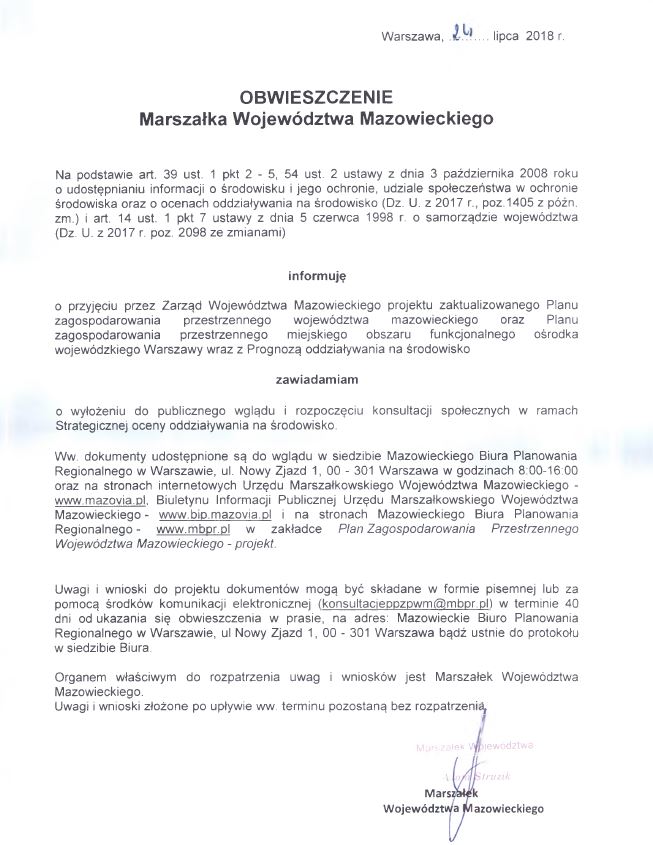 Obwieszczenie Marszałka Województwa Mazowieckiego