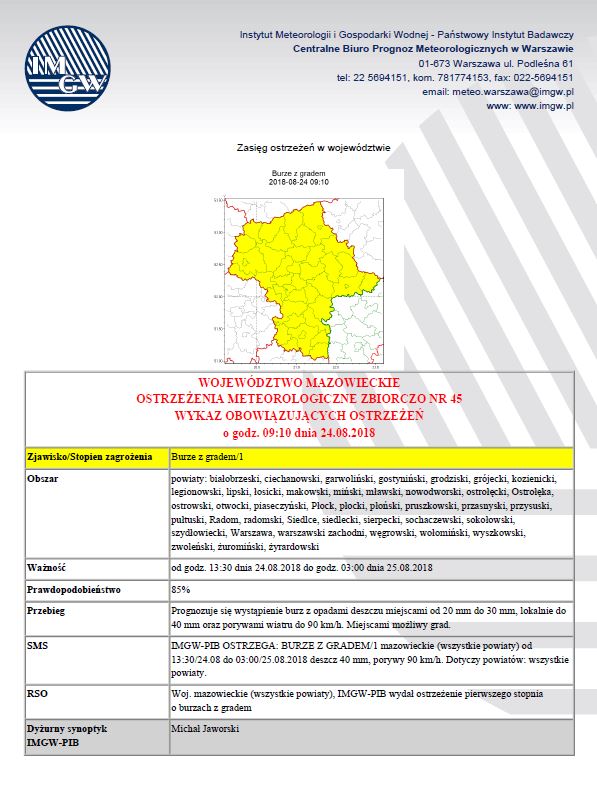 Ostrzeżenie meteorologiczne zbiorczo Nr 45
