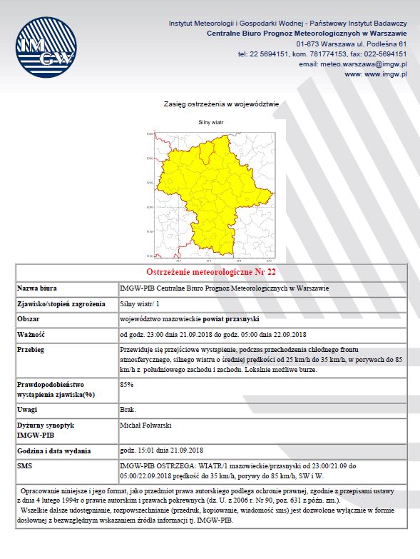 Ostrzeżenie meteorologiczne nr 22