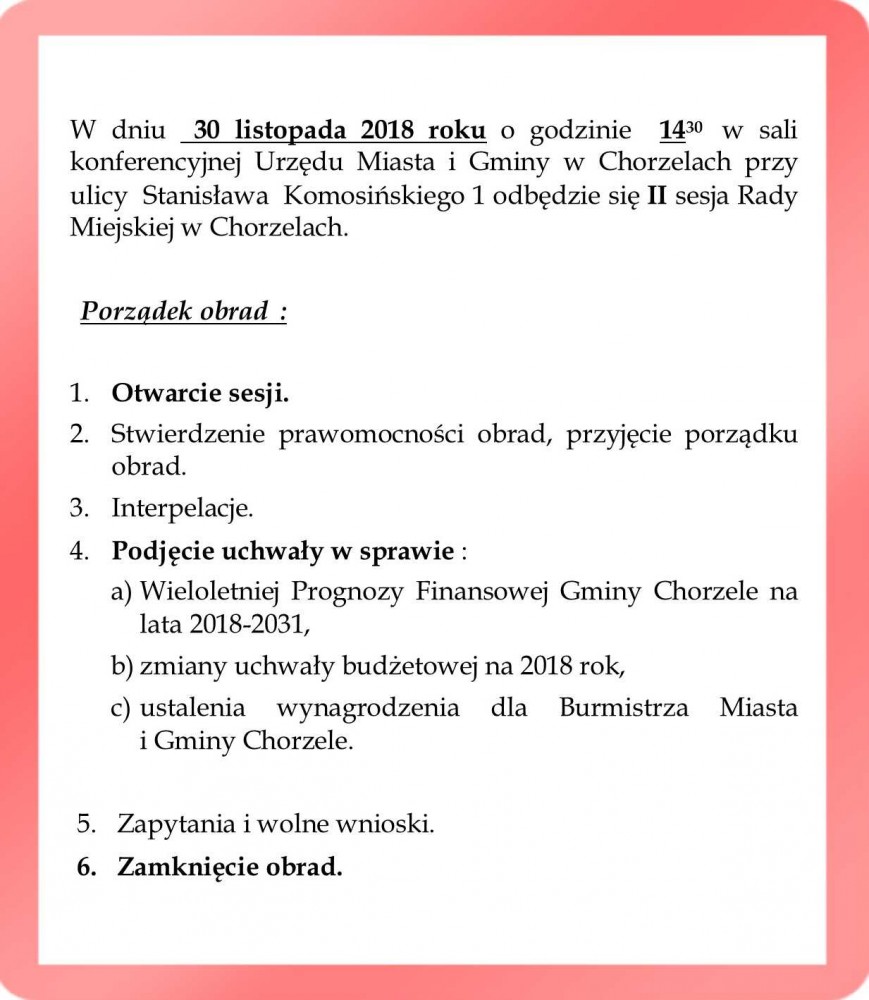 II sesja Rady Miejskiej w Chorzelach