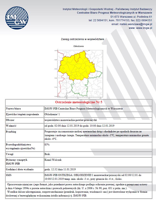Ostrzeżenie meteorologiczne Nr 5