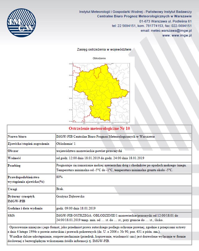 Ostrzeżenie meteorologiczne nr 10