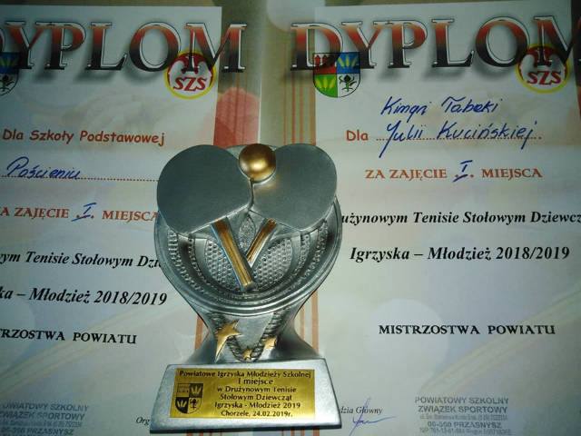 Julia Kucińska i Kinga Tabaka ( rocznik 2005)- I miejsce - 2 złote medale, 2 dyplomy indywidualne statuetka i dyplom drużynowy dla szkoły.